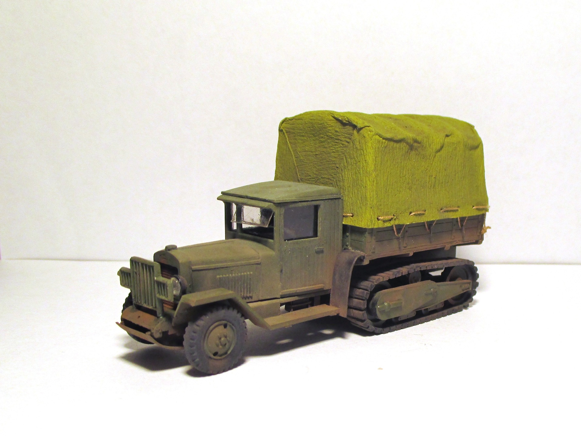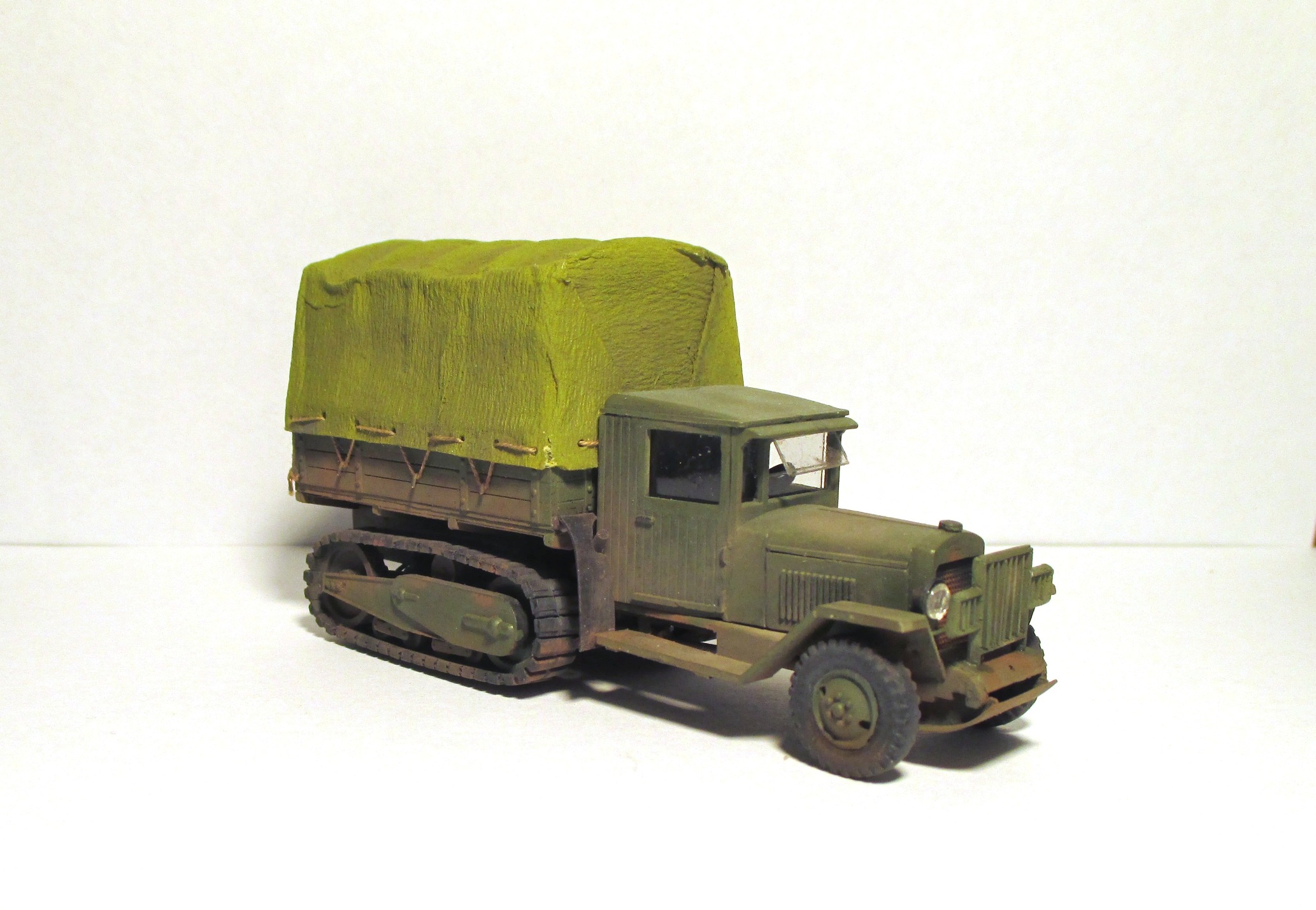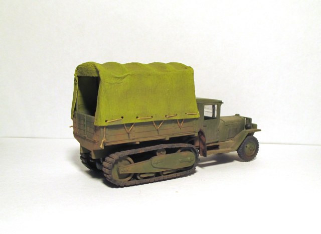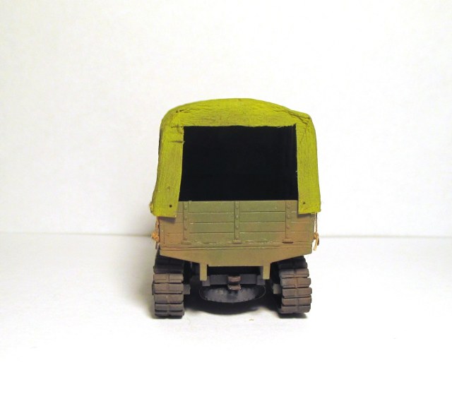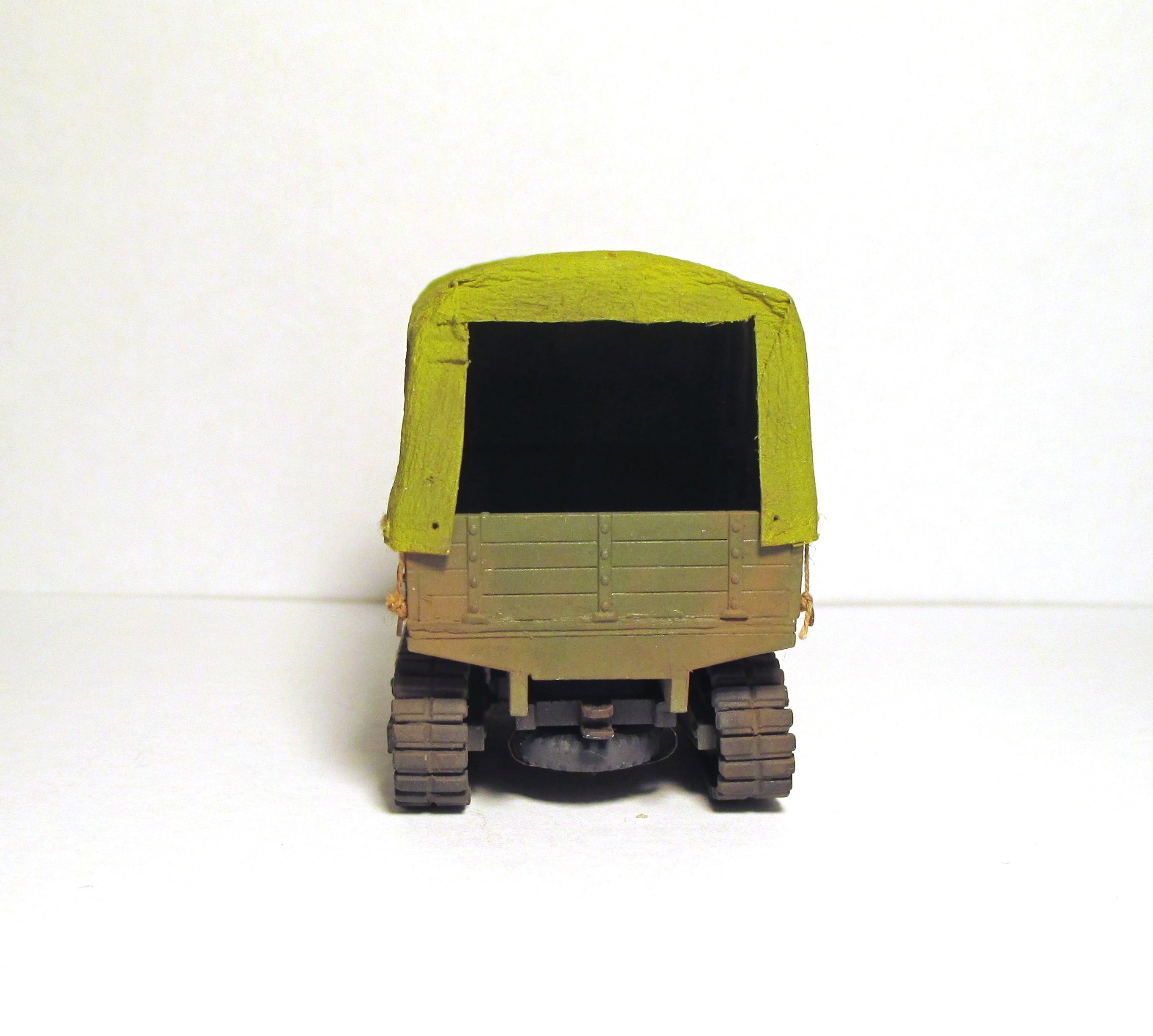 В общем всё симпатично. Замечания по цвету тента- это не цвет брезента, очень ядовит. На гусянках разделительная борозда уплывает от края до края. Пигмент от Wilder какой использовали?(понравилось как лежит на кузове.)