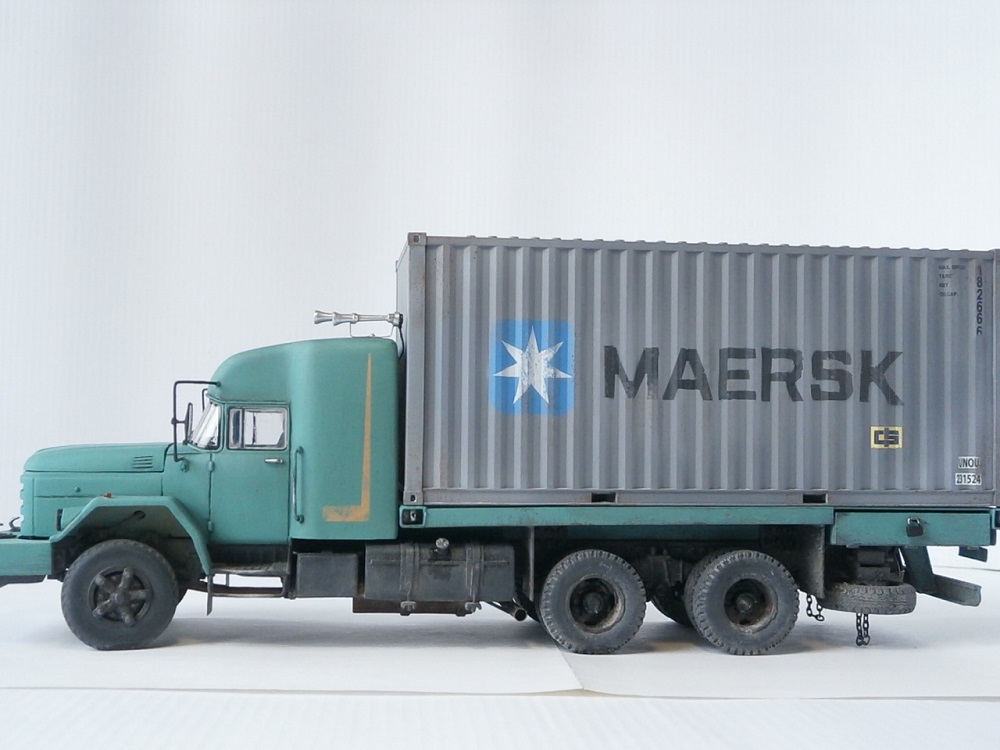 Здравствуйте,коллеги и друзья! Выношу на суд, нашу совместную с Юрием Зуйко работу, заколхоженный ЗиЛ-133ГЯ. Несмотря на огромную,оказанную Юрием помощь,косяков я наделал не мало:)) Конкретного прототипа нет,образ собирательный, из-за криворукости и ошибок в расчётах многое сделать не удалось,но я старался. Некоторые узлы и детали переделывались не раз. Изкаробки собран только контейнер,кабина переделывалась, а рама + ходовая и подрамник, топл.баки и бампер самодельные. Насколько позволили ресурсы и умения соблюдал мат.часть. Дигатель +КПП камазовские от ICM. Не проходите мимо,смотрите,критикуйте!
