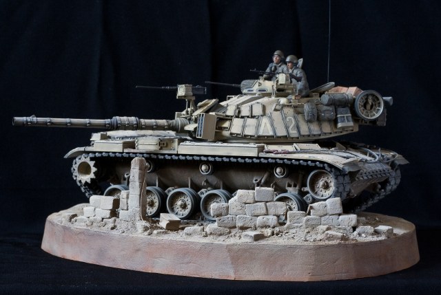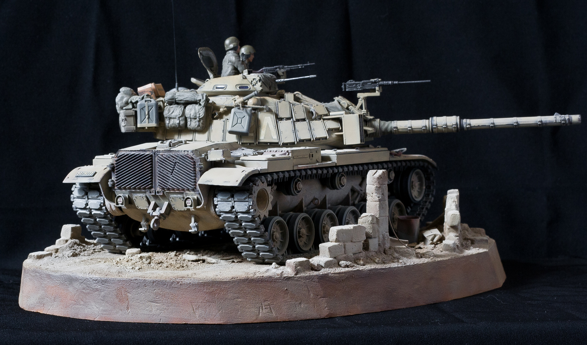 После вынужденного долгого творческого перерыва решил вдохнуть жизнь в несколько уже стоящих на полке моделей. В частности, попробовал сделать первую виньетку. За основу взял ранее сделанный M60 Blazer армии Израиля (посмотреть изначальный вид модели можно здесь https://karopka.ru/community/user/7687/?MODEL=244435 )