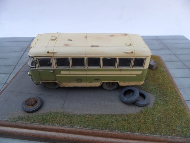 Всем привет! Представляю очередную новинку от AVD Models -на это раз это автобус Таджикистан 1.Первый автобус, собранный из каунасских комплектов в мае 1959 года, получил обозначение «Таджикистан-1». В течение года он проходил испытания и осенью был отправлен для показа в Москву. В 1960 году на заводе изготовили первые серийные 112 пассажирских машин. Модель из " Смоляной серии" AVD Models. Кузов модели отлит из смолы, и отлит очень качественно, облой удаляется легко, смола крепкая и в то же время легко обрабатывается, что имеет большой плюс. Так же модель дополнена пластиковыми деталями- бампер, задний мост, кардан, зеркала,окантовка фар и руль, диски колес, что упрощает работу. Стоит отметить и отличные покрышки не уступающие Харькову, мягкие с отличной проработкой. Остекление дано прозрачной пленкой. Фары отлиты из прозрачного пластика, оптика головного света имеет насечки, что тоже очень хорошо. В общем смоляные модели не стоят на месте , а продолжают совершенствоваться, и это отлично! По сборке проблем никаких, понятная инструкция, все легко и стыковка хороша. Автобус очень понравился, делать его было интересно . Окрашен мотип зеленый, чайная роза. Приятного просмотра!