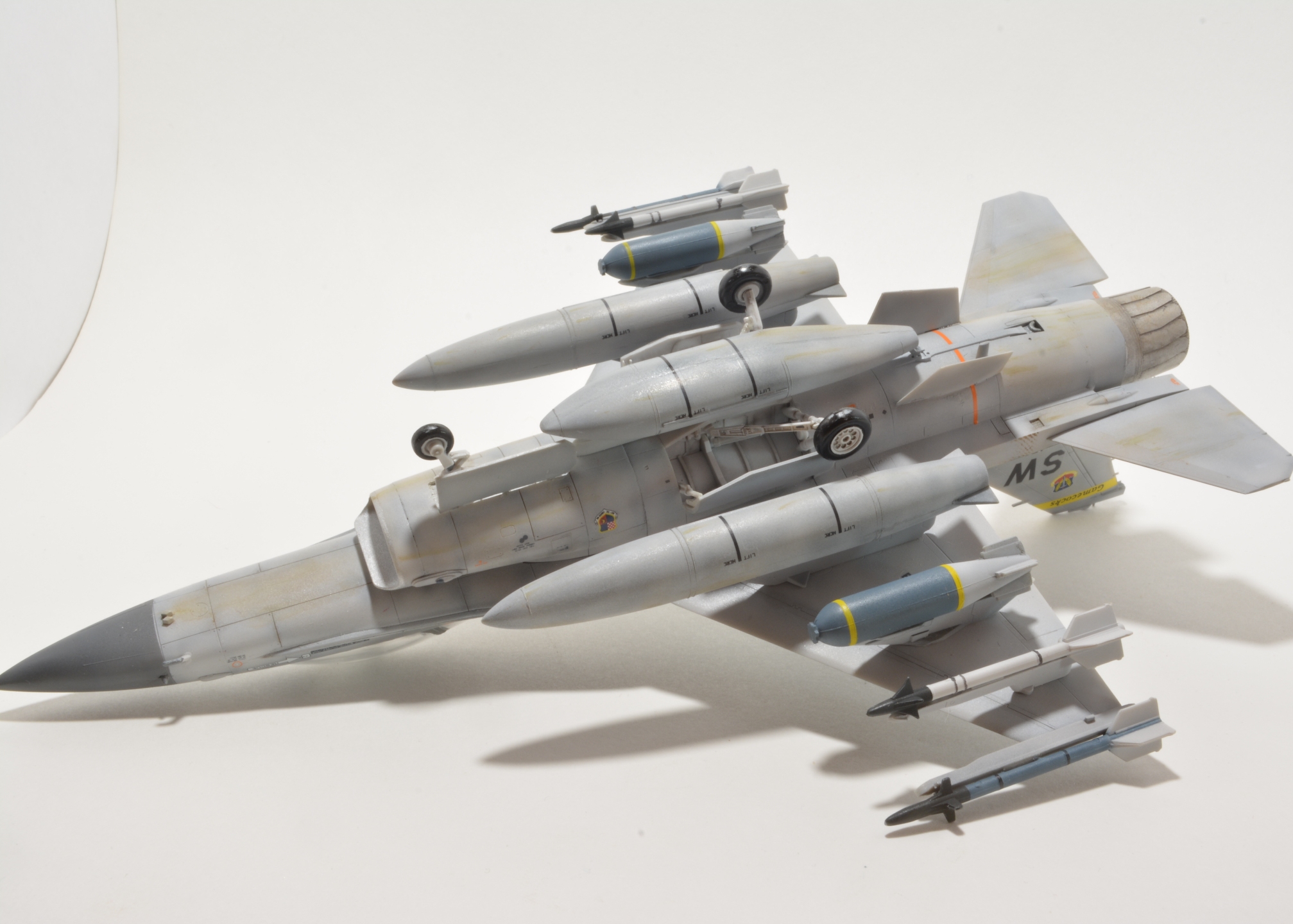 Набор довольно таки старенький и впечатления неоднозначны. На литниках присутствует множество облоя (практически на всех деталях) Собирается не сложно, но и без шпаклевки не обойтись. Пришлось замазывать стыки хвоста к фюзеляжу и сопла двигателя. В процессе сборки потерял носовую антенну - заменил на гвоздь... можете убить меня за такое варворство, но так получилось :) Деталировка стоек шасси и кокпит практически отсутствует. Использовал краски тамия и немного масла.