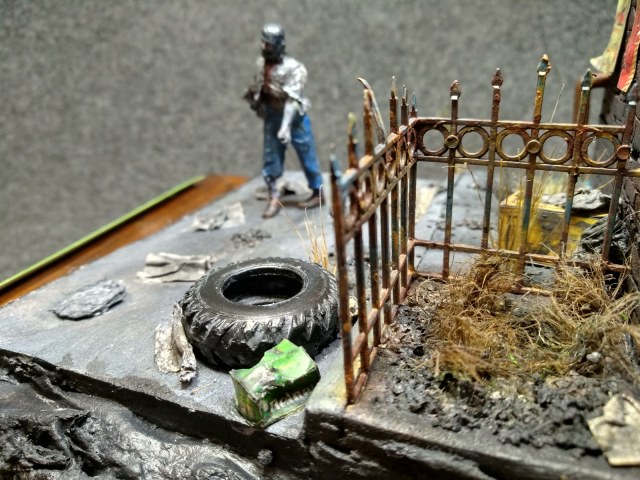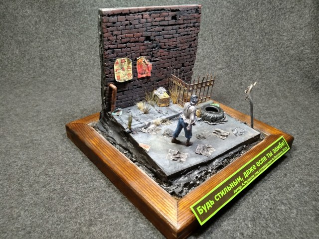 Интересно, и антураж передан хорошо, вот только основание как будто отлито в металле, ИМХО. На мой взгляд, большая табличка с названием отвлекает от восприятия постаповского пейзажа...