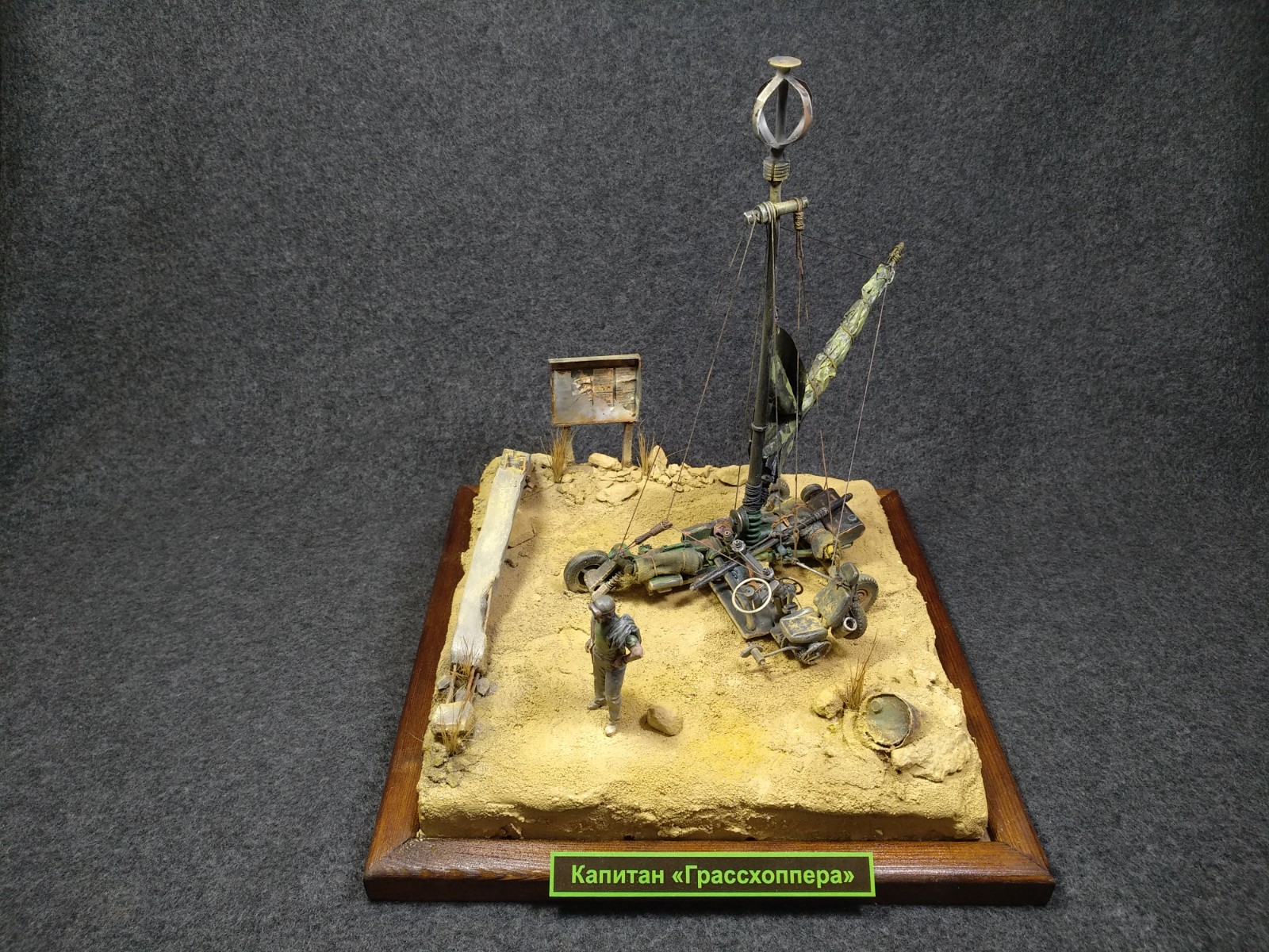 Виньетка "Капитан "Грассхоппера"" относится к фантазиям и размышлениям на тему постапокалиптического бытия. Такие же люди, но совсем другие ценности.