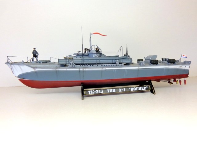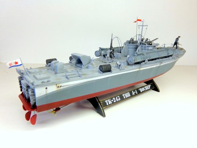 История сохранила фотоснимок, на котором парнишка в бескозырке малюет победную звездочку на козырек рубки катера. Подписано, что это матрос Огурцов с ТК-243 (начавший службу в 16 лет). И тут вспоминается повесть Валентина Саввича Пикуля "Мальчики с бантиками". Автобиографическая повесть, где писатель пересказал собственную юнговскую жизнь. Фамилия главного героя книги - Огурцов. Может это не с проста, и этот Огурцов с катера был однокашником и другом Пикуля? И ещё. Коллеги постарше, наверно, помнят неплохой фильм - "Юнга Северного флота". Сценарий практически сделан на основе книги Пикуля, только авторы фильма перенесли героев фильма после окончания соловецкой школы юнгов именно на торпедные катера. Морякам Великой отечественной, в ту пору совсем юным и не очень хотел бы посвятить свою модель...