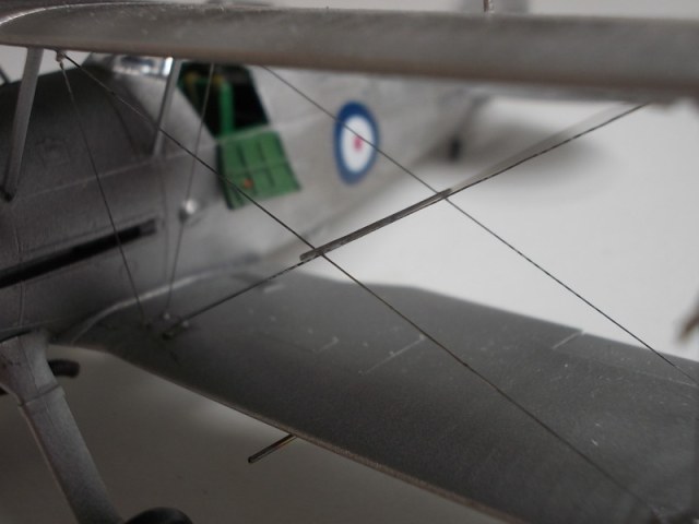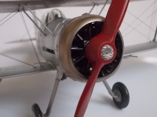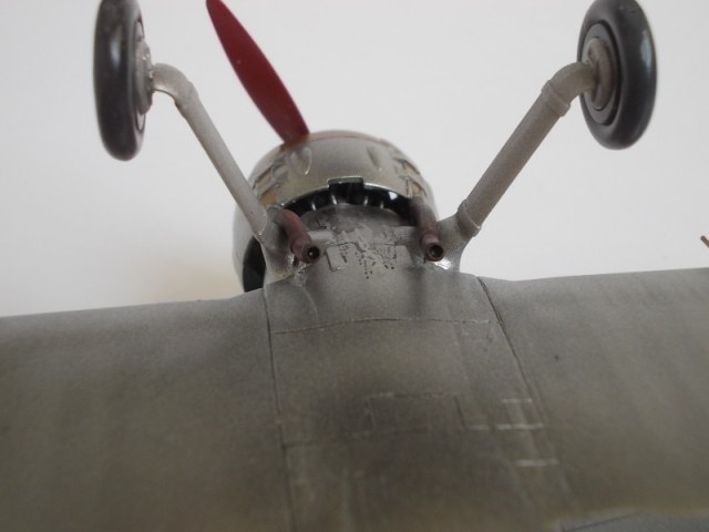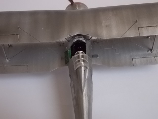 Теперь попробуйте сделать такие же круговые стяжки на нижнем крыле плюс можно попробовать выделить посадочные щитки смывкой, только не маслом (черт его знает какое там у вас финишное покрытие и как оно на масло среагирует)а чем нибудь водорастворимым, например гуашью (не понравится, так хоть стереть можно будет).