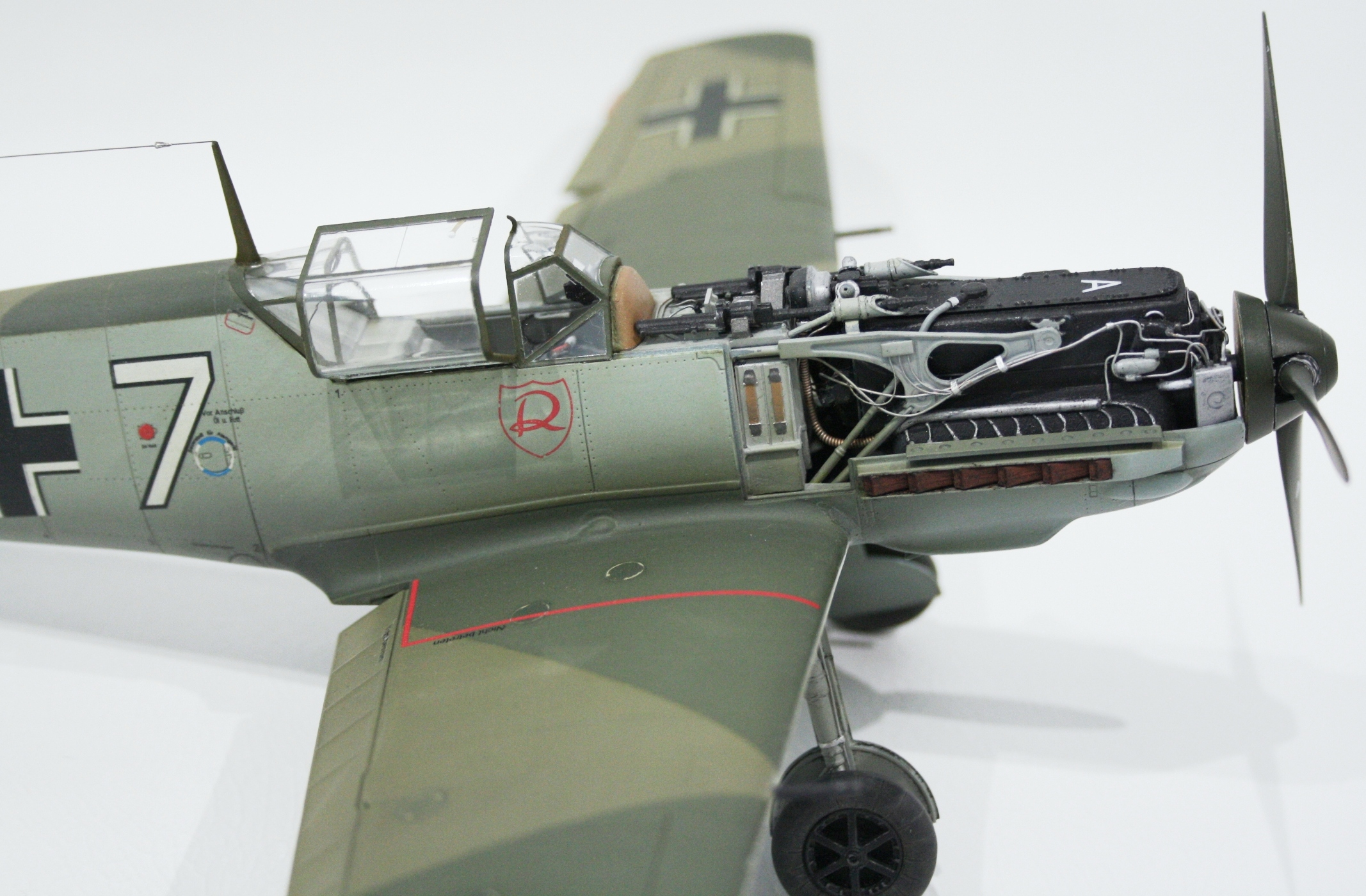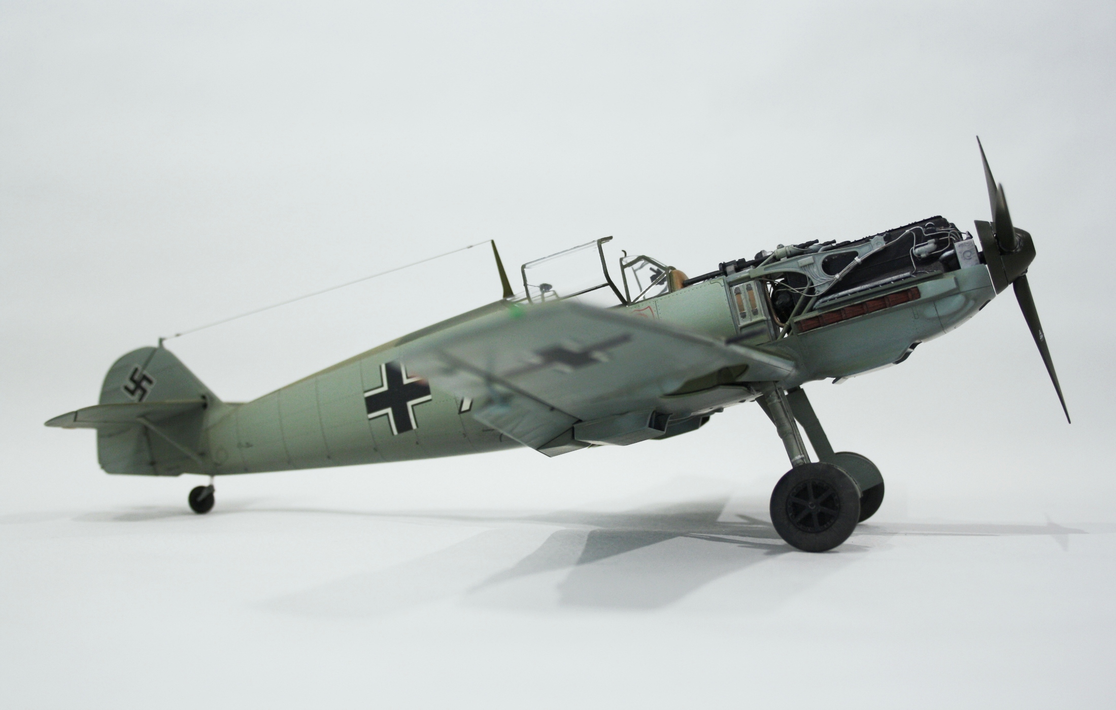 ПЕрвое - раз человек приобрёл аэрограф, покрасил модель и представил её - это огромный плюс, с этим можно только поздравить. Второе - прекрасное изготовление, прекрасная покраска модели - можно и даже не обсуждать, что первый раз - практически без вопросов. Что до самоё модели - увы, у Эдуарда 109й не совсем верен, особенно это относится к сечению фюзеляжа. ПО покраске приборной доски - у меня очень много фото времён войны, где она окрашена в 02, но есть и фото, где 66.Небольшой вопрос по окраске ниши - обычно она красилась в 02. Боковинки закрывались или кожей( дермантином) или брезентом. У вас цвет не тот. ПО поводу клёпки - я не знал, что клёпка на 109мм шпаклевалась??? Хотя у меня есть фото, где техник шпаклюет клепочные швы и расшиву, но всё это в полевых условиях, и скорее всего не массово. ТО, что клёпку не видно - плохое качество фотографий. Клёпку видно и на относительно свежем самолёте( прогибы металла), и на полетавшем. Там уже клёпка видна заметно. Пару фото приведу, чтобы не быть голословным.