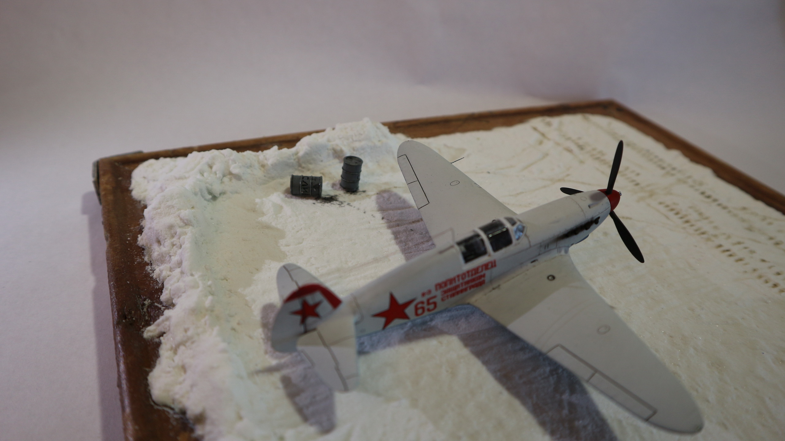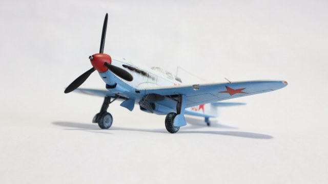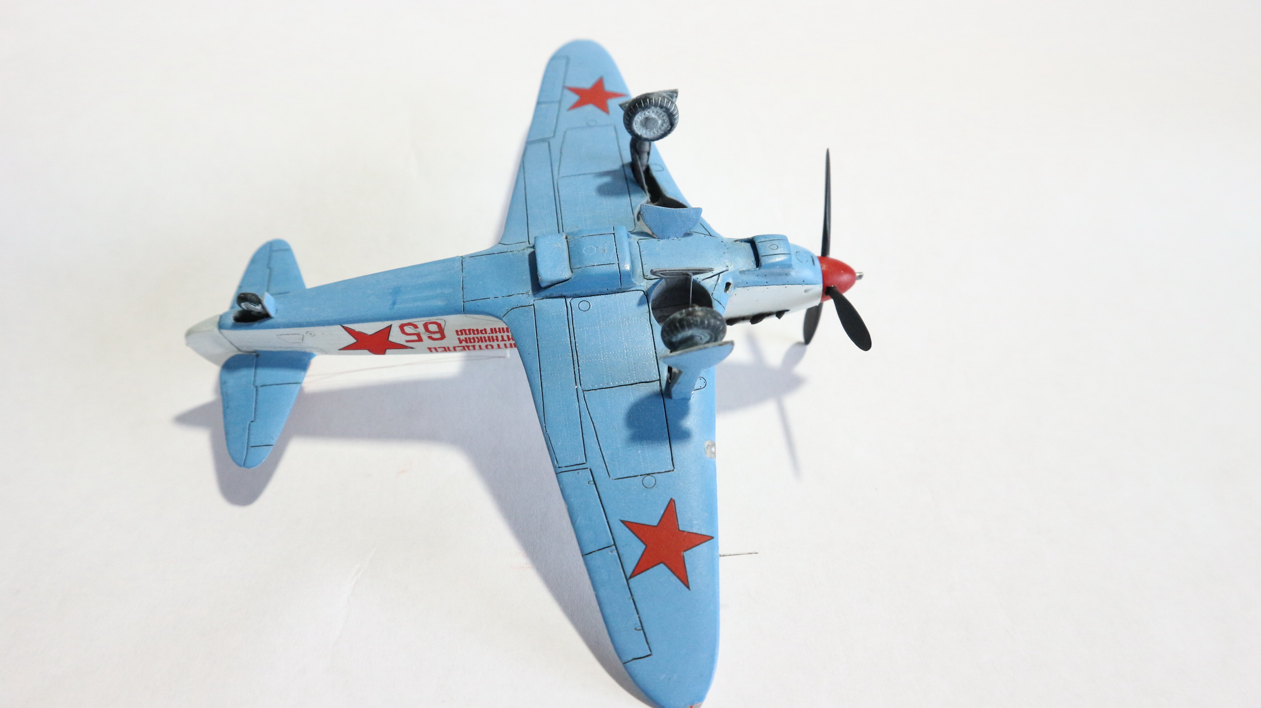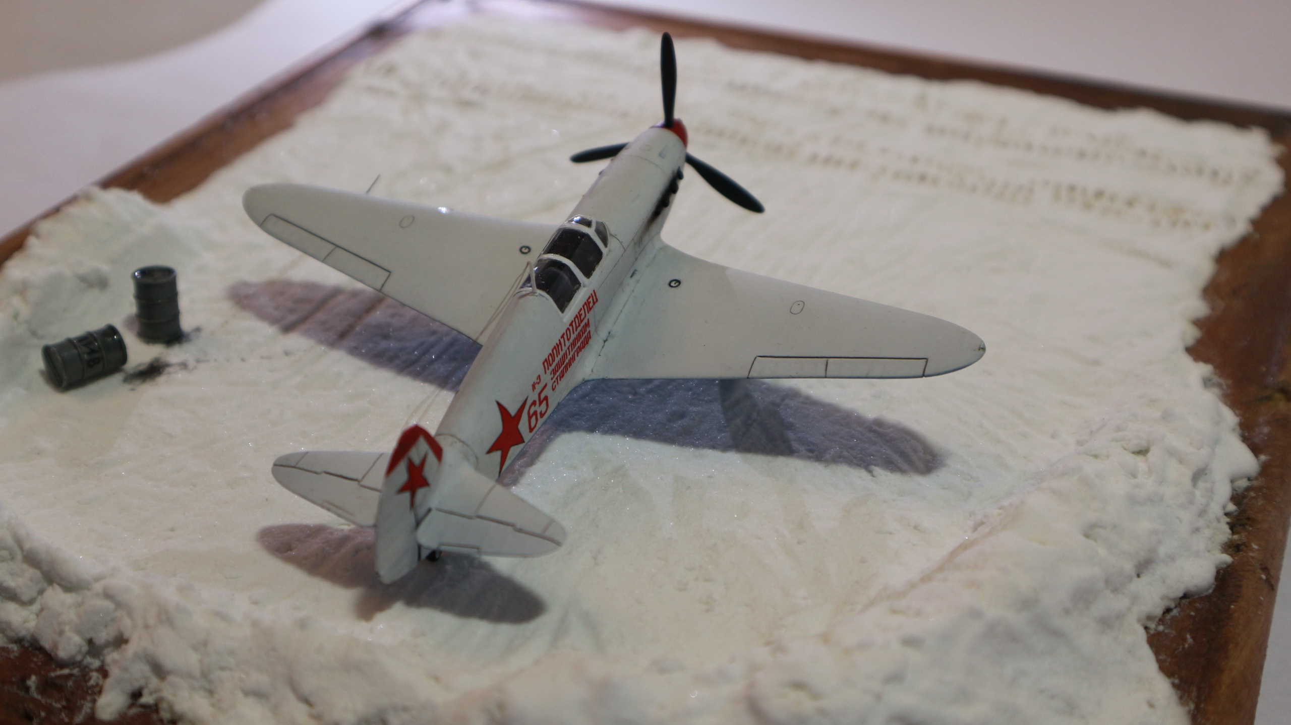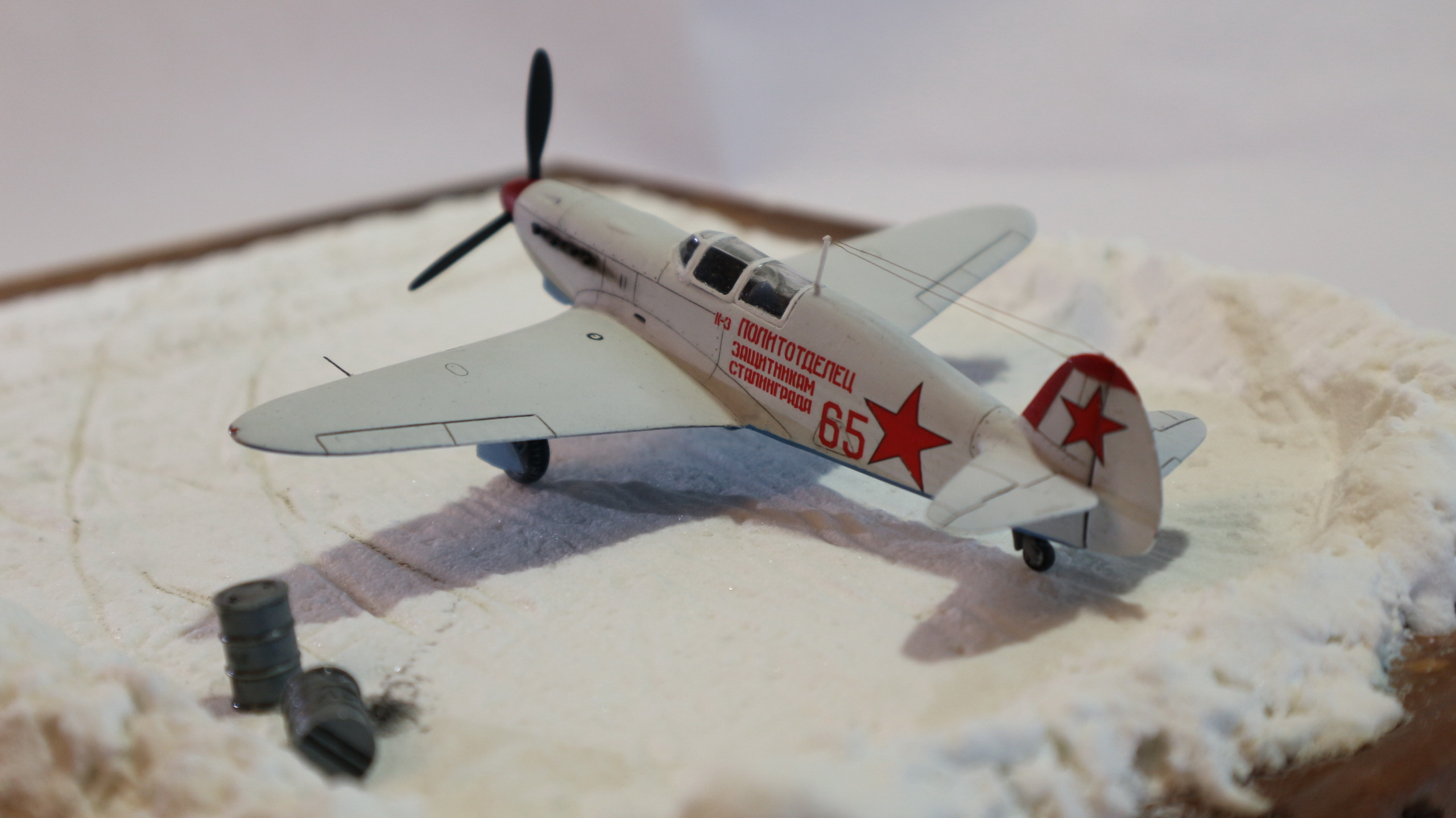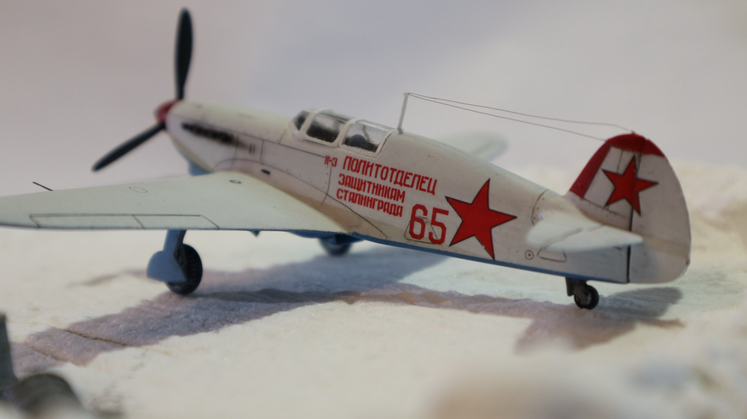 Прототип - многим известный ЯК-7Б от колхоза "Политотделец" участвовавший в битве за Сталинград. Сам самолёт получился не нулёвый как на известной фотографии, а, скажем, уже пару-тройку недель полетавший.