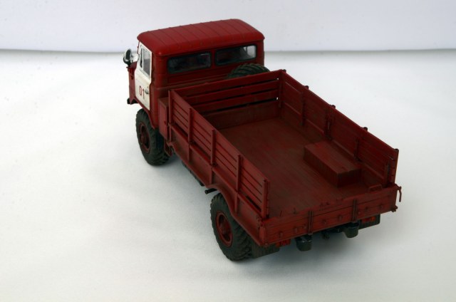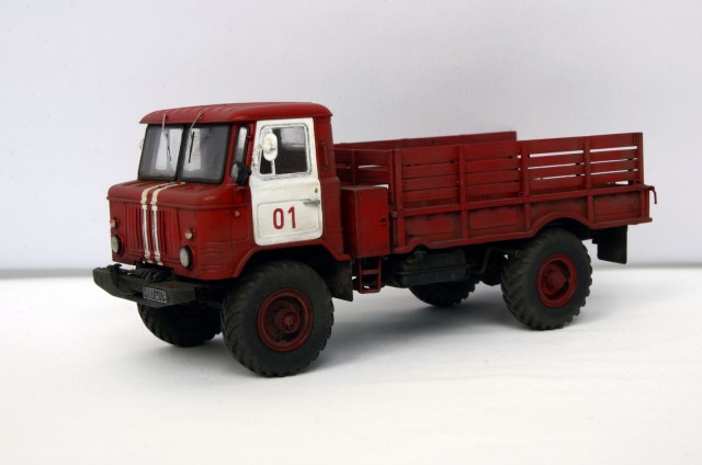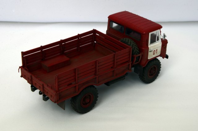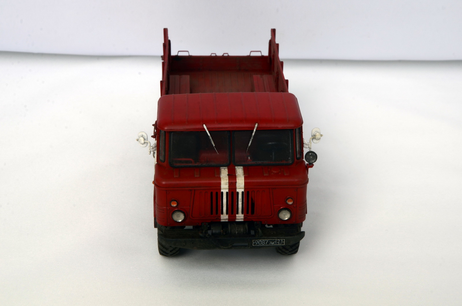 Доделал 66-й Газ от Трумпа. Никаких исторических привязок, просто захотелось сделать не стандартно зеленый грузовик, а веселенький ) По матчасти не силен, исправил только известные огрехи - убрал лишний воздухозаборник и насколько смог привел в порядок фары. И добавил трос. Сам набор очень порадовал хорошей собираемостью и качеством, 4 с плюсом ставлю по любому. До пятерки не дотягивает, на мой взгляд, следующими моментами: