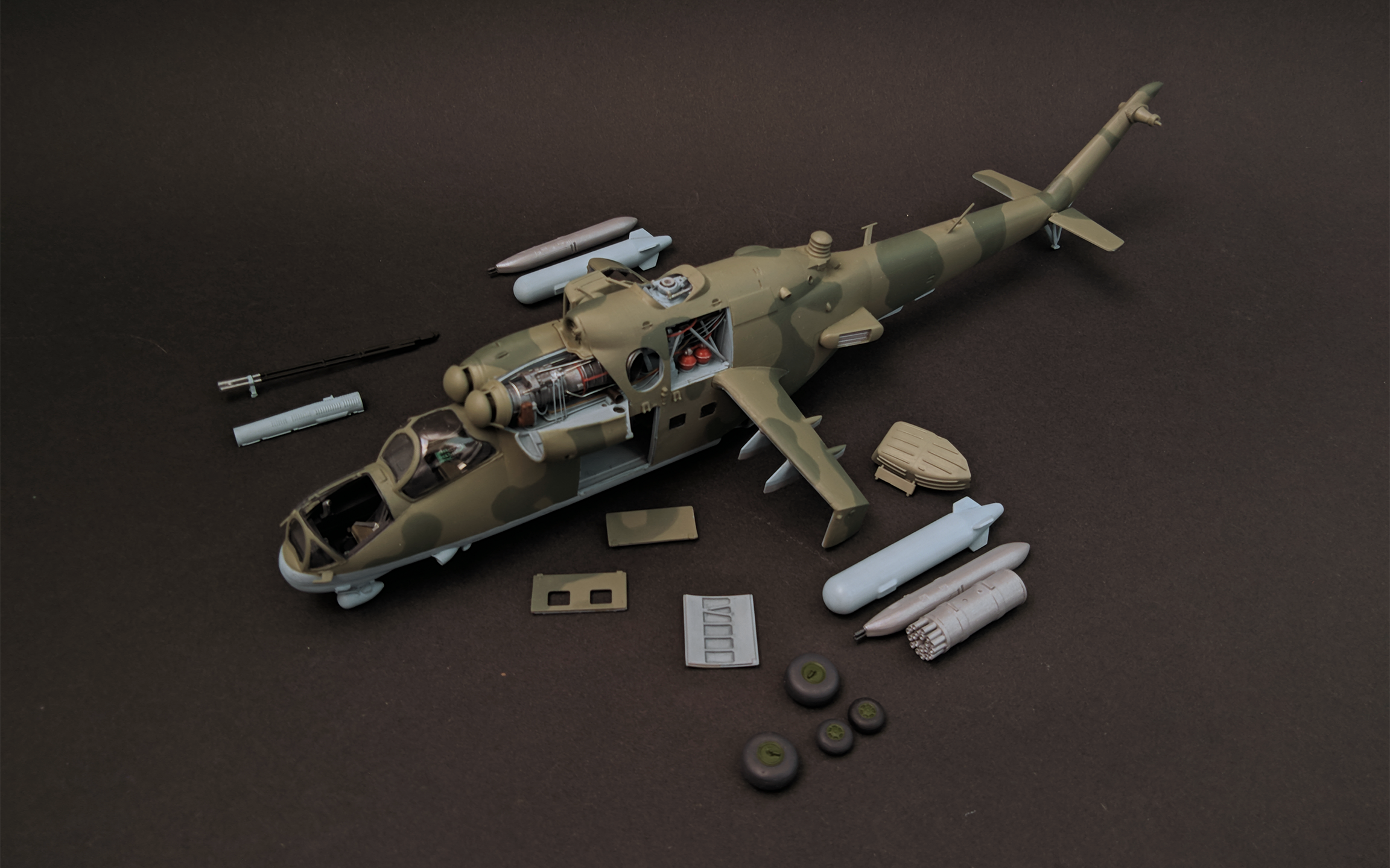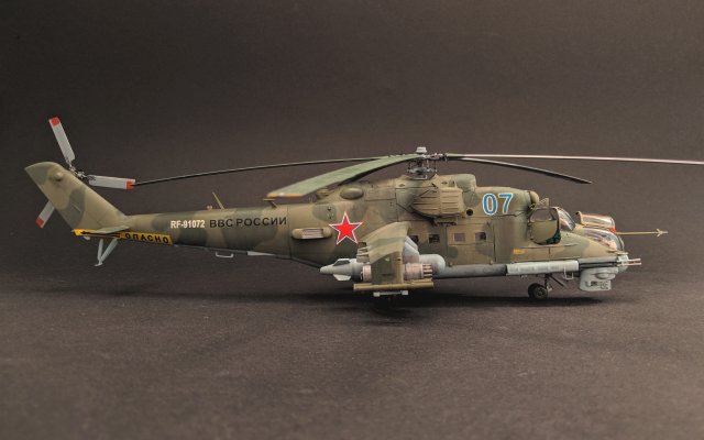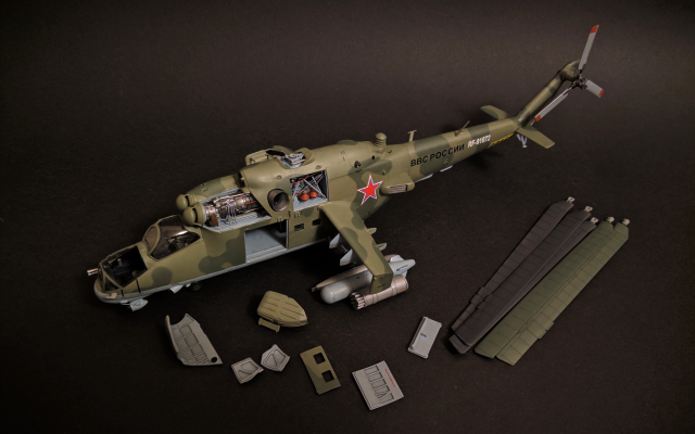 Закончил, наконец, Ми-24П от Звезды. Получается, собрал все модели из этой серии (разве что можно еще ВП-шку собрать из набора #7293)