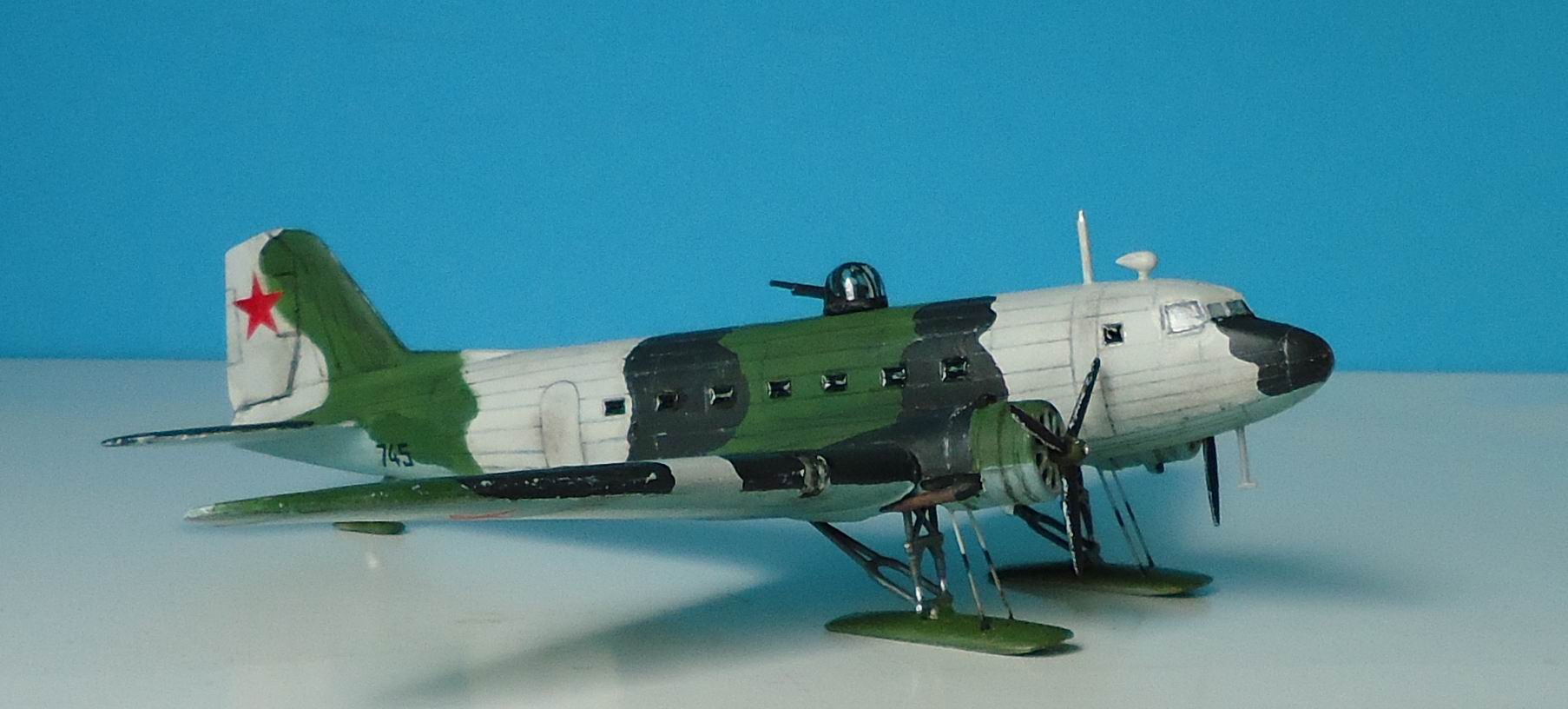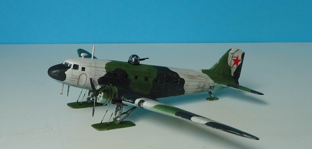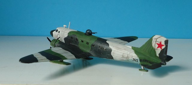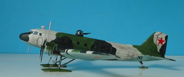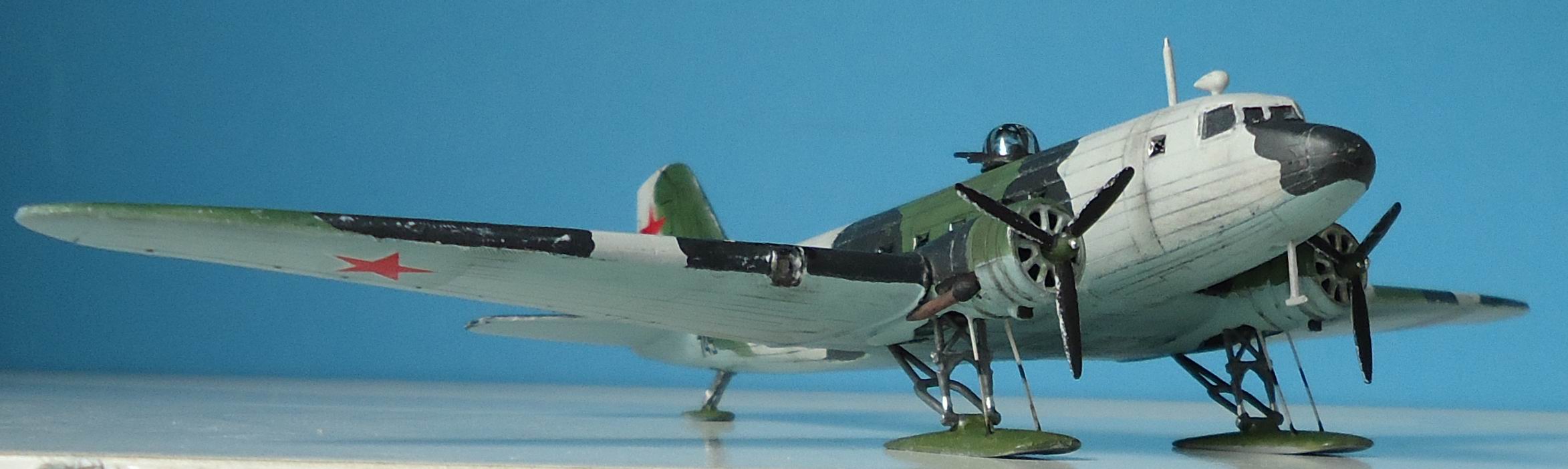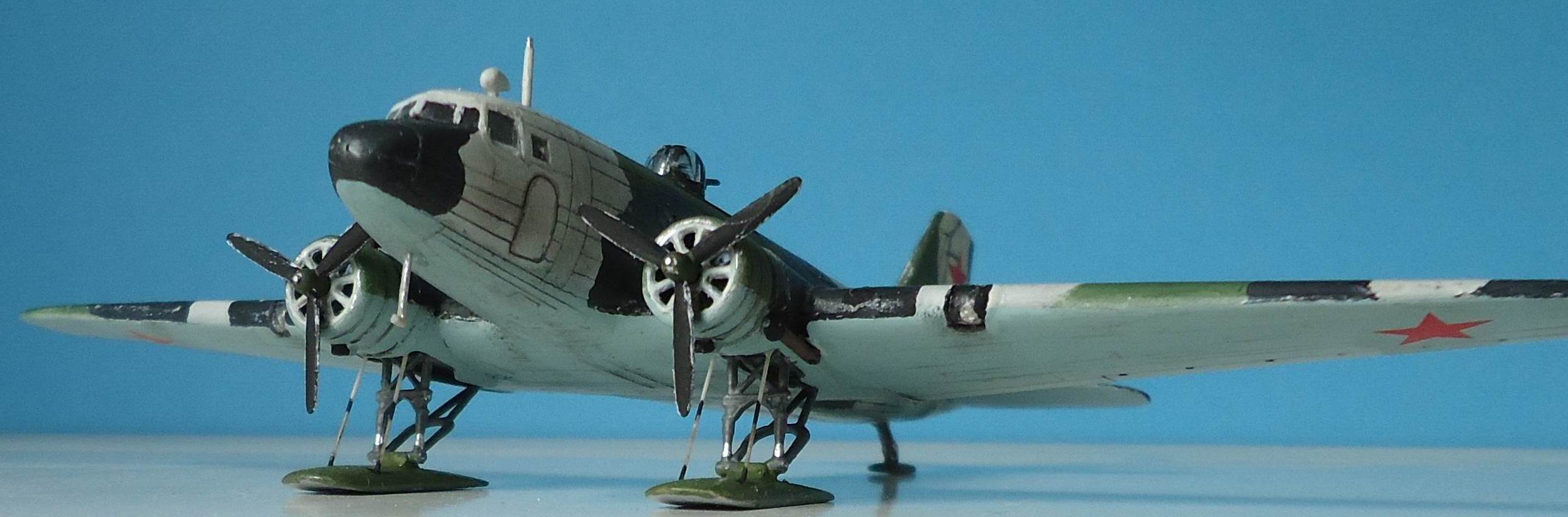 Советский военно-транспортный самолет,принимавший самое активное участие в Великой Отечественной войне,был не только транспортом,но и бомбардировщиком. Выбранный мною прототип относится приблизительно к зиме 1942 г. Переоборудование гражданских ПС-84 в военные варианты началось уже с 1941 года.