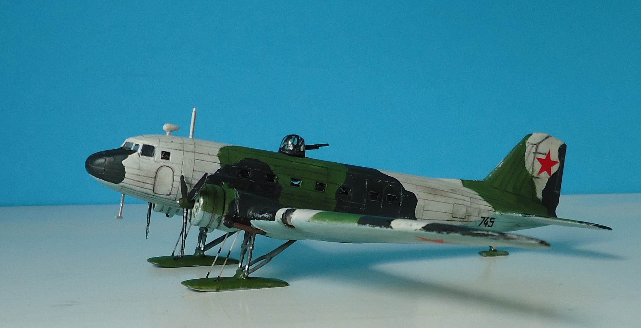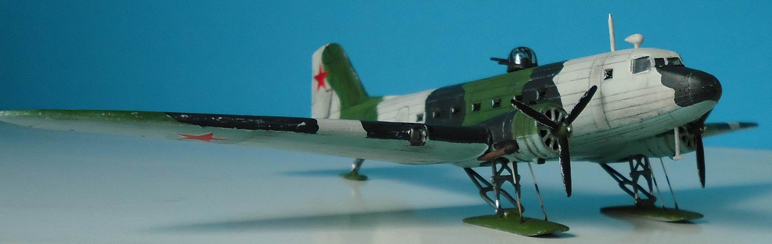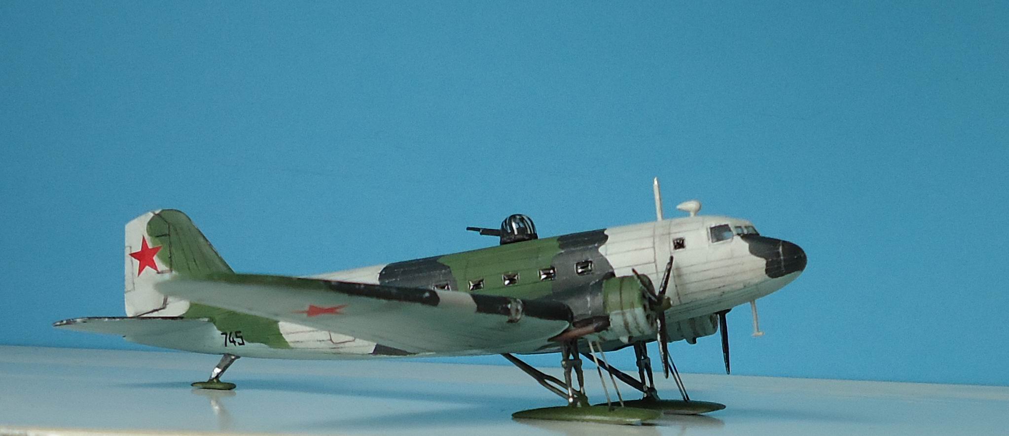 Советский военно-транспортный самолет,принимавший самое активное участие в Великой Отечественной войне,был не только транспортом,но и бомбардировщиком. Выбранный мною прототип относится приблизительно к зиме 1942 г. Переоборудование гражданских ПС-84 в военные варианты началось уже с 1941 года.