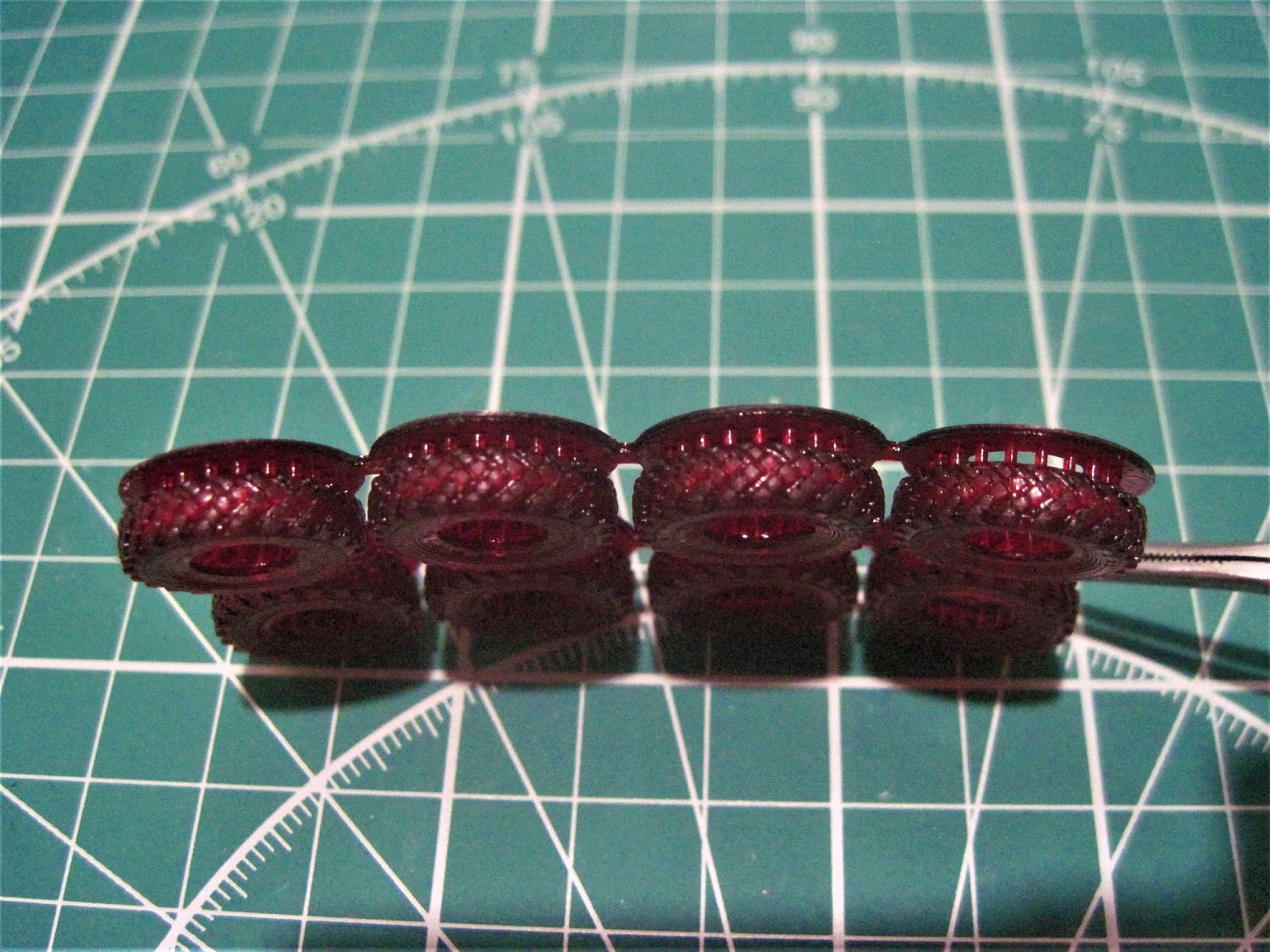 А заодно и деталировку распечатываемого элемента смажет. Например на диске колеса я только после грунтовки увидел, что болты слились. Придётся шаманить с ними что-то. Уменьшать время уже нельзя - оторвёт слой. Скорее всего разнесу их подальше от оси. Кто увидит отклонение от масштаба - пускай кидается в меня бумажными салфетками, ибо камнями - больно.