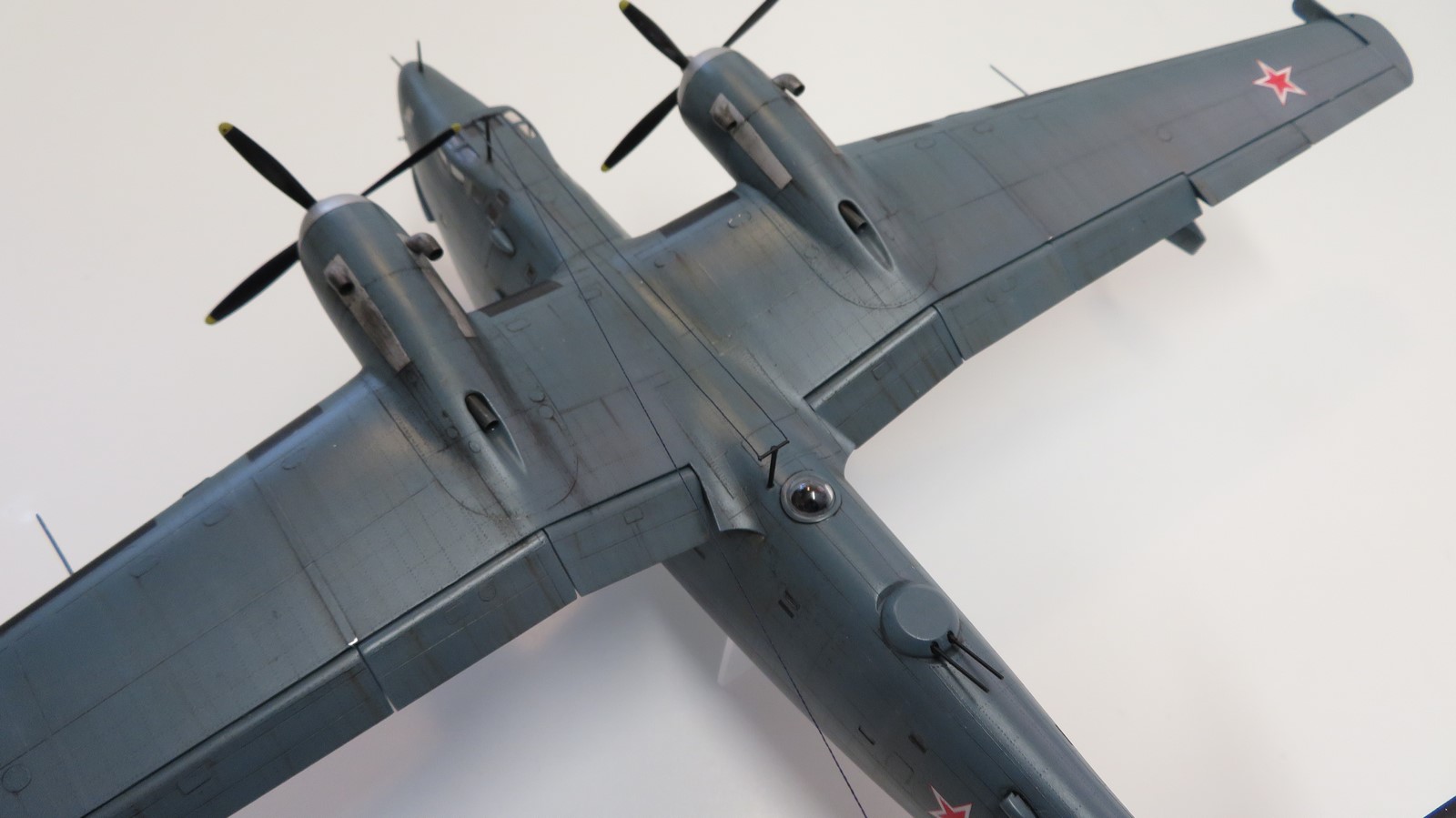 Изкаробка, но я исправил в модели мотогондолы и гаргрот за кабиной , насколько это возможно. С мотогондолами пришлось повозится, они неправильной формы и больше в диаметре на пару милиметров. - заливал смолой и потом стачивал до чертёжных размеров.Сами капоты и лобовины выточил и отлил новые. Гаргрот правил шпатлёвкой, потому как оставить его круглым совесть не позволила.