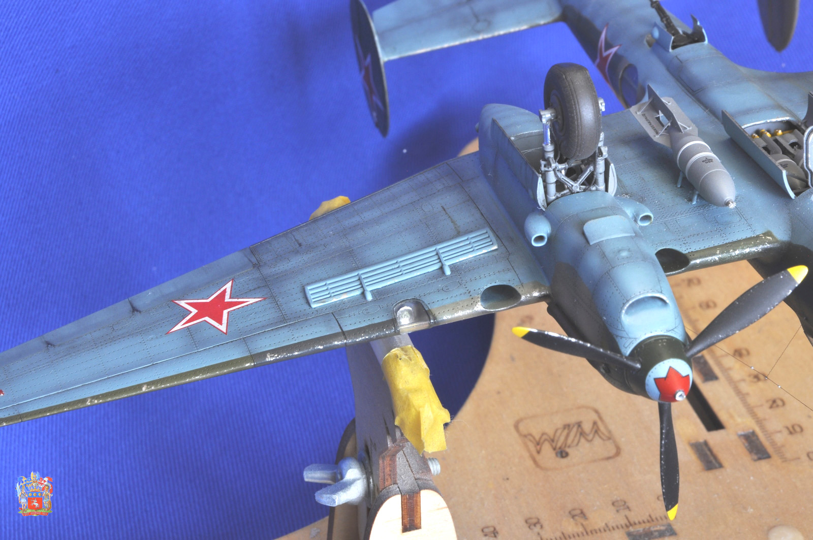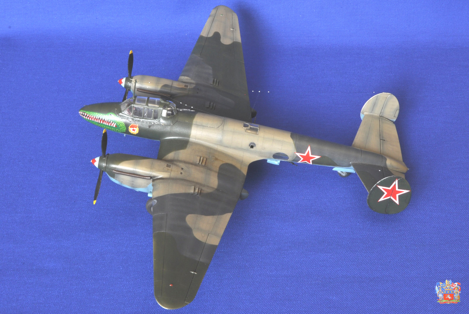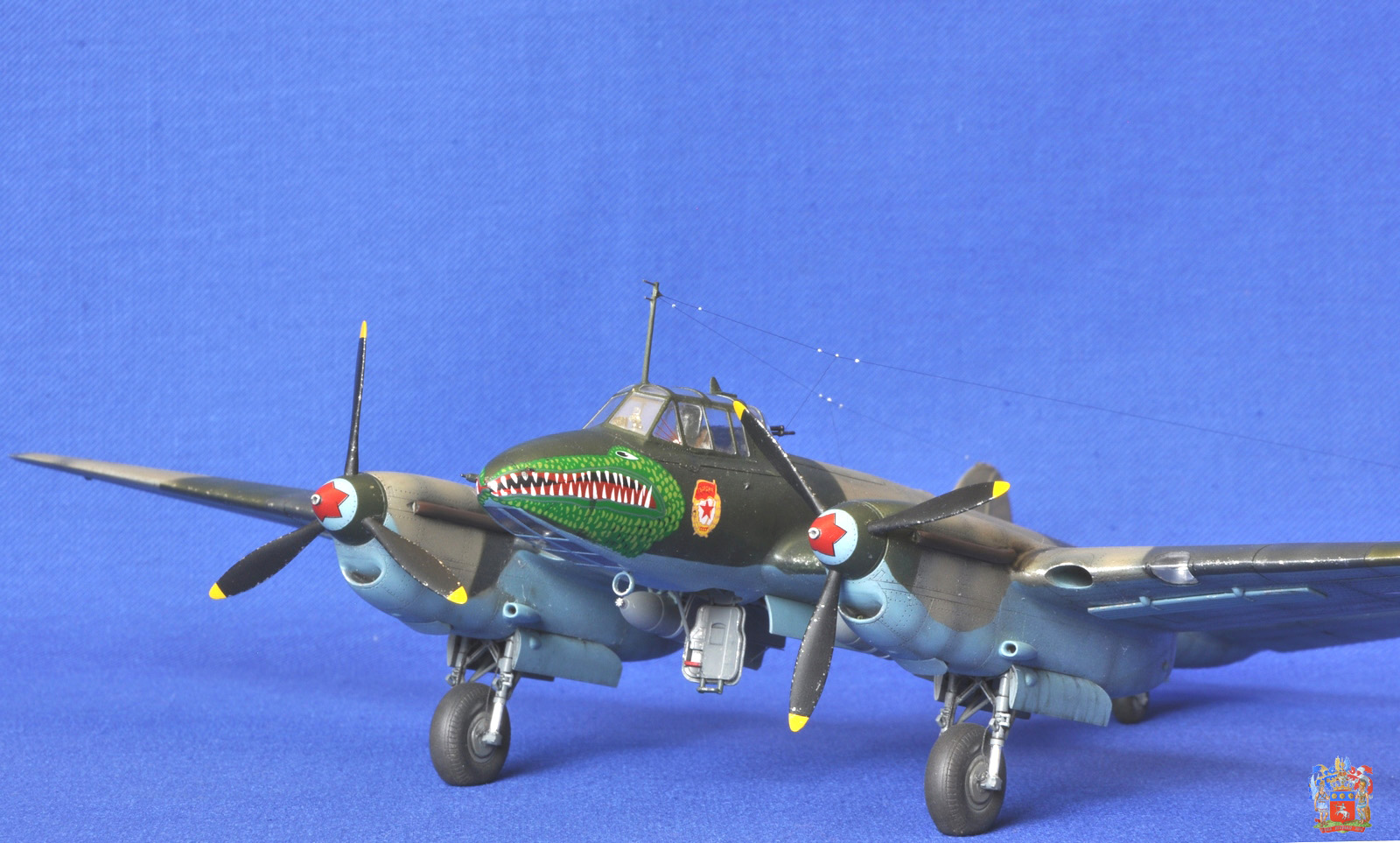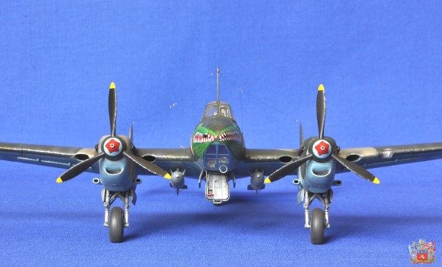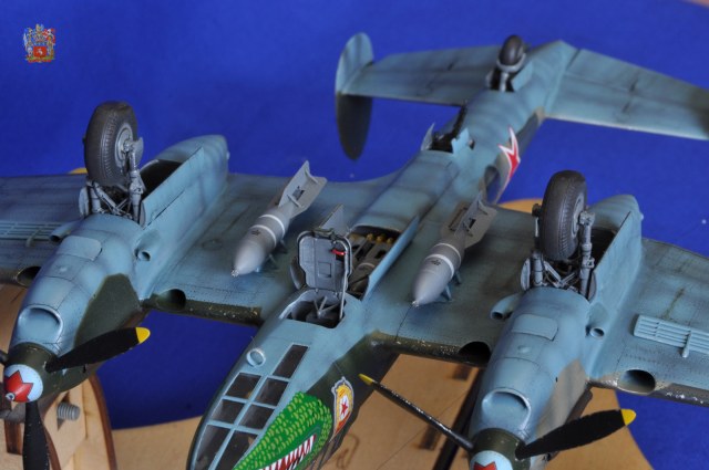 Коллеги и друзья по хобби, представляю очередную работу, это Пе-2, от ЗВЕЗДы в 48 масштабе. Впечатления от модели очень хорошие. При сборке получаешь удовольствие, из недостатков, это остекленнение (его материал) и фонарь штурмана уж очень не хотел вставать на штатное место. Шпаклевать приходилось, но умеренно. По самому прототипу, я выбрал Пе-2 полковника Федора Добыша. Март 1945 г. , он являлся командиром 1-ой Гв БАД ВВС РККА. Модель интересная, на просторах интернета еще не встречал. По сборке, из допов я использовал деколь от БЕГИМОТа, маски на остекленение и травление на авиа бомбы от ГАНЗа. Все остальное колхозил сам. Сделано: - жалюзи воздушного охлаждения, сделал из остатков травления; - тяги элеронов, инъекционная игла; - приборные доски, высверливал, делал, «бутерброд»; - на пулеметах стволы сделал из инъекционных игл; - выточил посадочную фару, сделал отражатель из фольги сам оклейки; - фольгой само клейкой обклеил фюзеляж вокруг фонаря; - поставил травленые стабилизаторы и ветряки на бомбы; - в стойке антенны ПВД сделал из инсулиновых игл; - из проволоки сделал имитацию тормозных шлангов на шасси; - на двигателях высверливал выхлоп; - ось на «костыле», это инъекционная игла; - антенна- нить из черного банта; - остекленение купал в футуре. Может, что-то забыл. Красил АКАНом, лак ТАМИЯ, смывка маслянные краски. Были определенные проблемы с нанесением деколи чудовища, т.к. с обеих сторон пулеметы, и натянуть ее было непросто. Приятного просмотра.