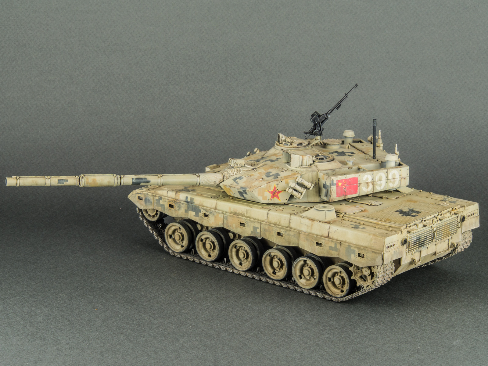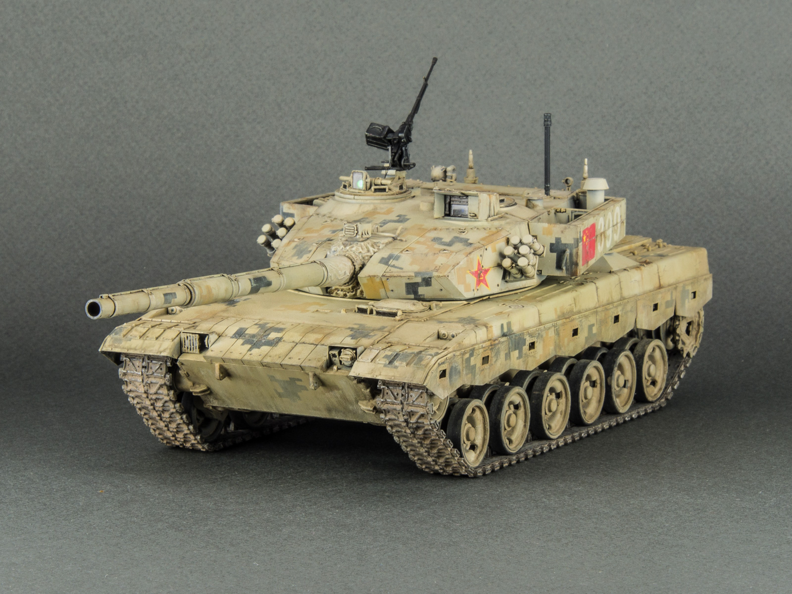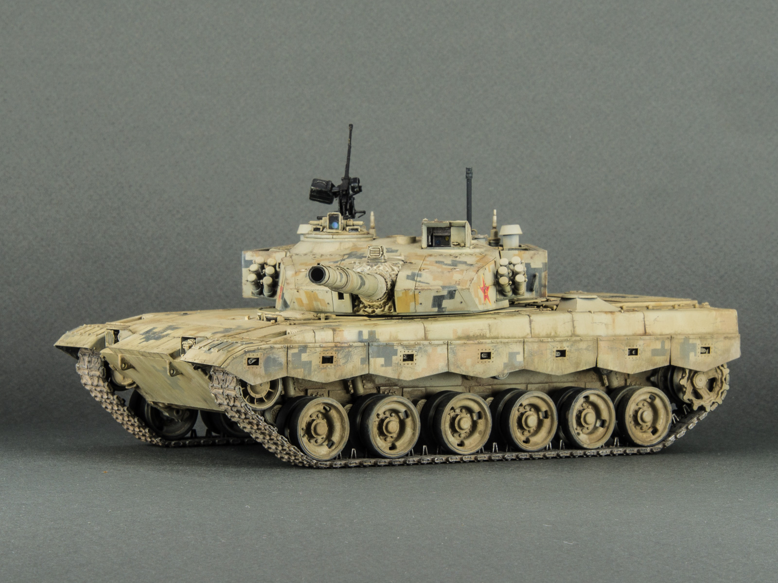 Итак, ZTZ-96B (он же Type-96B) от Менга. Китайский ОБТ Тип-96, несмотря на довольно современный внешний вид, ведет свою родословную от советского Т-54. По мере эволюции, на нем появилась новая 6-катковая ходовая часть, автомат заряжания, 125мм пушка, сварная башня с развитой кормовой нишей, модульное бронирование, встроенная динамическая защита, моноблочное МТО, и продвинутая СУО. В НОАК находится более тысячи танков Тип-96 и Тип-96А. Численность парка Тип-96Б пока неизвестна, и вполне возможно, что он был создан в ответ на "спортивную" версию Т-72Б3, для участия в Танковом биатлоне, где в 2016 года широкая российская общественность и получила возможность подробнее ознакомиться с этим танком.