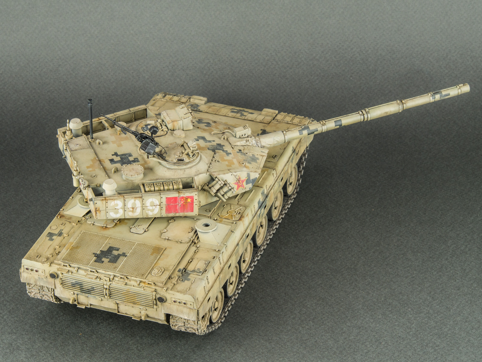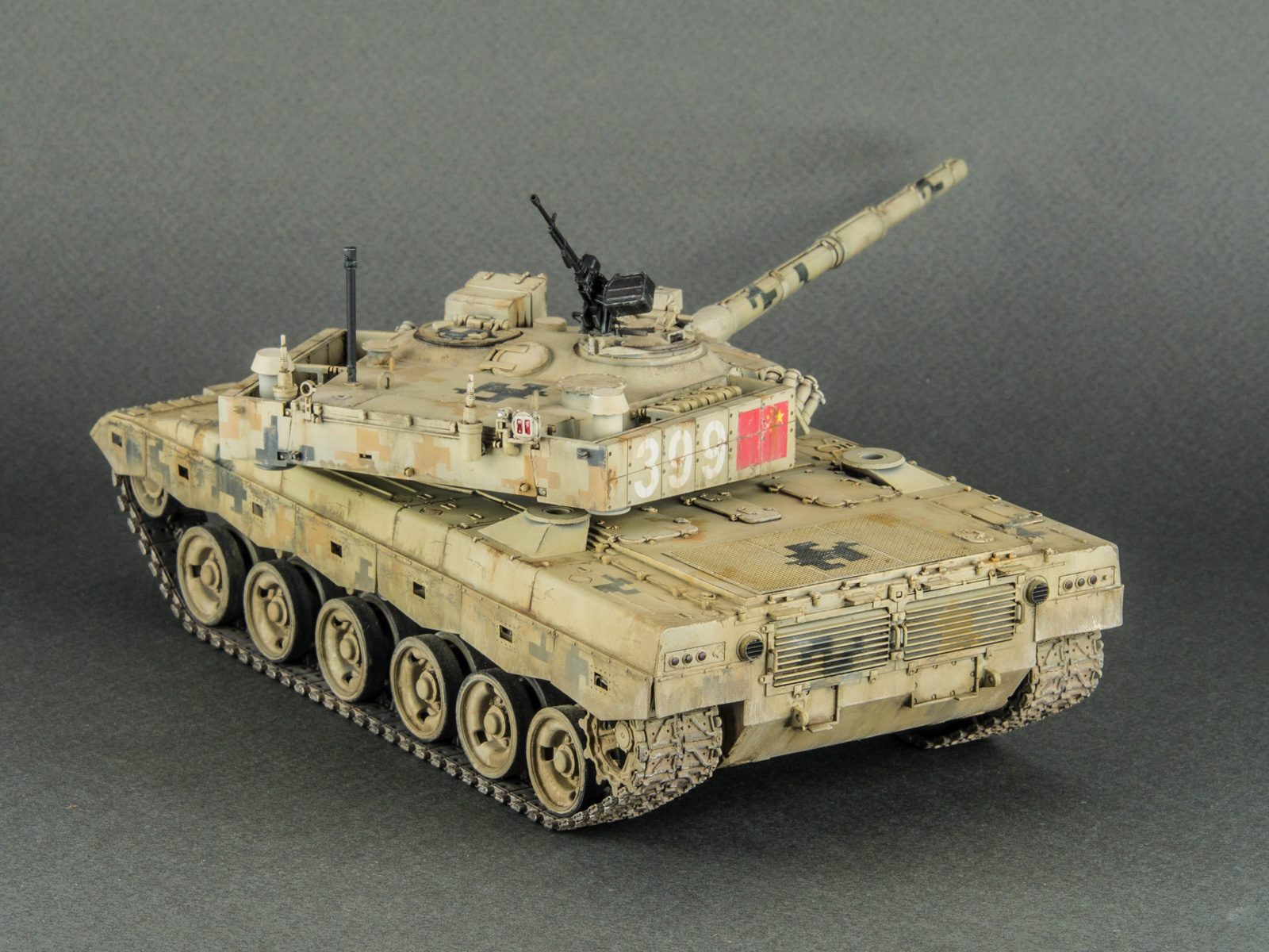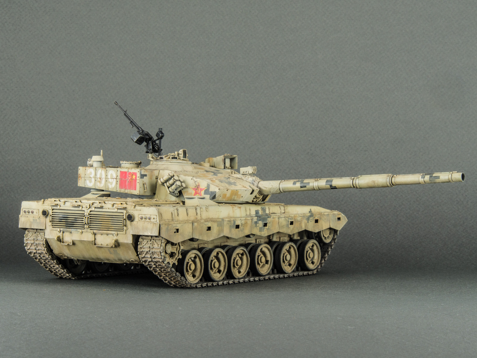 Итак, ZTZ-96B (он же Type-96B) от Менга. Китайский ОБТ Тип-96, несмотря на довольно современный внешний вид, ведет свою родословную от советского Т-54. По мере эволюции, на нем появилась новая 6-катковая ходовая часть, автомат заряжания, 125мм пушка, сварная башня с развитой кормовой нишей, модульное бронирование, встроенная динамическая защита, моноблочное МТО, и продвинутая СУО. В НОАК находится более тысячи танков Тип-96 и Тип-96А. Численность парка Тип-96Б пока неизвестна, и вполне возможно, что он был создан в ответ на "спортивную" версию Т-72Б3, для участия в Танковом биатлоне, где в 2016 года широкая российская общественность и получила возможность подробнее ознакомиться с этим танком.