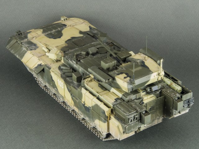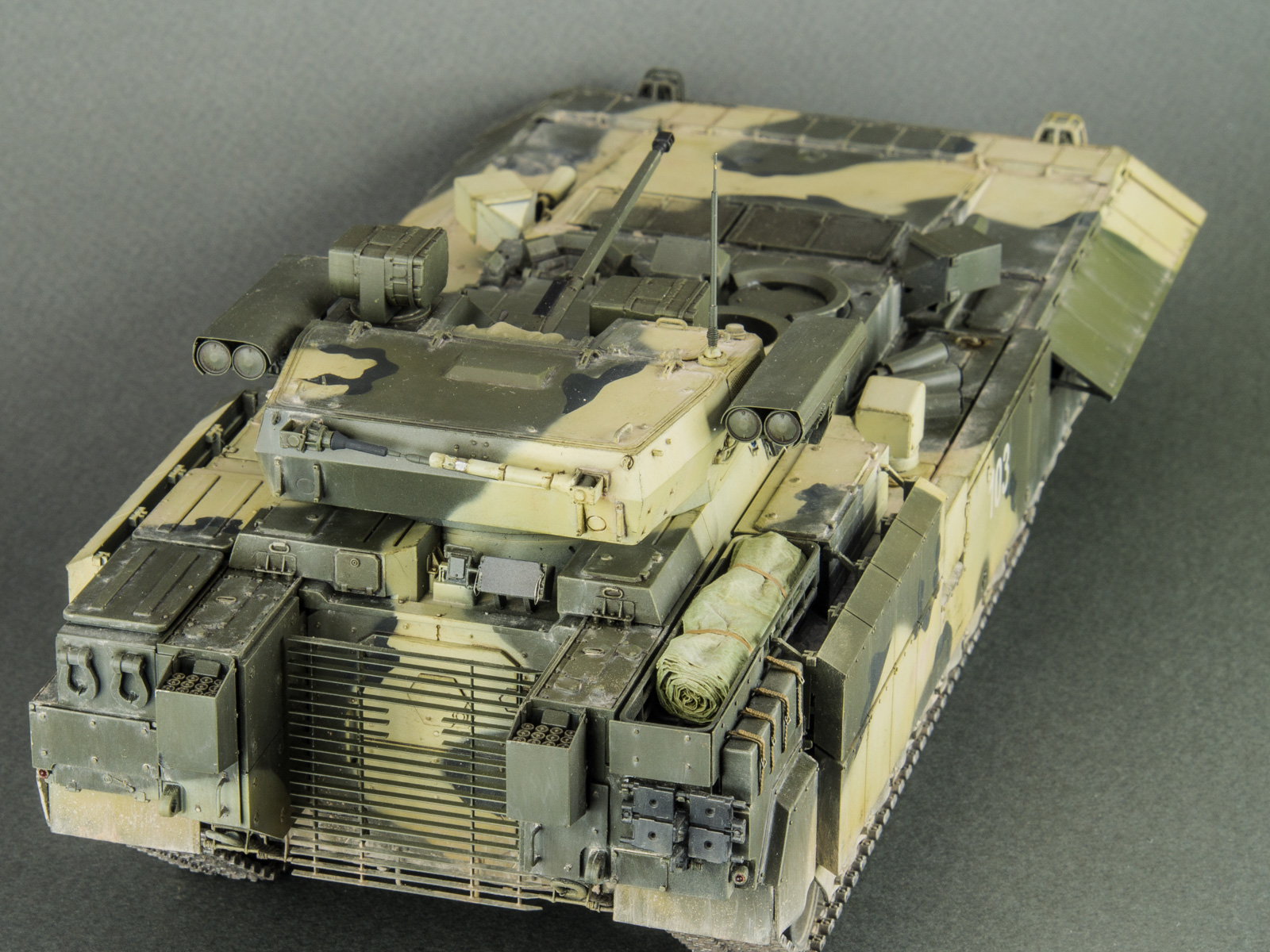 Окраска, без привязки к прототипу, т.к. хотелось изначально сделать камуфлированную машину. Традионно, красил ганзевским и тамиевским акрилом. Смывка от Ганзы. Эффекты - эмали Тамия и Ревел. Пигменты Миг и Вайлдер.