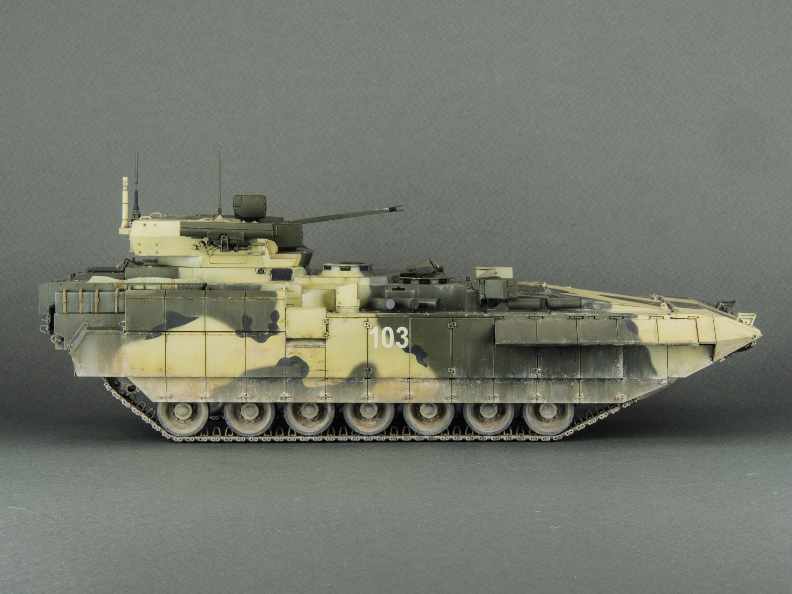 Пока же будущее машины все еще туманною. Среди 132х заказанных для опытной эксплуатации машин на платформе Армата, должны быть и эти БМП, но какой именно будет установлен на них боевой модуль, пока неизвестно.