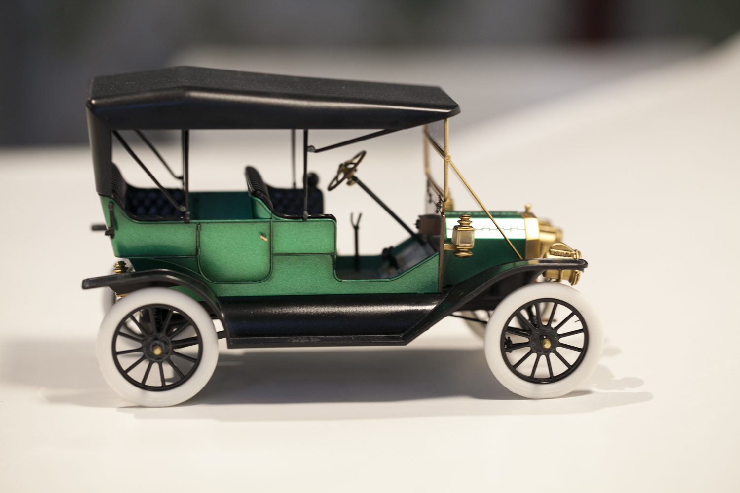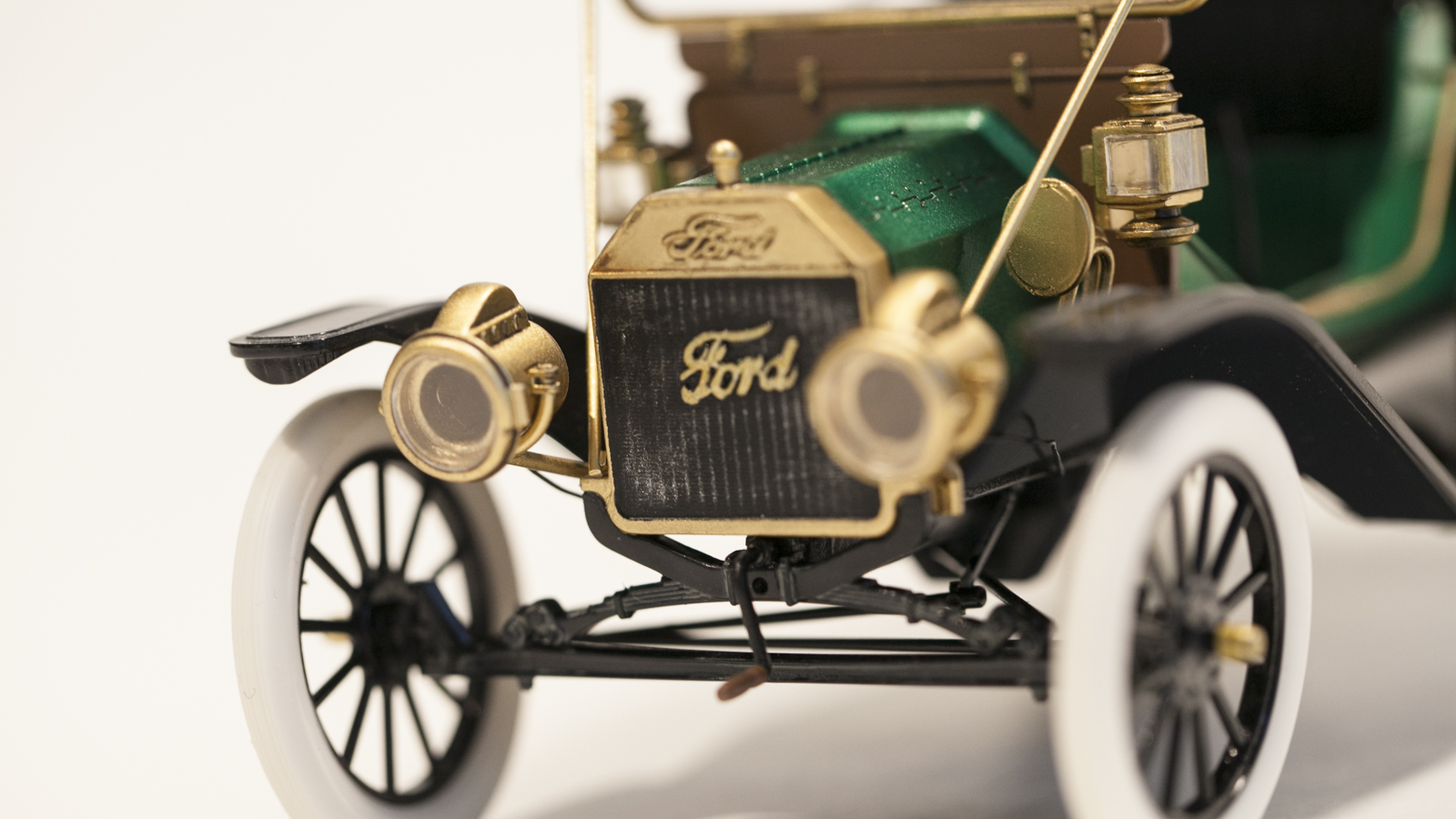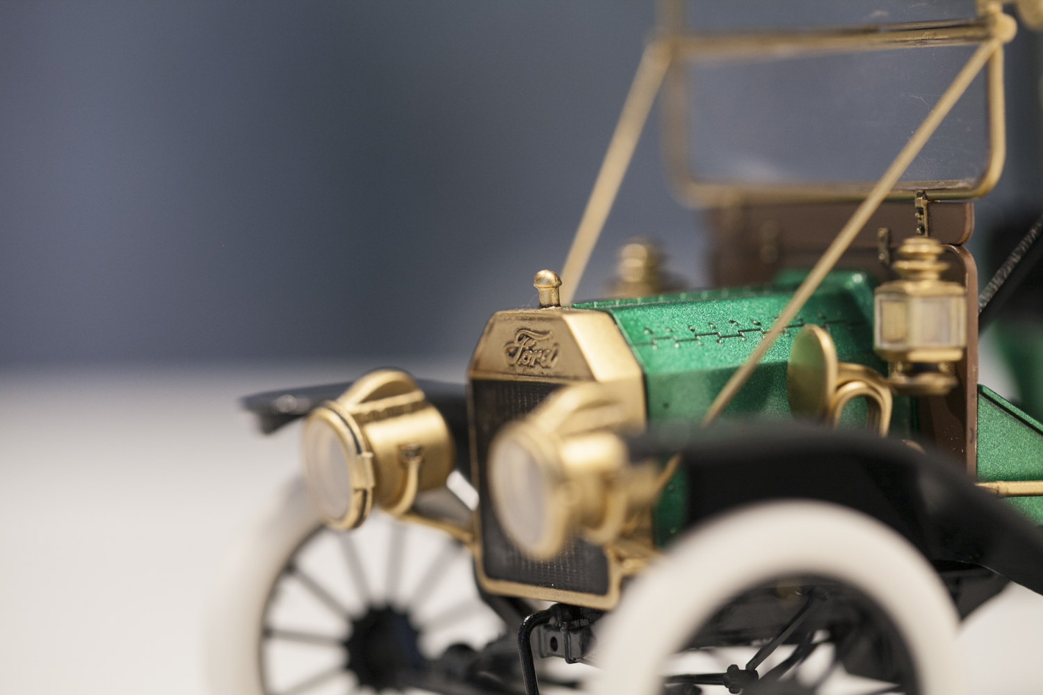 Представляю вам модель Ford T от ICM в масштабе 1/24. На этой модели я попробовал окраску спиртовым акрилом (зеленый металлик) от тамии который разбавлял lacquer thinner от тамии же. Краску и разбавитель смешивал 50 на 50, результат меня очень порадовал. Краска ложится очень ровно, ни намека на шагрень, сохнет очень быстро. После высыхания прошелся тамиевской полиролью по кузову.