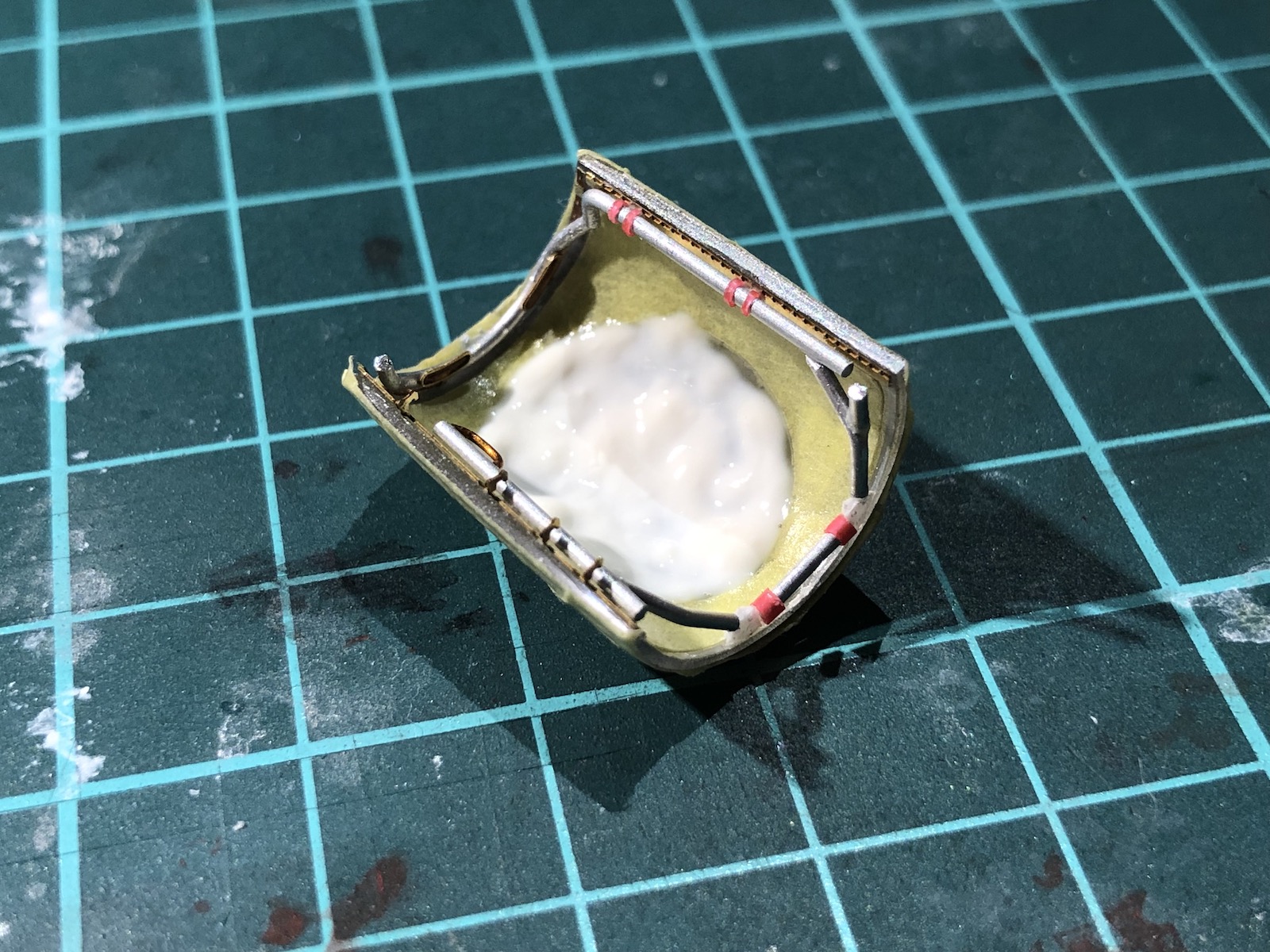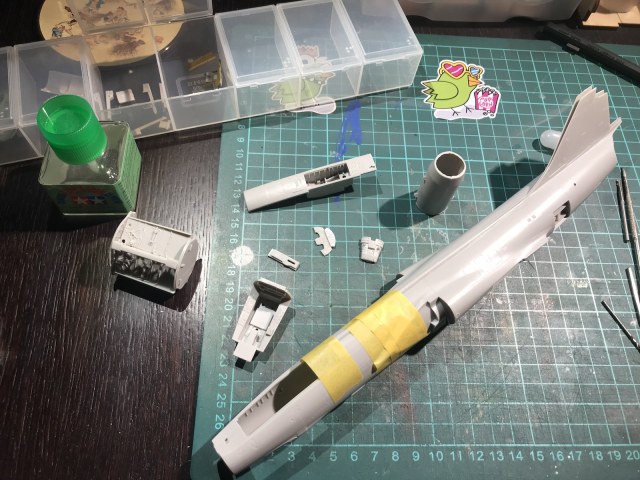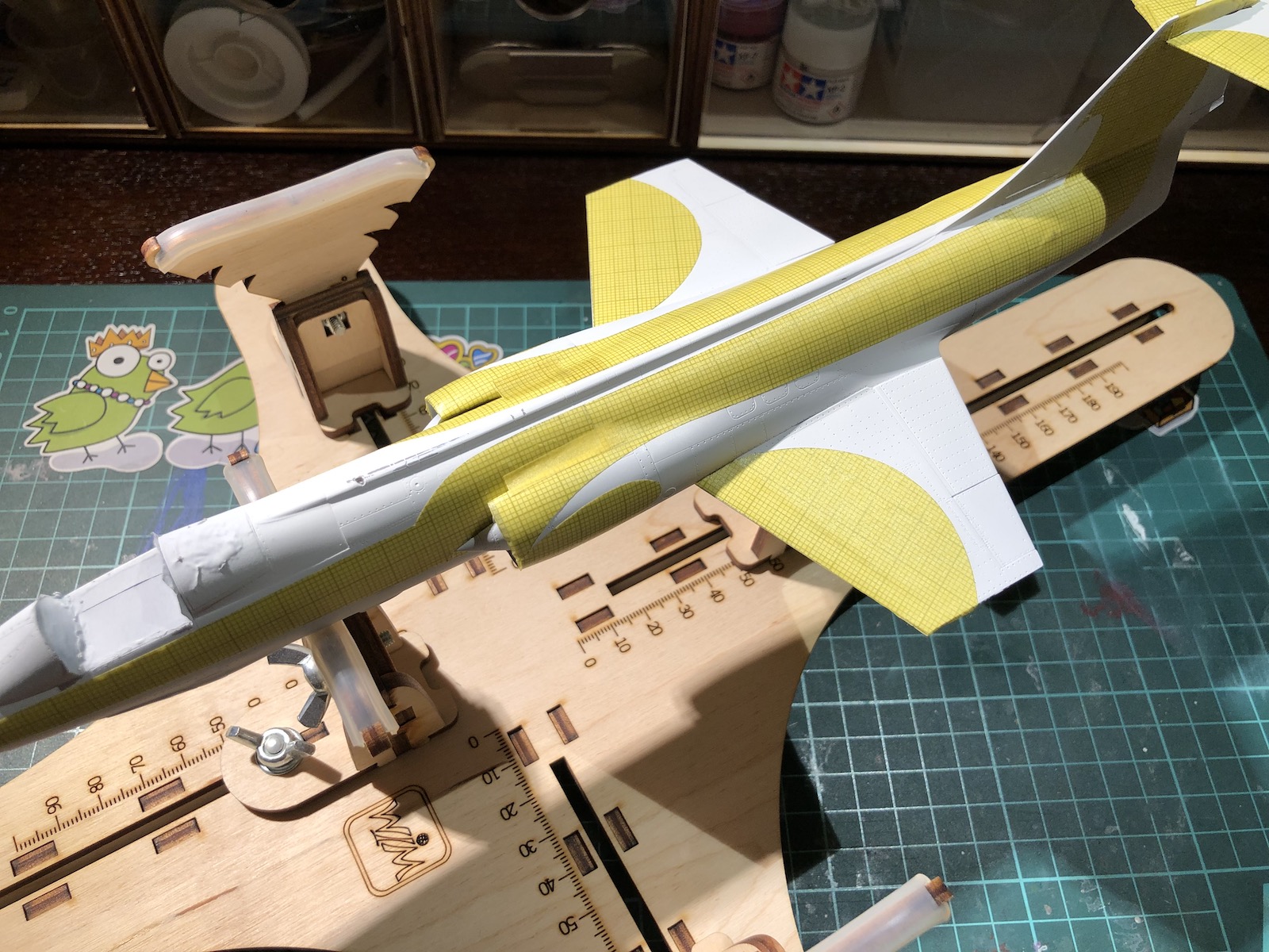 Что касается модели, то, прежде всего, мне не понравилась стыкуемость некоторых частей, смещение пресс-форм и следы от толкателей в самых ненужных местах. Работа над моделью проходила нормально до момента нанесения достаточно сложных для меня декалей. Вся ливрея (назову её так) состоит из нескольких частей декалей, которые при нанесении совершенно друг с другом не состыковались, хотя предварительная примерка таких проблем не выявила. Это была катастрофа, так как исправить это было невозможно. Жаль, что в расстройствах я забыл сделать фото этого момента. Компания Cartograf отказала мне в новых декалях, сославшись на авторские права, а производитель мне так и не ответил. Пришлось заказывать новую модель, сканировать декали, обводить в графическом редакторе и печатать на тамиевской клейкой бумаге. Из декалей я использовал только оранжево-жёлтые полосы и надписи на фюзеляже. Естественно, старые декали вместе с краской и грунтом пришлось полностью смывать.