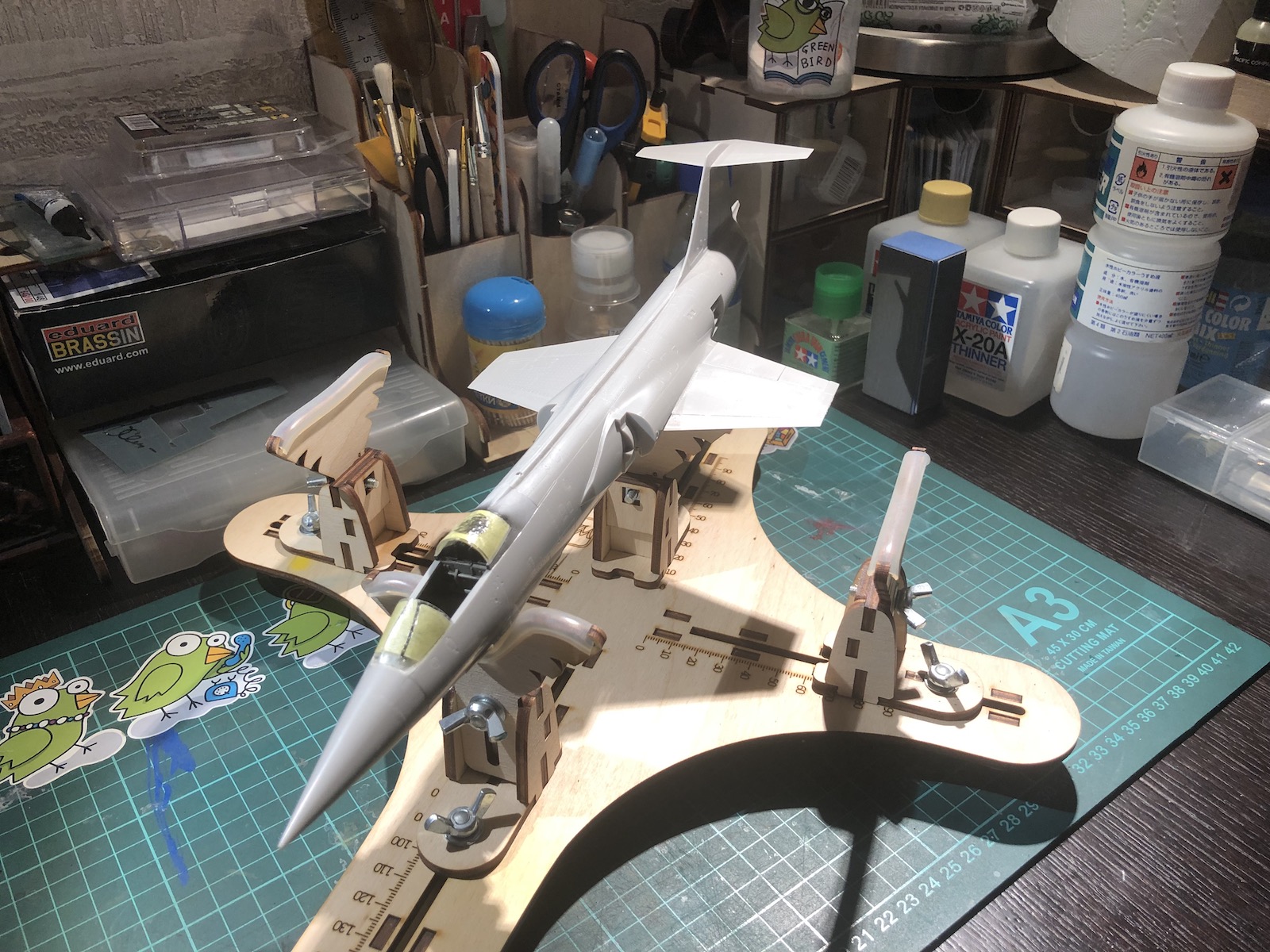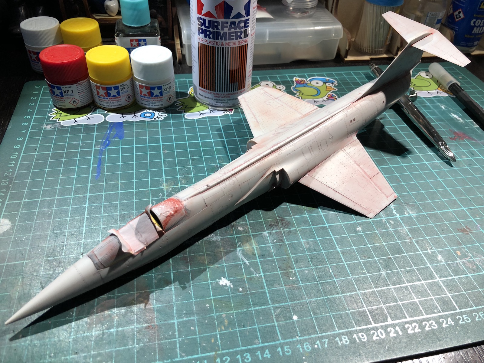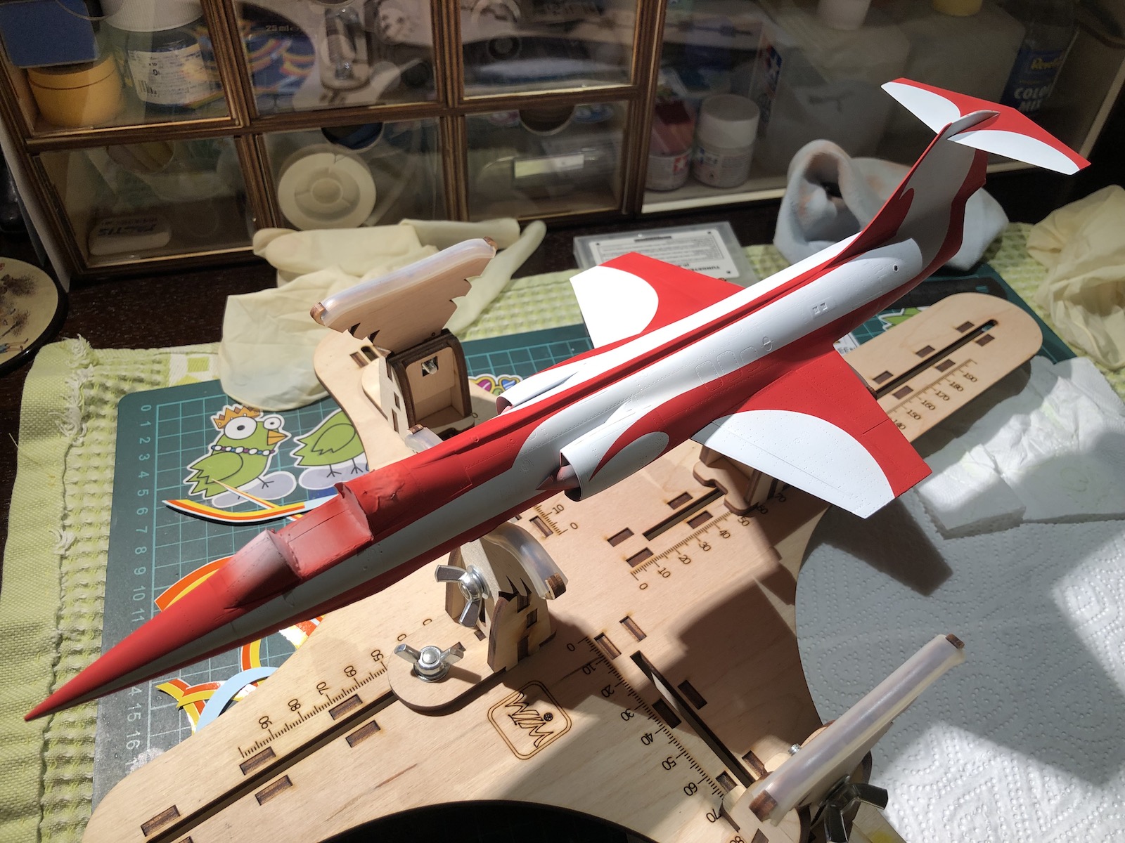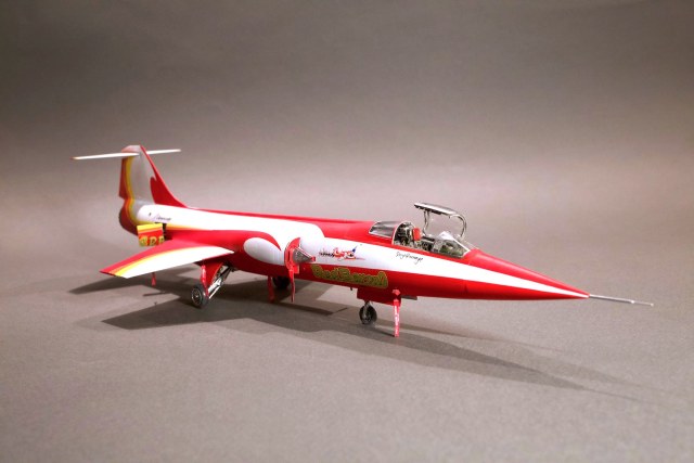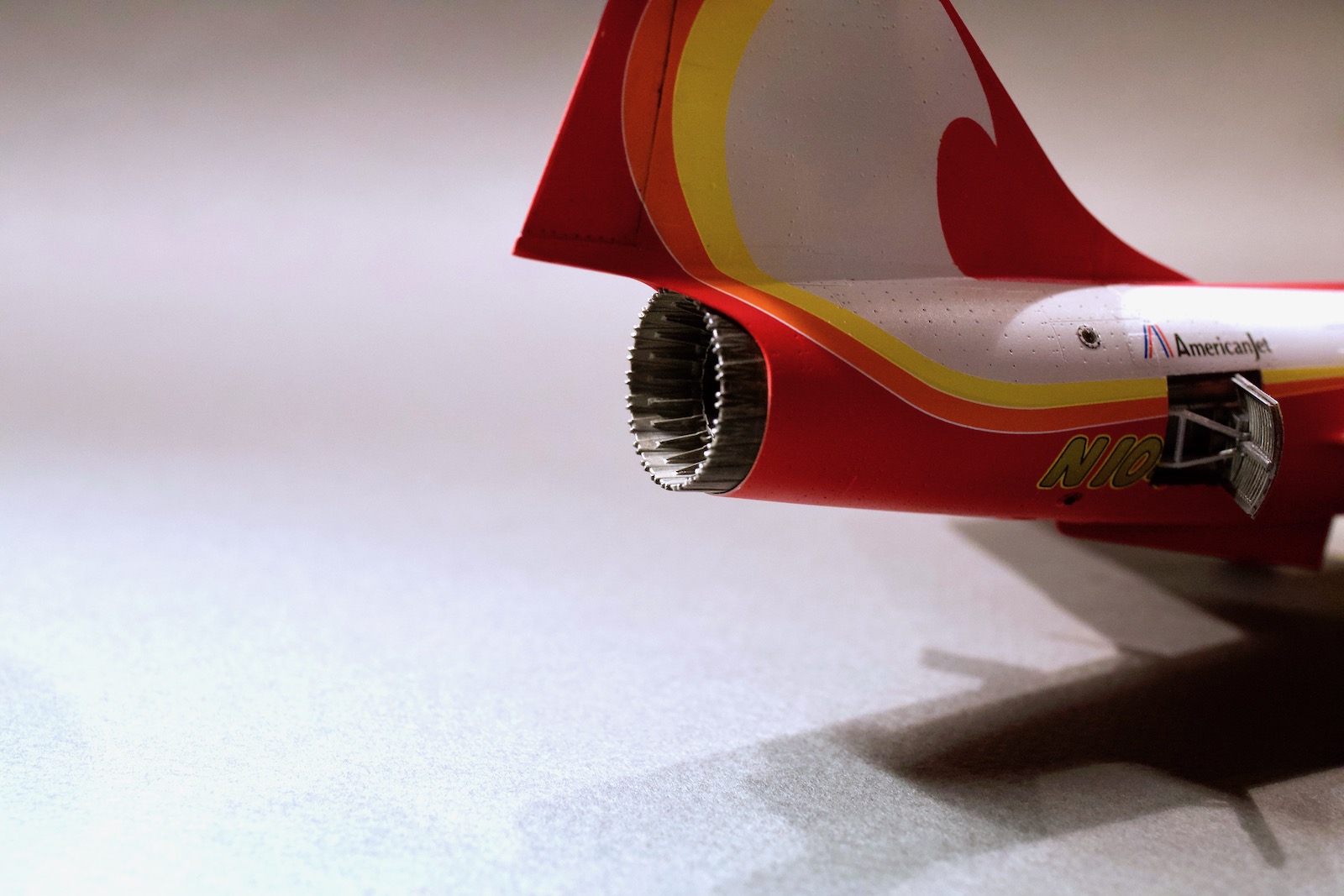 Разрешите представить вам свою очередную работу. Решив отвлечься от поршневой авиации, попробовал свои силы в реактивной. Выбор пал на достаточно интересный вариант знаменитого истребителя-перехватчика F-104 Starfighter, а именно специально собранный экземпляр, на котором 24 октября 1977 г. пилот Деррел Гринмайер установил рекорд скорости полёта на малой высоте на дистанции 3 км - 1590,45 км/ч. Прототип является своего рода Франкенштейном, собранном за 13 лет из частей различных модификаций F-104. Что интересно, главной целью Деррела был рекорд высоты, установленный Миг-25.