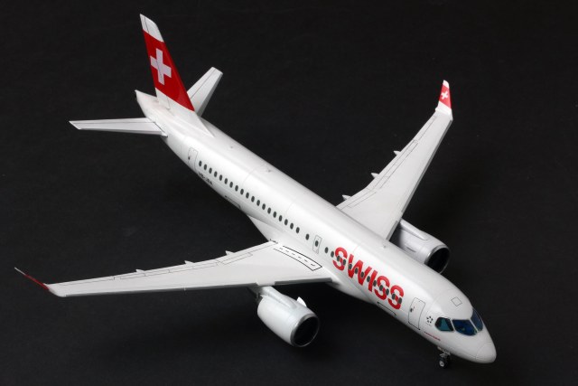 Хотелось бы написать все как всегда. Окраска тамия и ганза, испачкал эмалью на уайтспирите. Но это вроде как первая модель A220 на этом сайте! И это Восточный экспресс. И он собрался почти без шпатлевки! Без шпатлевки! В наборе прозрачное остекление и есть детали для постройки кабины пилотов, но на это я забил. Справедливости ради, отмечу, что были щели при стыковки крыльев и фюзеляжа, но они вылечились при помощи суперклея. Декаль на киль оказалась меньшего размера, и красный там пришлось надуть аэром, потом приклеил декальный белый крест. На винглетах красный - это декали. Фотолобовик от пас и серебряная окантовка с коробочной деки. Как подучилось, судить вам. Я мог бы и лучше но дольше.