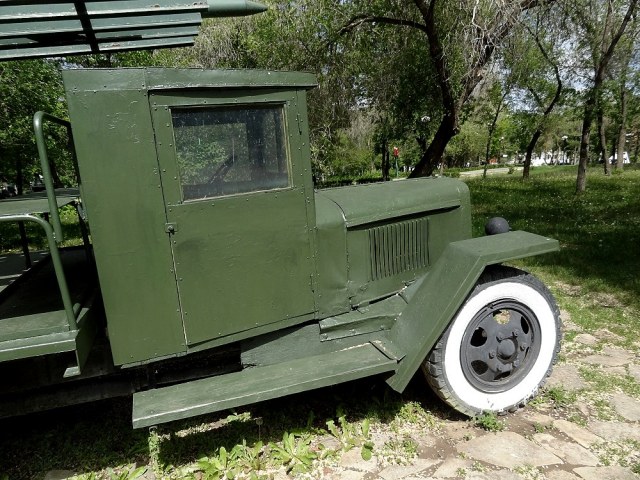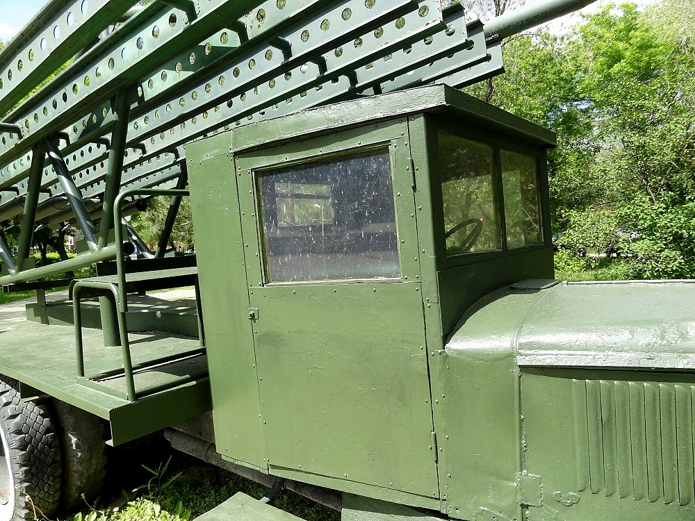 К сожалению, данный обзор может быть полезен только применительно к УралЗиСу, так как данное творчество к установке запуска реактивных снарядов не имеет никакого отношения. Это грубый макет, сваренный кем-то на тему "Катюши". Сам автомобиль очень сильно заколхожен и пребывает в удручающем состоянии.