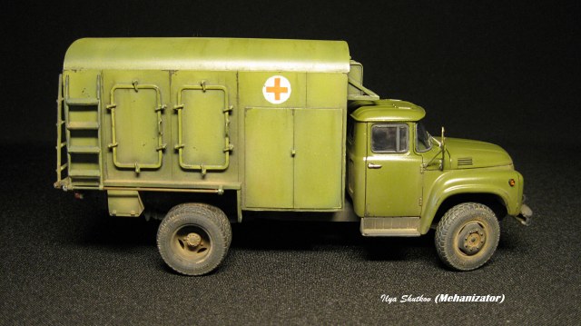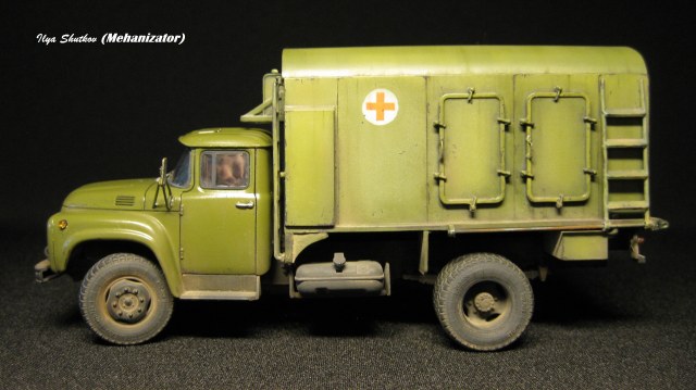 Здравствуйте друзья! В продолжение линейки техники, принимавшей участие в ликвидации последствий аварии на Чернобыльской атомной электростанции, представляю вашему вниманию модель армейского дезинфекционно-душевого автомобиля на шасси ЗИЛ-130 (ДДА-2). Дезинфекционно-душевая установка на различных шасси (ЗИЛ-130 (ДДА-2), ЗИЛ-131 (ДДА-3), ГАЗ-66 (ДДА-66), одноосный автомобильный прицеп (ДДП-1/2) активно применялась для помывки участников ЛПА и дезинфекции одежды в палаточных лагерях, развернутых вне 30-ти километровой зоны радиационного загрязнения. Данная установка оснащена паровым котлом КД-400, одним из самых мощных в серии, двумя дезинфекционными камерами, мощной мотопомпой, позволявшей развернуть установку на расстоянии до 200 метров от водоема. Помывка людей производилась в специально развернутой палатке-санпропускнике.