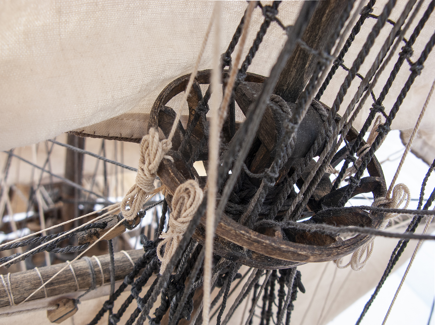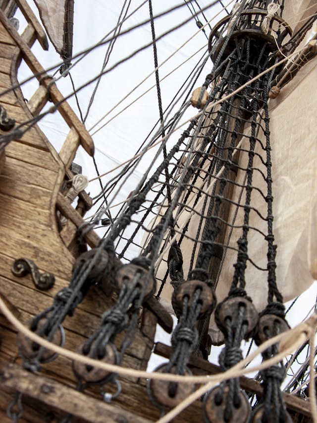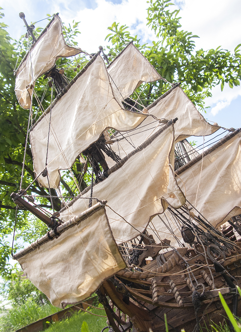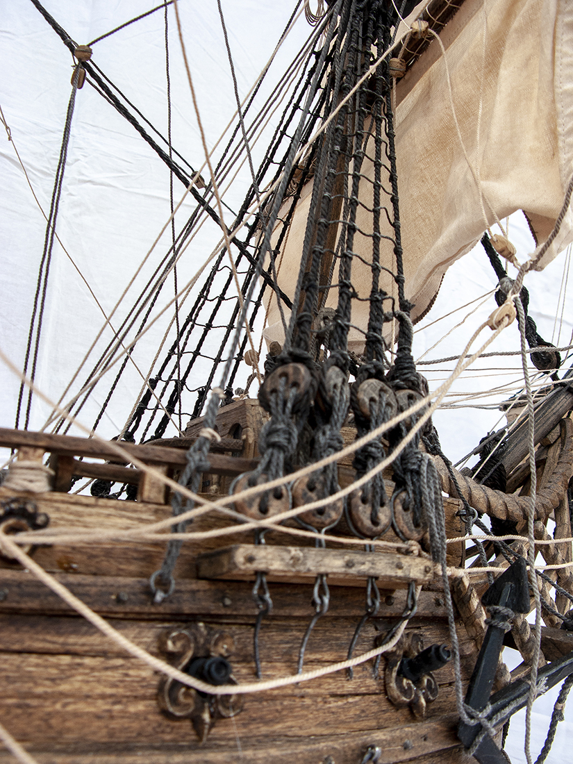 На мой первый взгляд не очень взыскательного судомоделиста, приятное впечатление. Но ПАРУСА???!!! Я извиняюсь, но смотрятся как носовые платочки. Ну чего же Вы их как -то лучше не сделали?! Швы, рифы и риф банты, как бы они оживили модель. Ведь столько способов есть, как это сделать или имитировать.