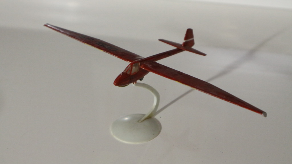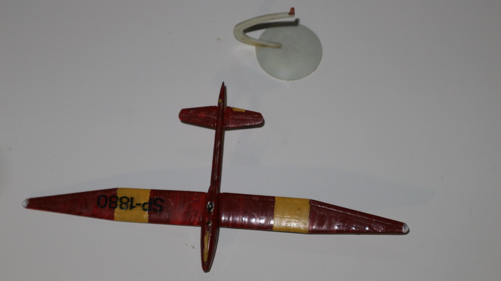 Польская модель была подарена родственниками когда ещё в школу ходил в конце 80-х. Привезли из поездки в какой-то санаторий. Тогда активно увлекался моделизмом и ходил в кружок. Там-же планер был покрашен нитрокраской и был предметом некоторой гордости ибо больше ни у кого подобной модели не видел. С тех пор стоял на полке за стеклом на ряду с другими "приветами из прошлого".
