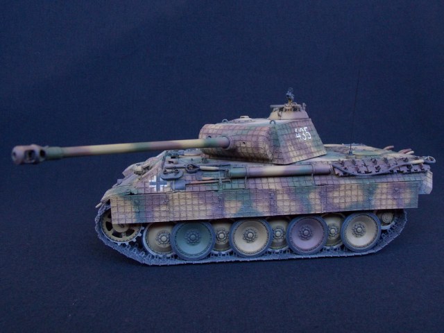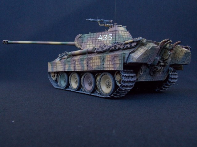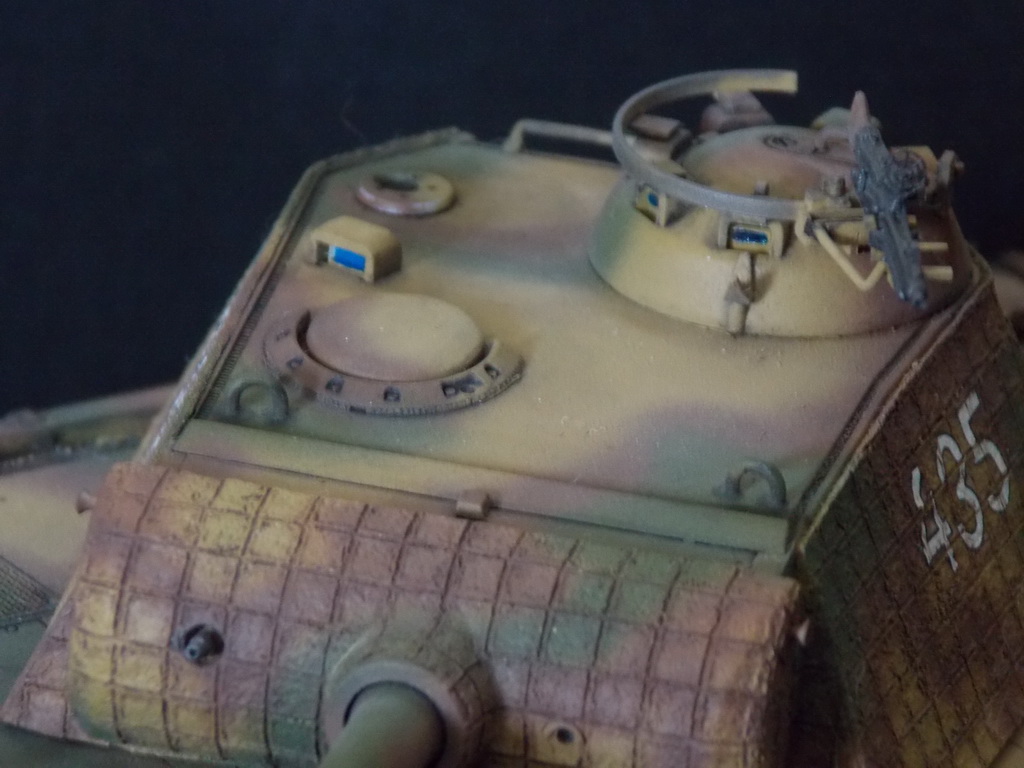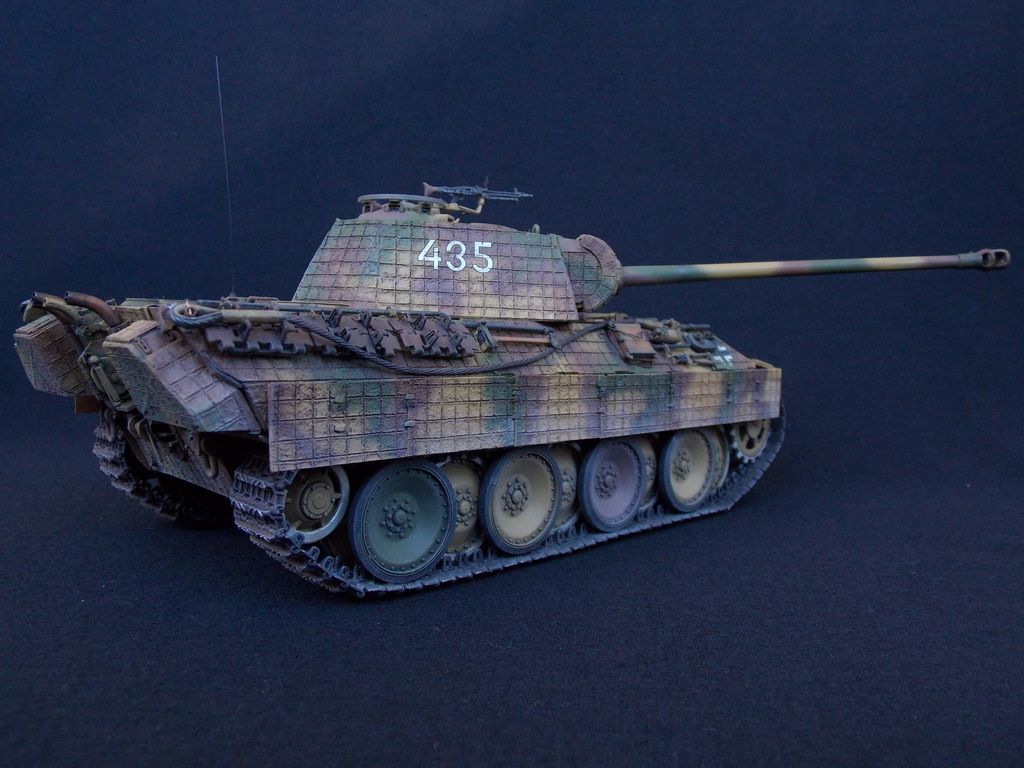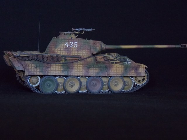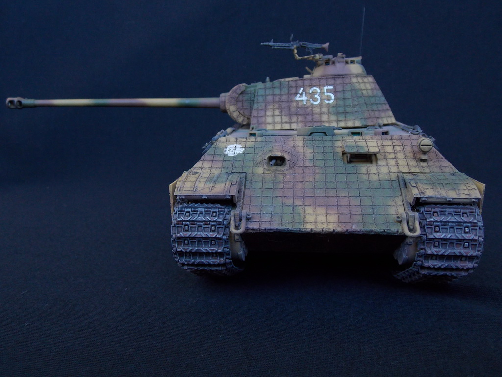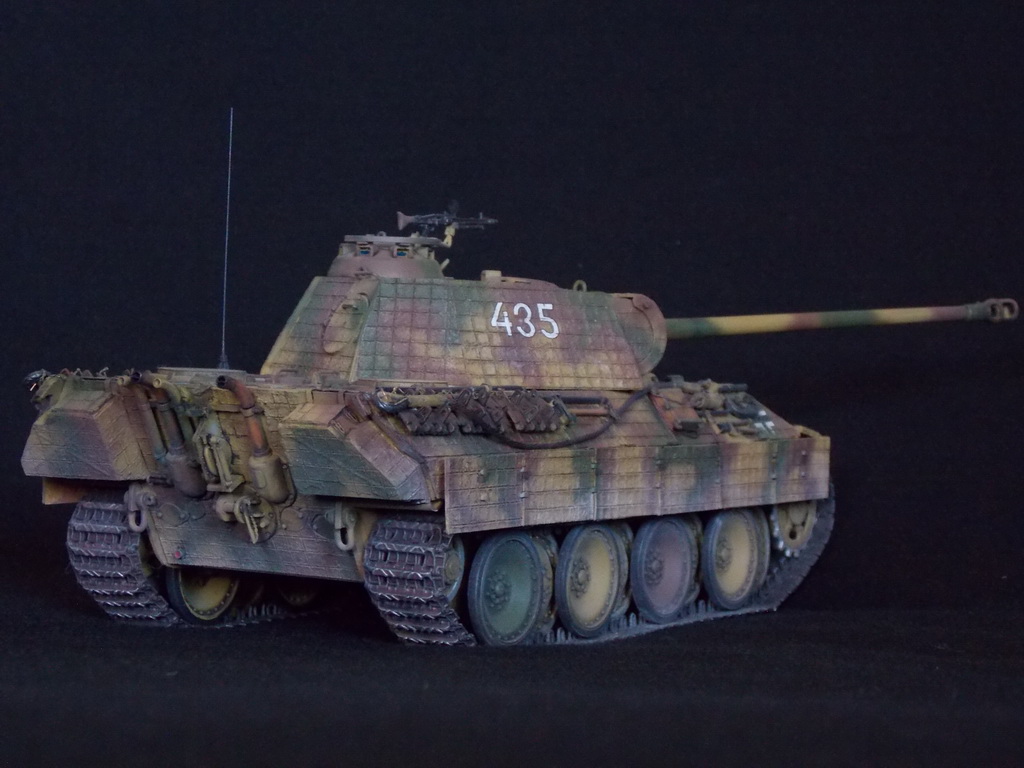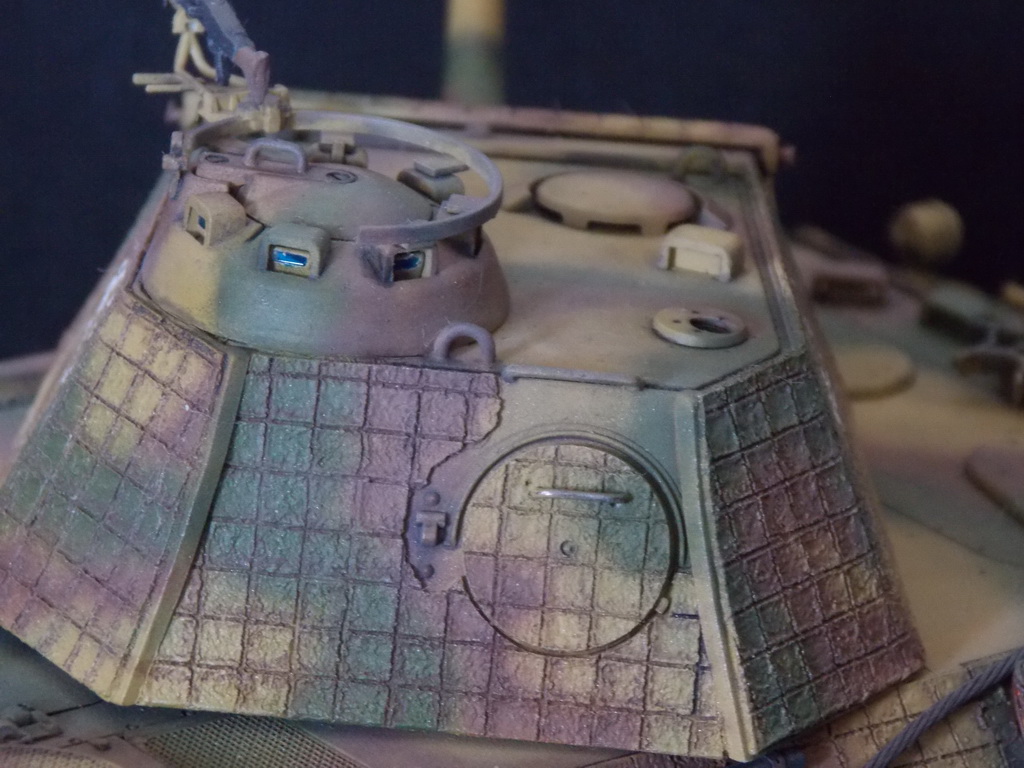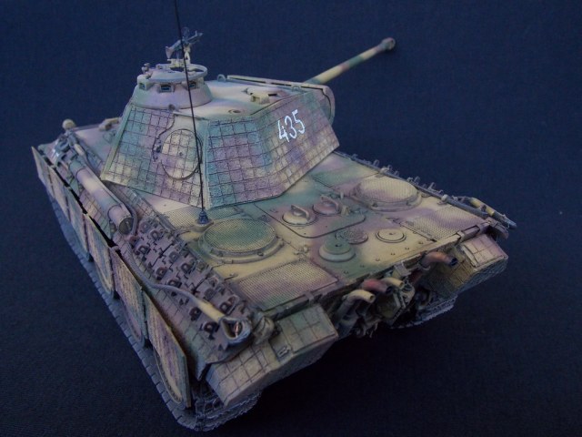Пантерка выглядит очень приятно. Похвально, что мнение коллег услышал и кое-чего доработал в итоге. Крышку люка-пробки тоже надо было бы выровнять как положено. Вафельный циммерит к месту, но места, где изображены сколы лучше было бы наверное под грунт покрасить. Не думаю, что её перекрашивали в поле уже после того, как цимм поотлетал. Ну и выхлопные трубы надо было поглубже высверлить, трубки вентиляции тоже. А в целом, очень даже ничего.