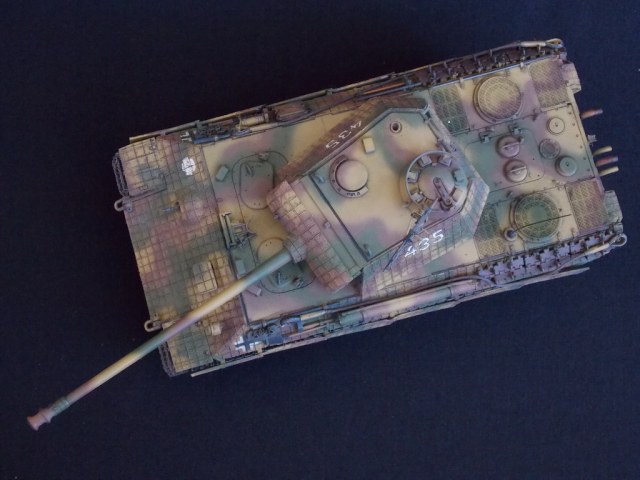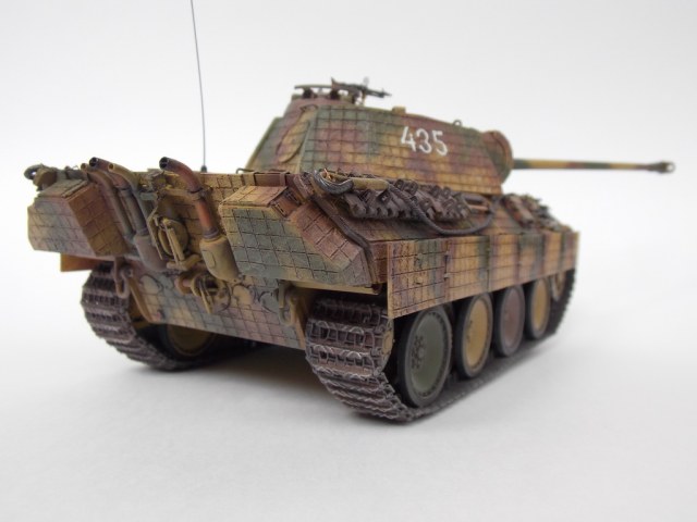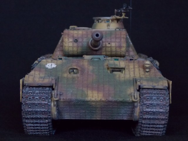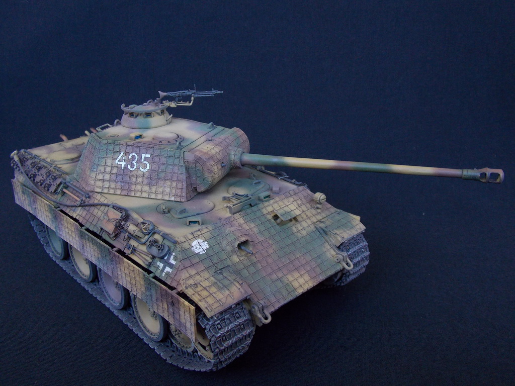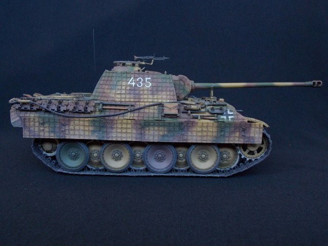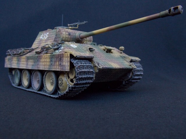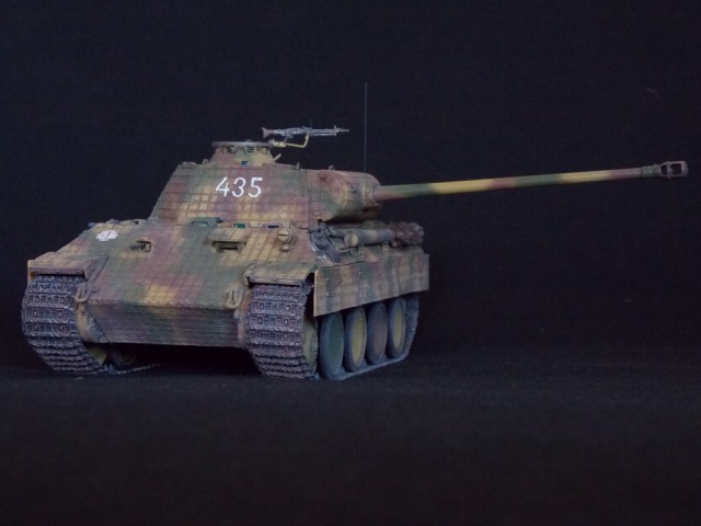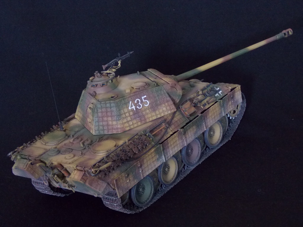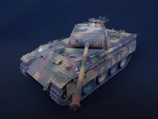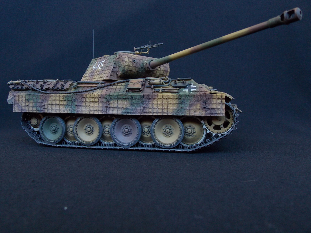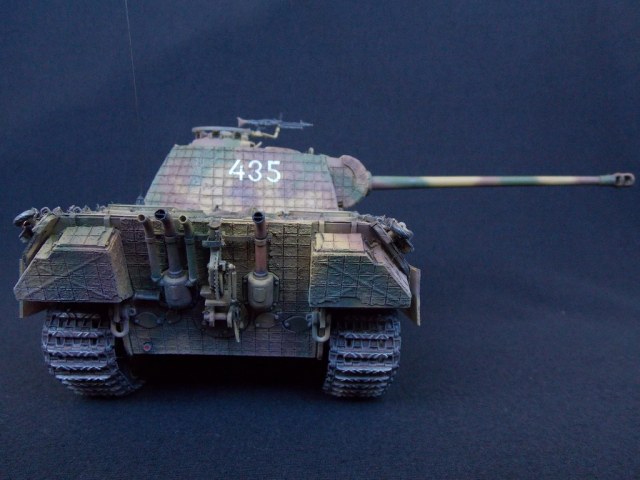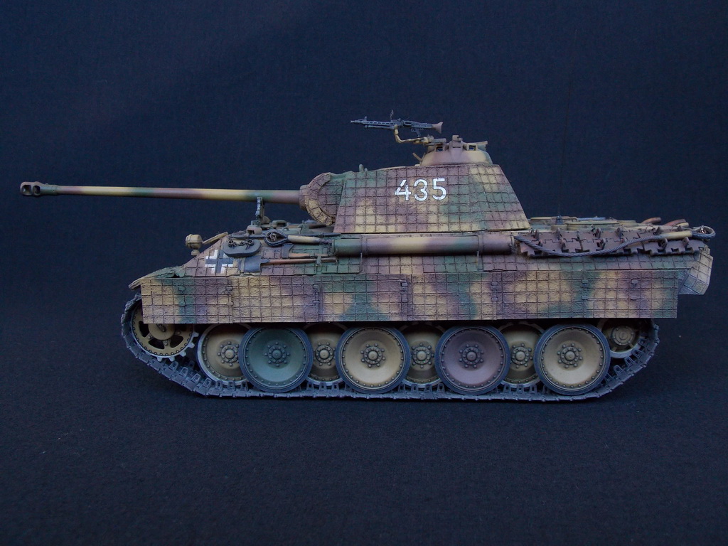 Пантерка выглядит очень приятно. Похвально, что мнение коллег услышал и кое-чего доработал в итоге. Крышку люка-пробки тоже надо было бы выровнять как положено. Вафельный циммерит к месту, но места, где изображены сколы лучше было бы наверное под грунт покрасить. Не думаю, что её перекрашивали в поле уже после того, как цимм поотлетал. Ну и выхлопные трубы надо было поглубже высверлить, трубки вентиляции тоже. А в целом, очень даже ничего.