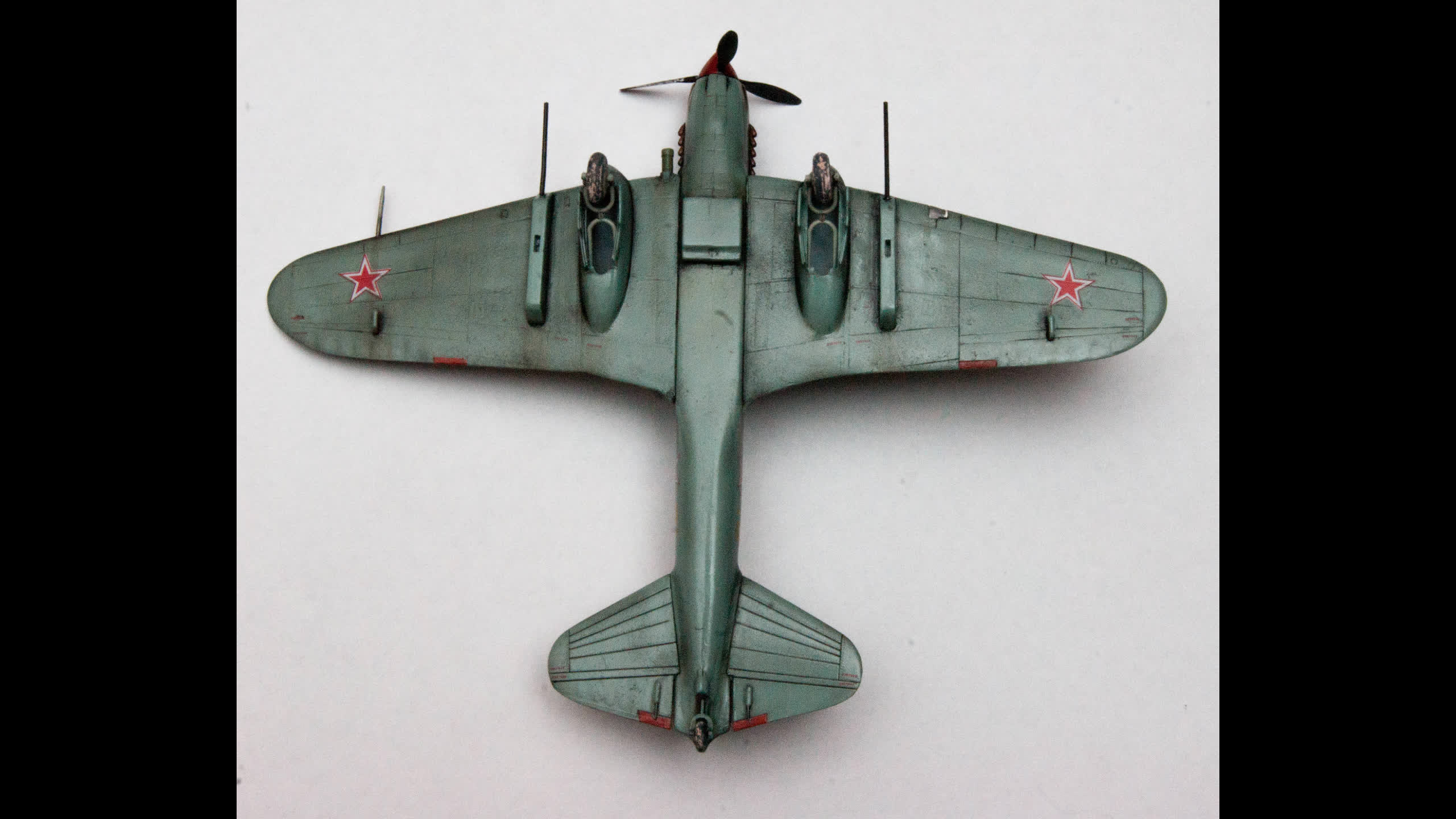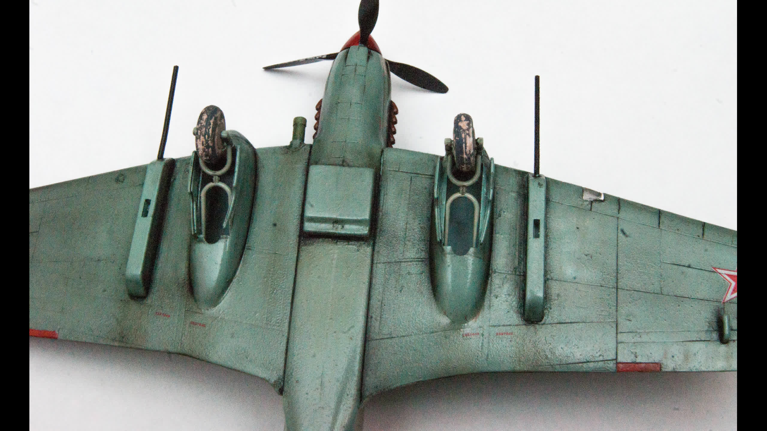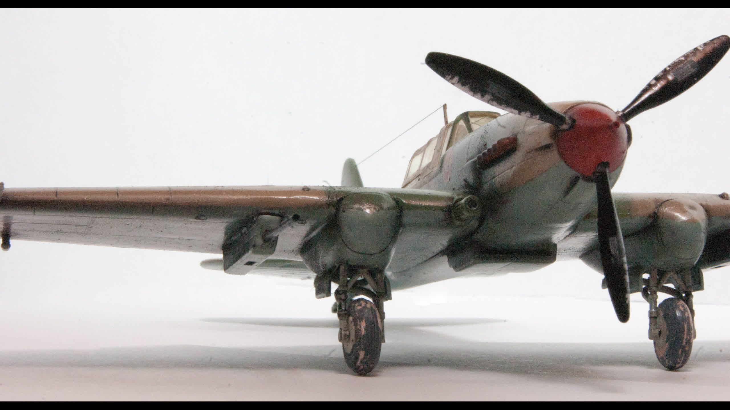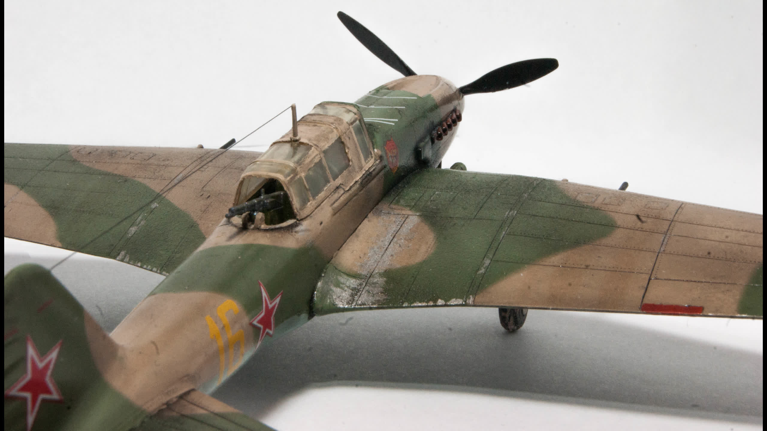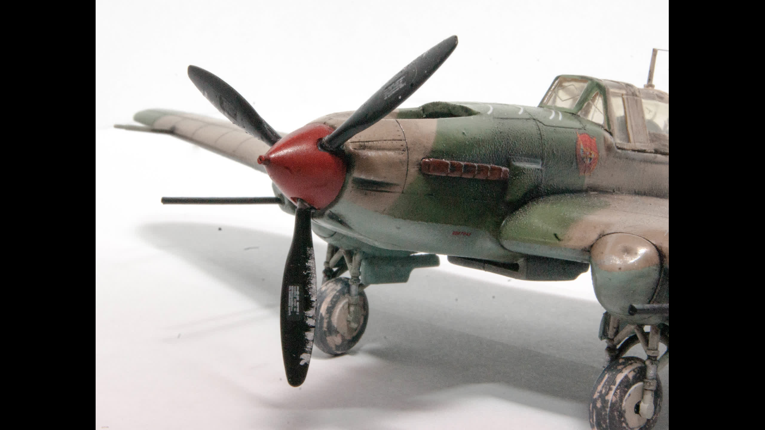 Вопрос подбора красок тоже важный. Если верхний камуфляж меня ни разу не напрягает, независимо от того был такой или нет, то низ очень бросается в глаза. Так же, как герметик с кабин Мигов на колесах, имитирующий грязь.