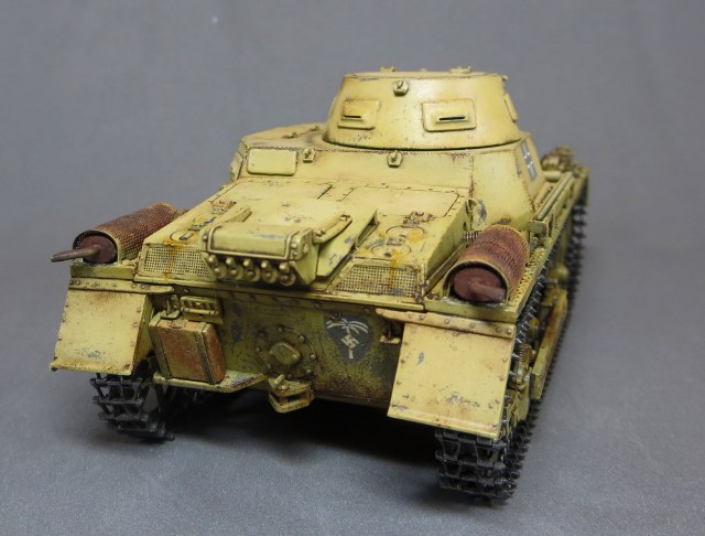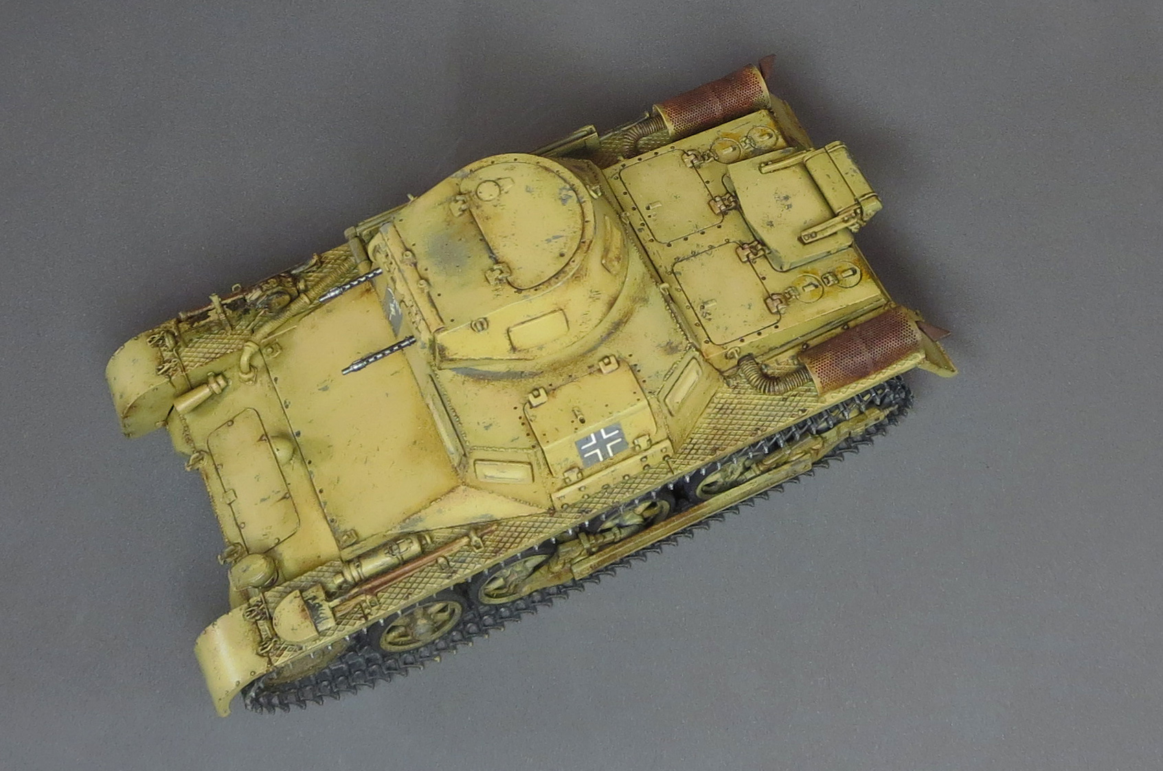 Собирательный образ Pz.Kpfw.I африканского корпуса. В матчасть не вдавался. Собирал из коробки с небольшими доработками.
