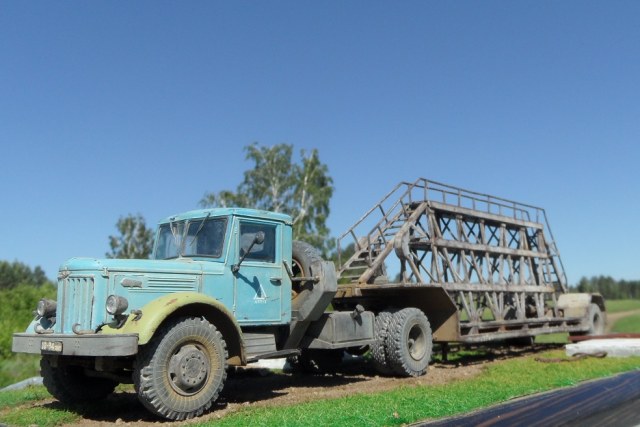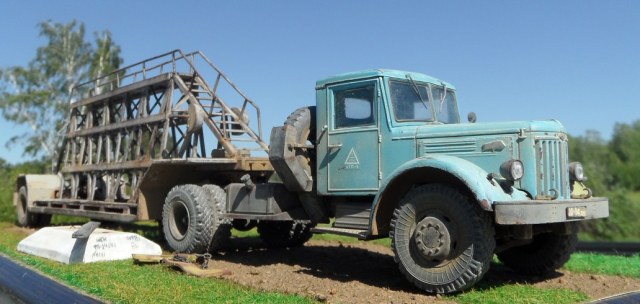 Новинка от AVD Models - Маз 200 с полуприцепем для перевозки панельных блоков НАМИ-790. Выпускался он Московским экспериментально-механическим заводом и Смелянским (есть такой городок Смела на юго-востоке Черкасской области на Украине) электромеханическим заводом. Во времена СССР такие прицепы можно было увидеть на любой стройке или ЖБК.Маз 200 описывать не буду, модель достаточно известная, в сборке очень легкая. Прицеп имеет металлическую основу, а сама ферма выполнена из пластика, собирается она очень легко, несмотря на ажурную конструкцию и обилие деталей. Инструкция понятна. В общем по сборке все на 5! Окрашивал эмалью Мотип. Приятного просмотра!