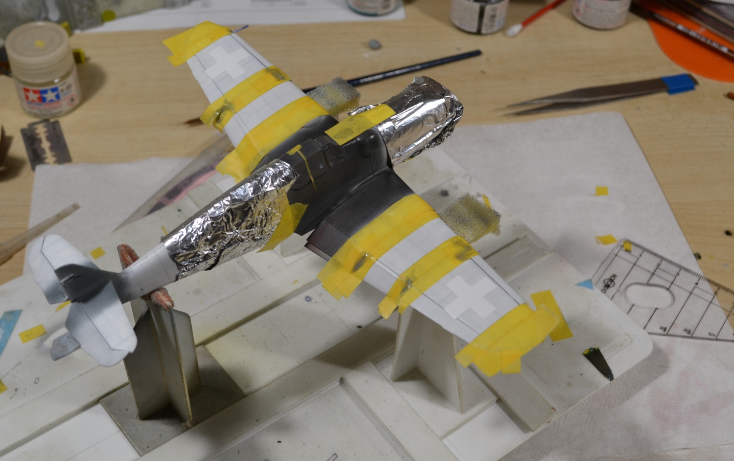 Решать задачу "в лоб" неохота было. Поэтому добавил себе сложностей. Вначале хотел сделать носителя бомбы FiSk-199, но затем поумерил свой пыл. Решил, что Bf.109 от Swiss Air будет вполне достаточно.