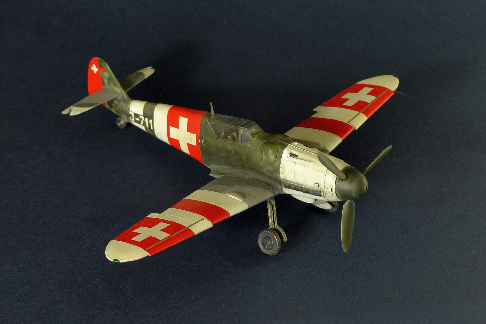 Модель получилась здорово, на общей волне немецких 109-х швейцарец выделяется! А вот с фотками беда- мало, можно добавить фото пуза, несколько крупных планов. И сделать их несколько светлее, многие интересности в тени потерялись