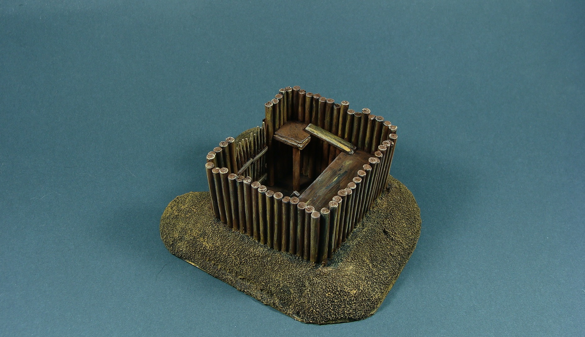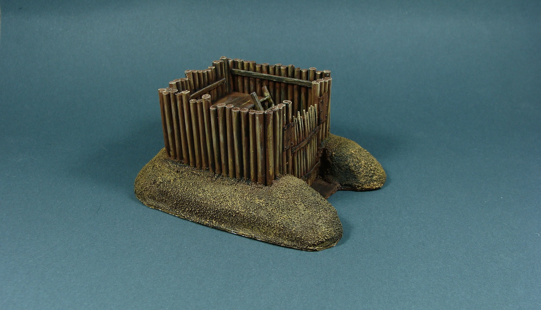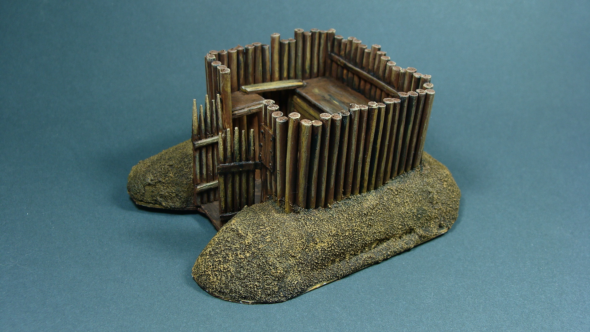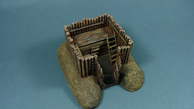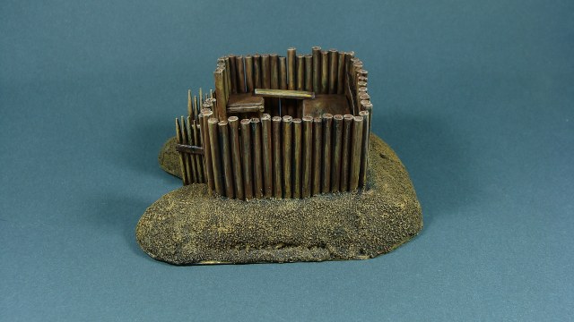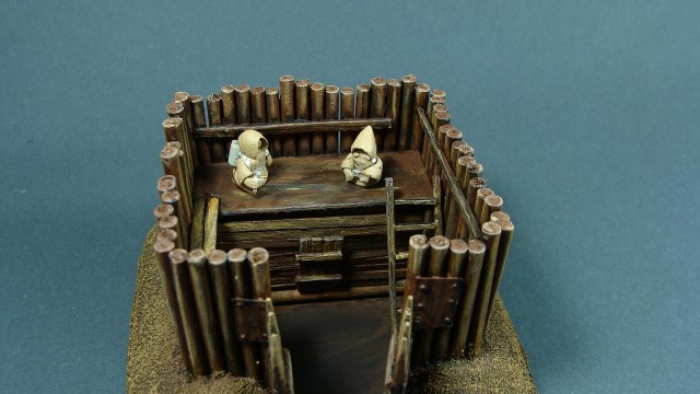 Доделывая долгострои закончил вот такой микрофорт. Сделан был год-два назад, сейчас я уже кое что иначе бы делал, но решил просто добить то, что есть. Масштаб 1/100, настолочный. Фигурки для примера (их рост 1 см).