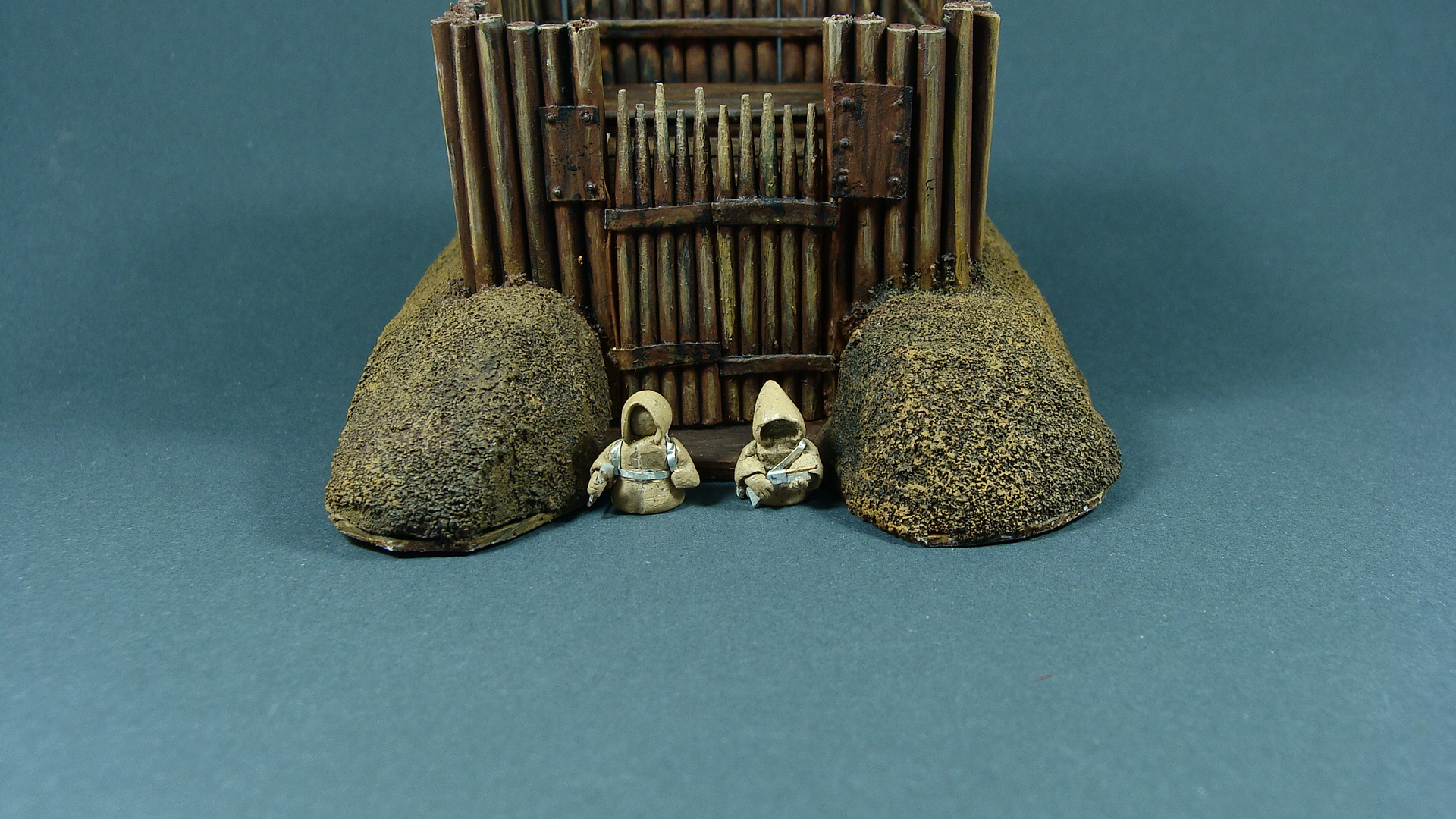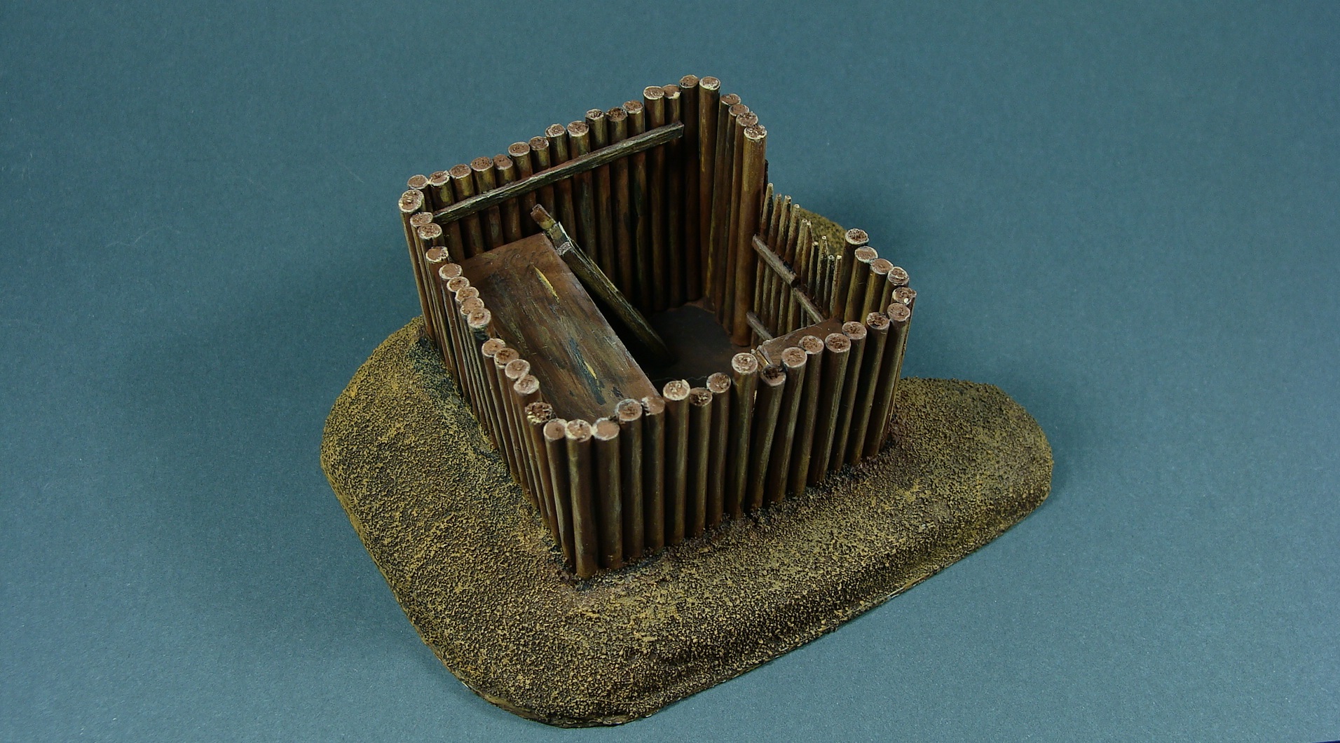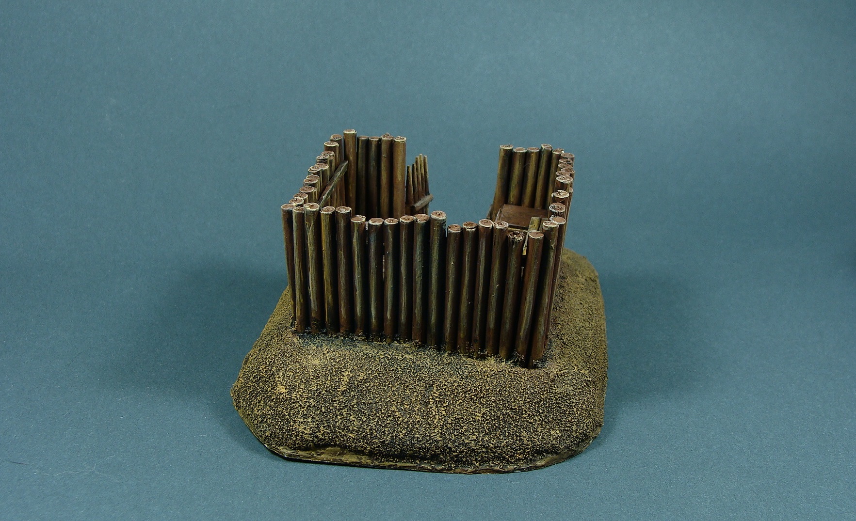 Доделывая долгострои закончил вот такой микрофорт. Сделан был год-два назад, сейчас я уже кое что иначе бы делал, но решил просто добить то, что есть. Масштаб 1/100, настолочный. Фигурки для примера (их рост 1 см).