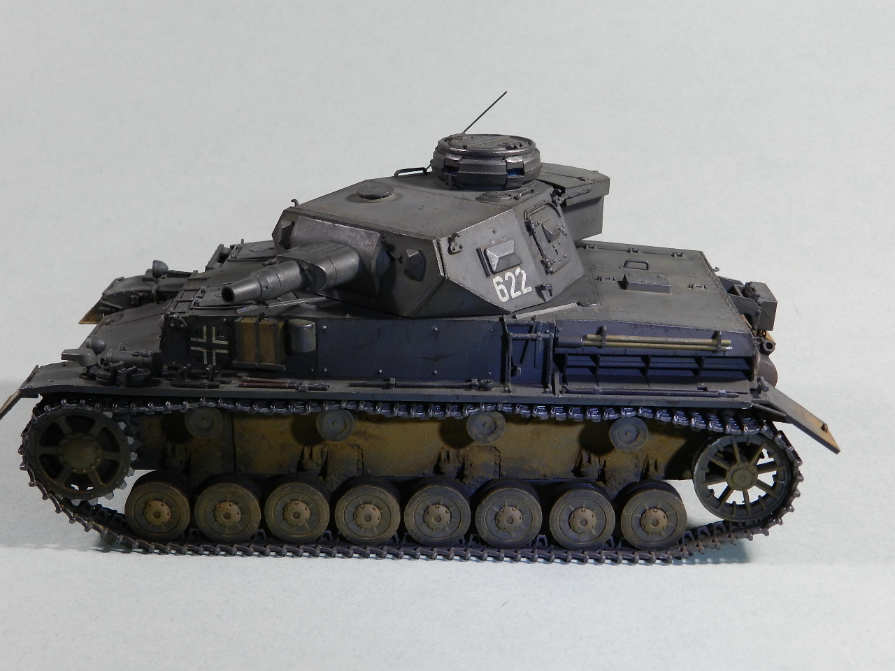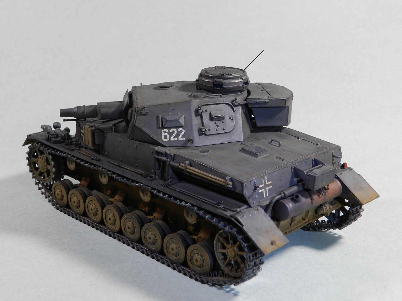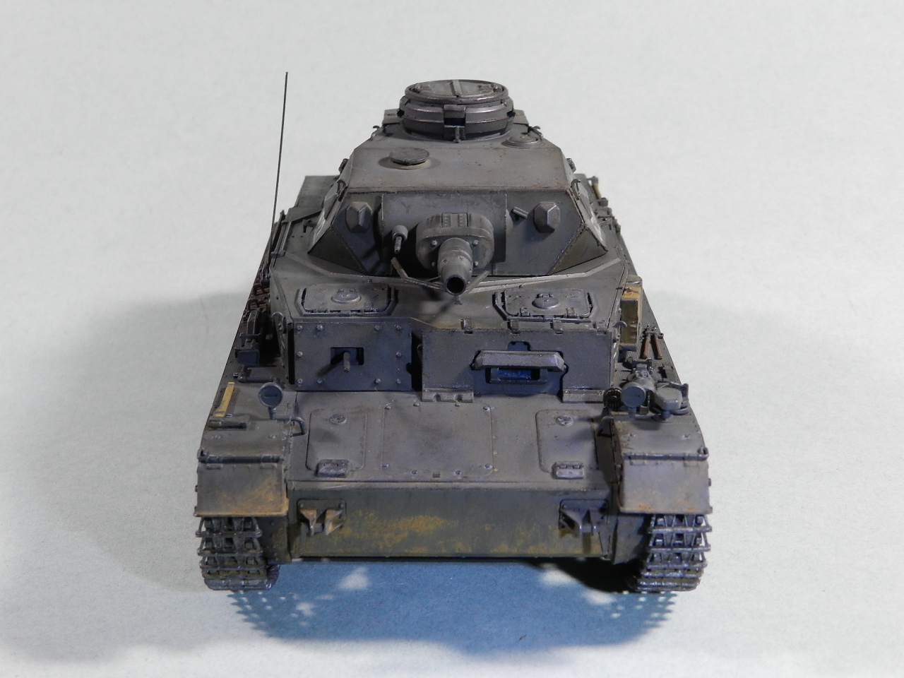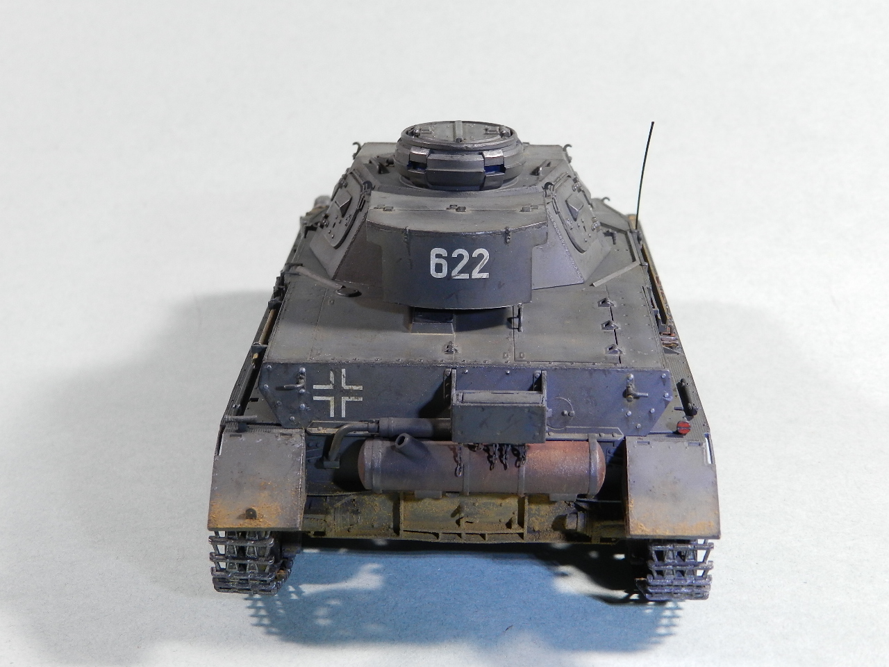 немецких танков имели зеленоватый оттенок. И глушители надо заржавить. Обгорают они сильно...