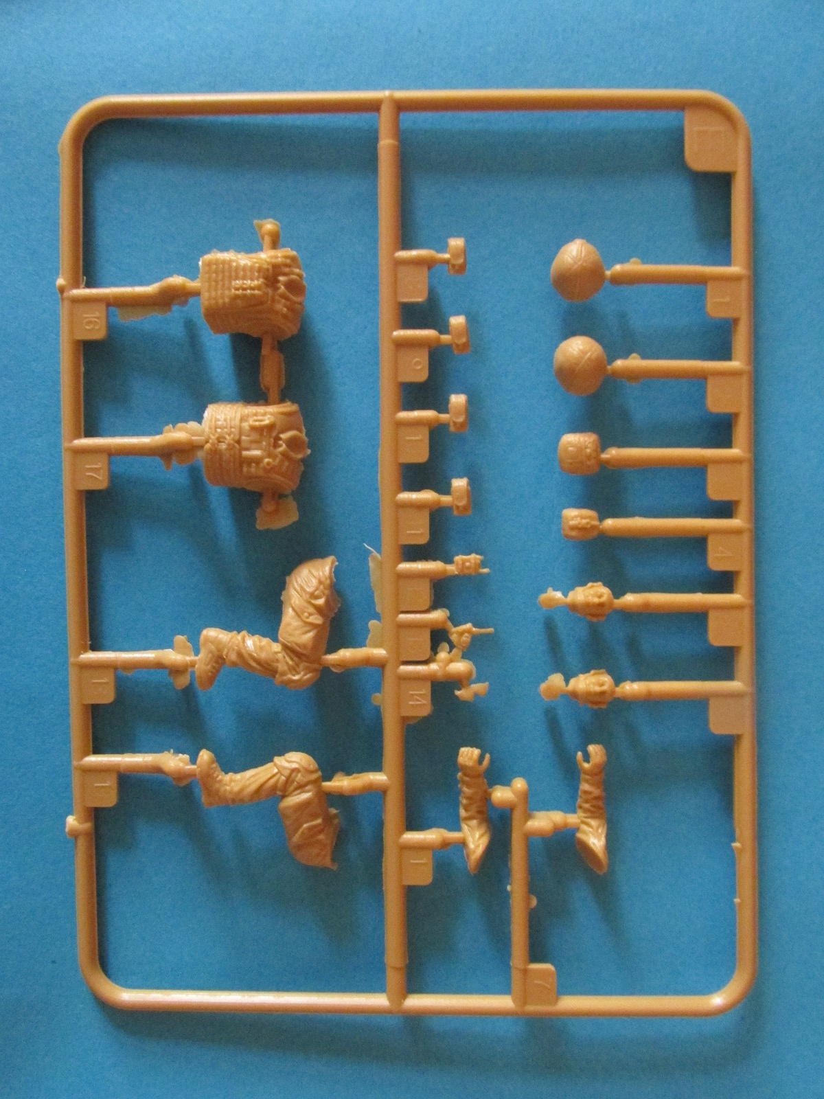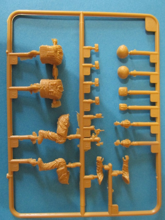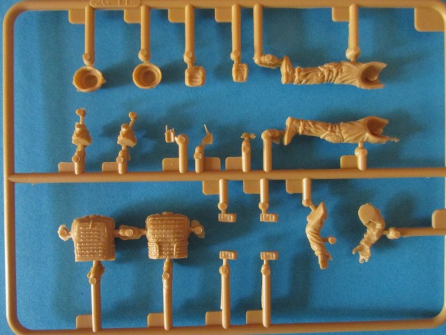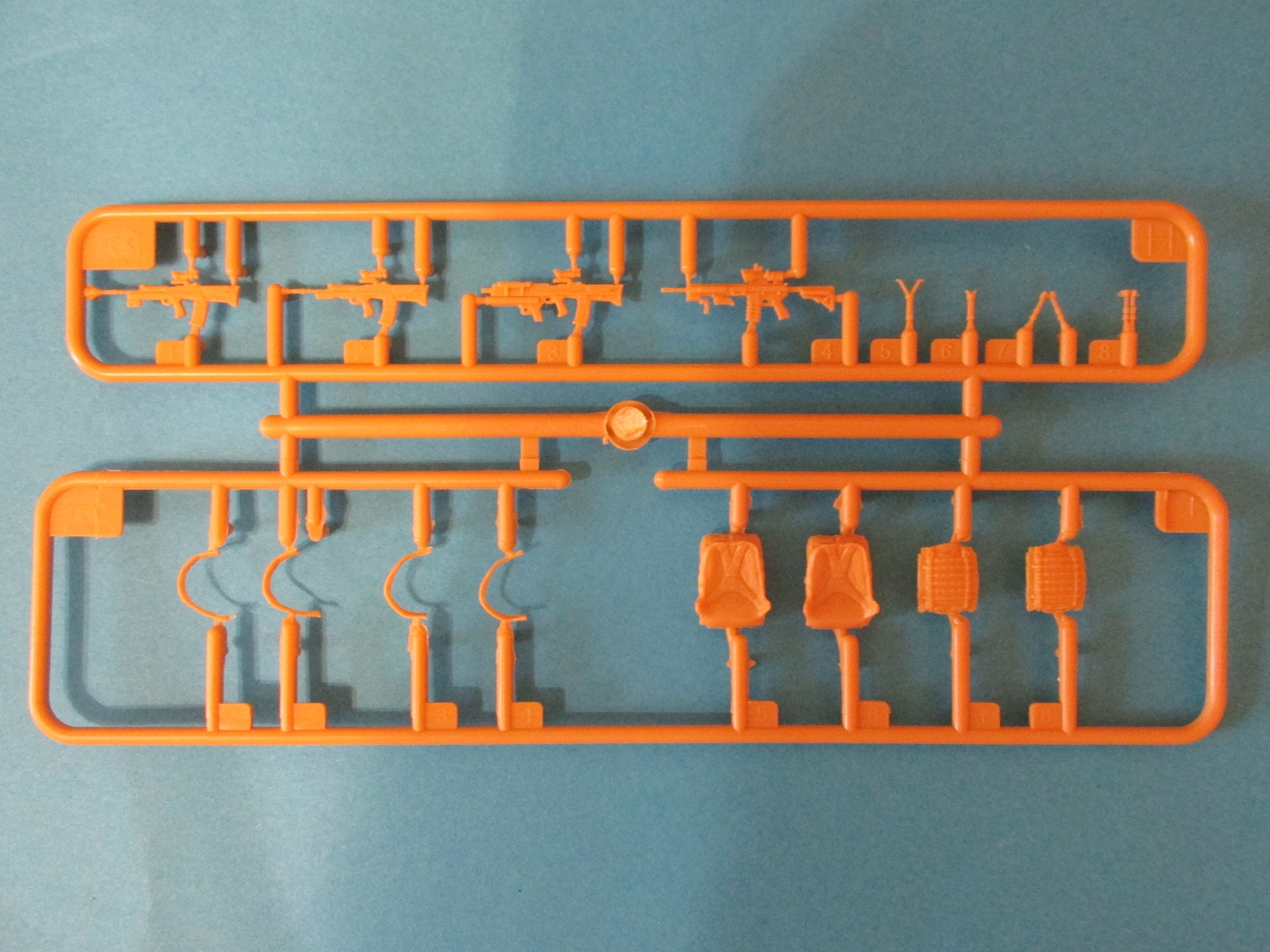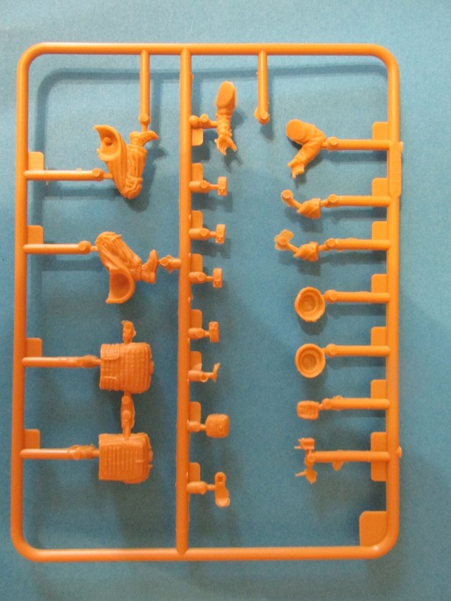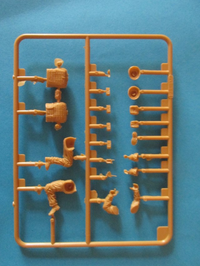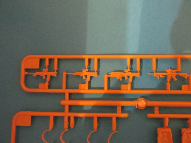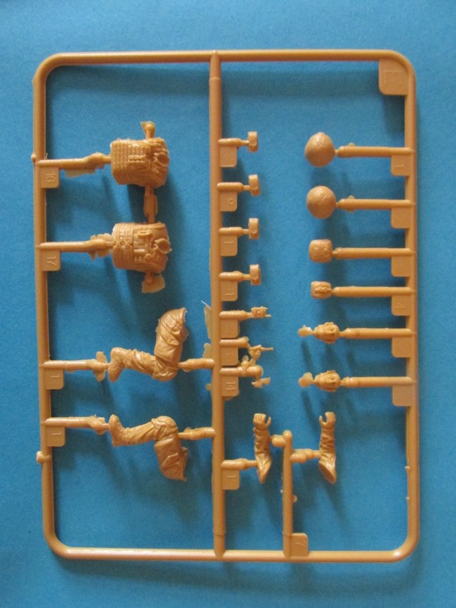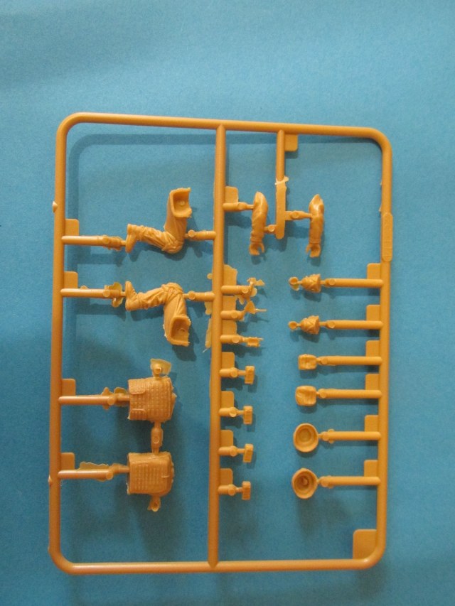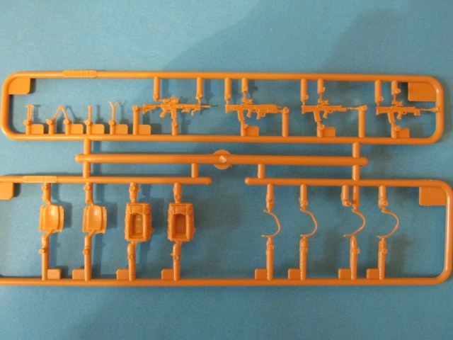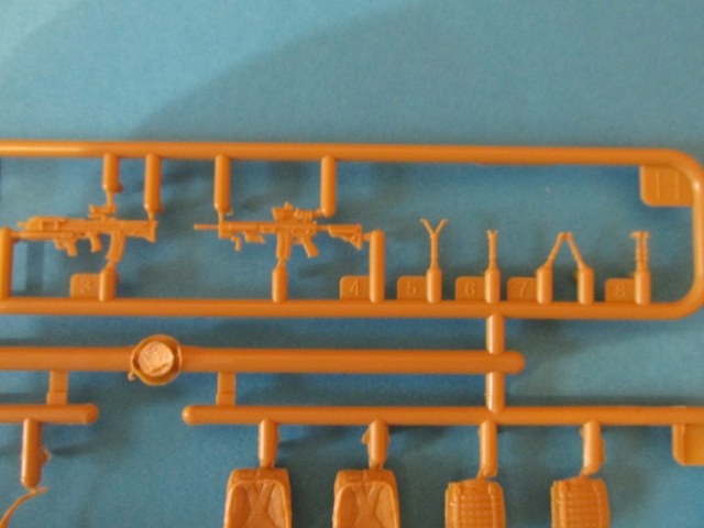 Фигура каждого солдата на отдельном литнике, тут приятный бонус, по две головы, по два шлема и два корпуса. Не знаю, зачем две головы, лица там одинаковы, а вот на торсах два варианта бронежилетов, похожие у нас тоже встречаются, что даёт определённые возможности. Достаточно заменить шлемы и оружие, и они вполне будут похожи на наших спецов.