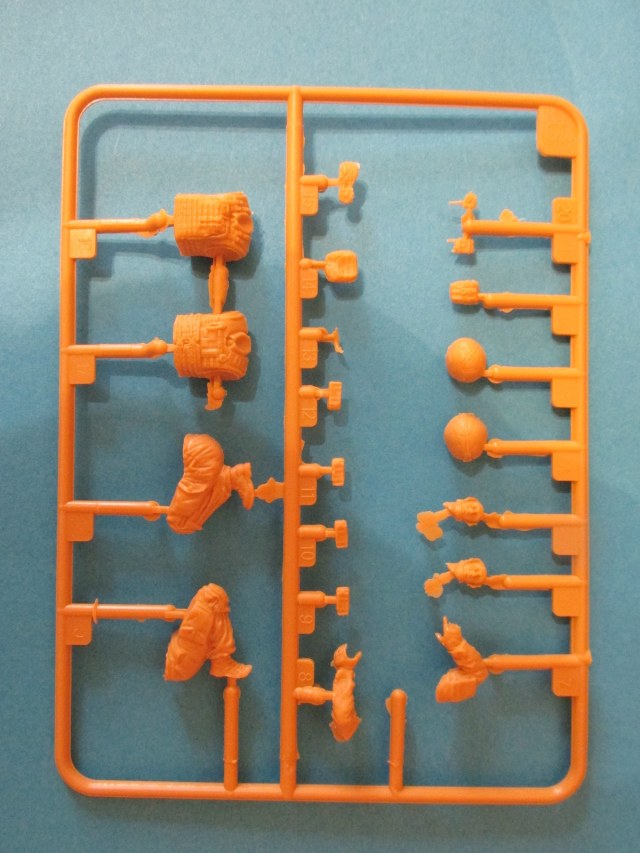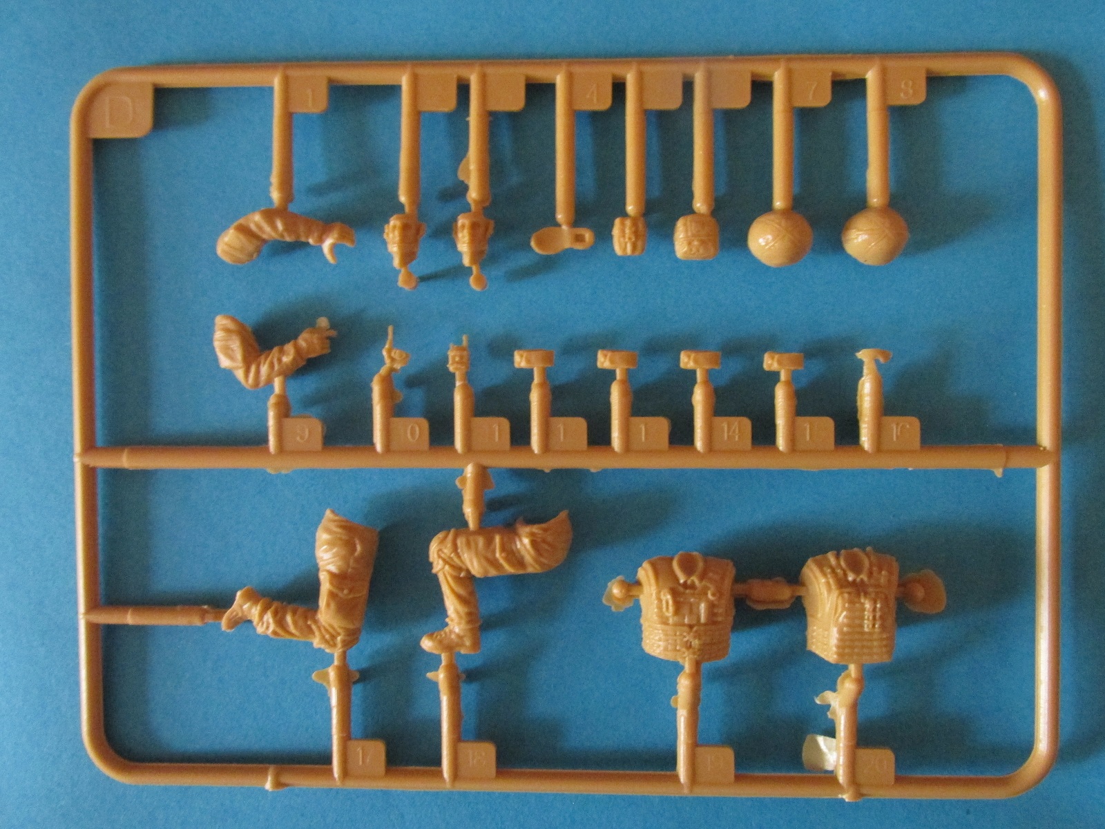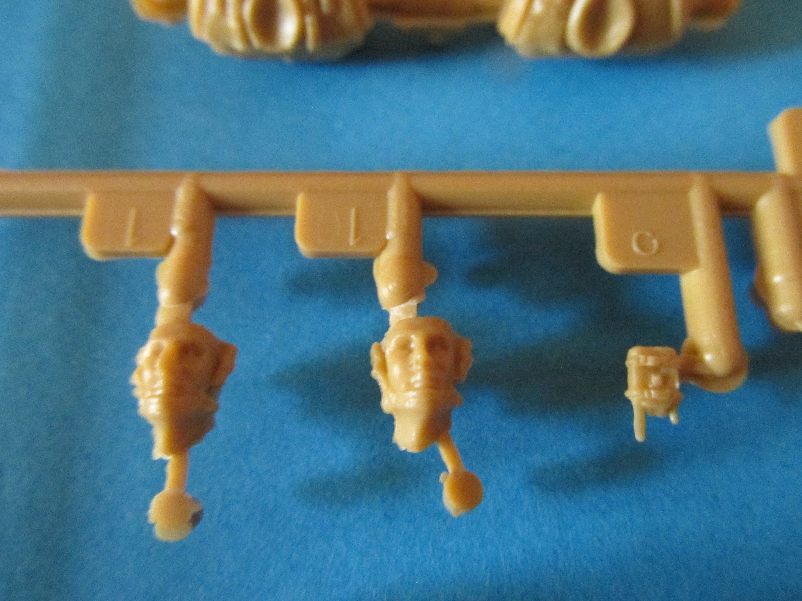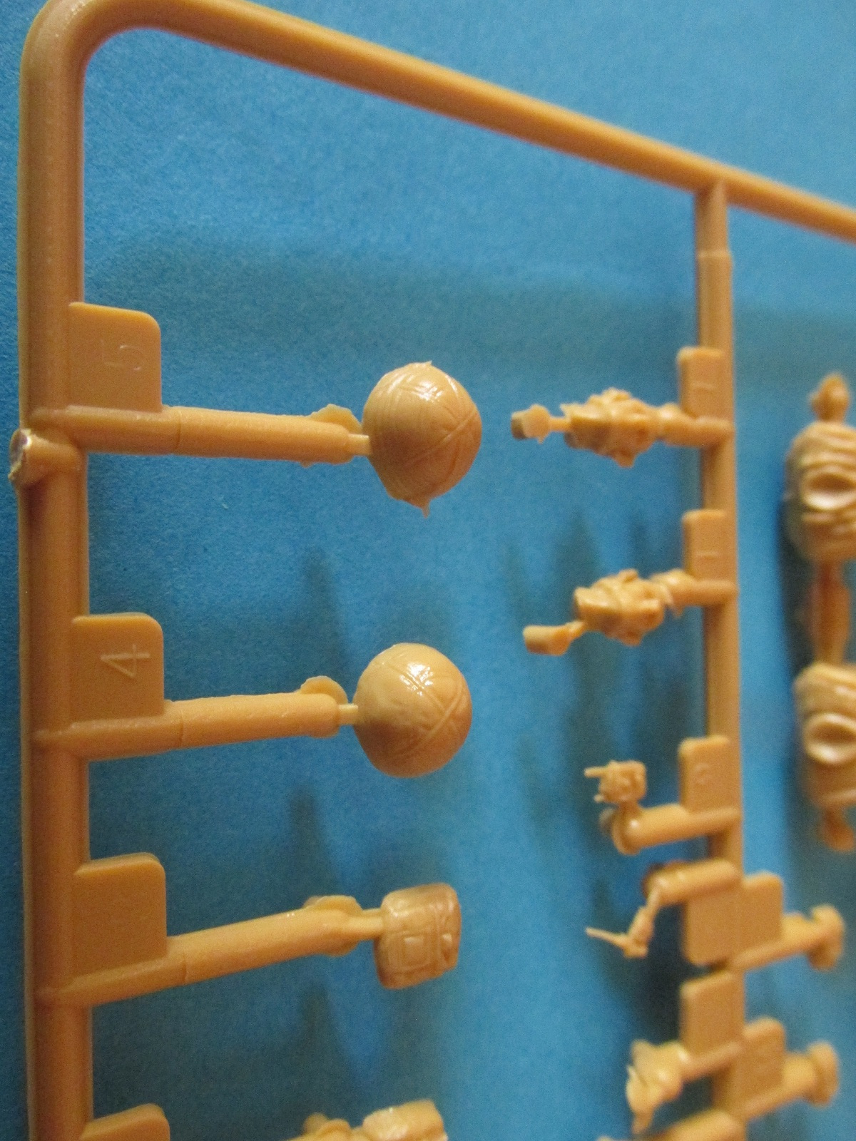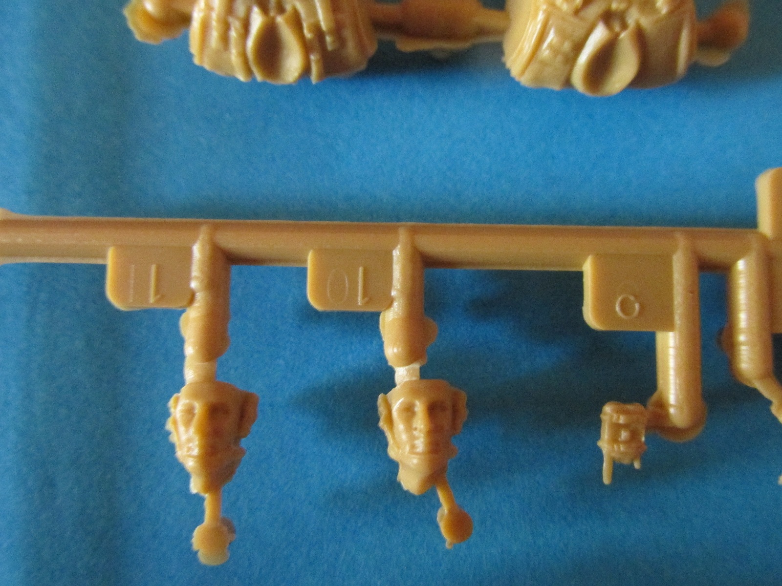 Фигура каждого солдата на отдельном литнике, тут приятный бонус, по две головы, по два шлема и два корпуса. Не знаю, зачем две головы, лица там одинаковы, а вот на торсах два варианта бронежилетов, похожие у нас тоже встречаются, что даёт определённые возможности. Достаточно заменить шлемы и оружие, и они вполне будут похожи на наших спецов.