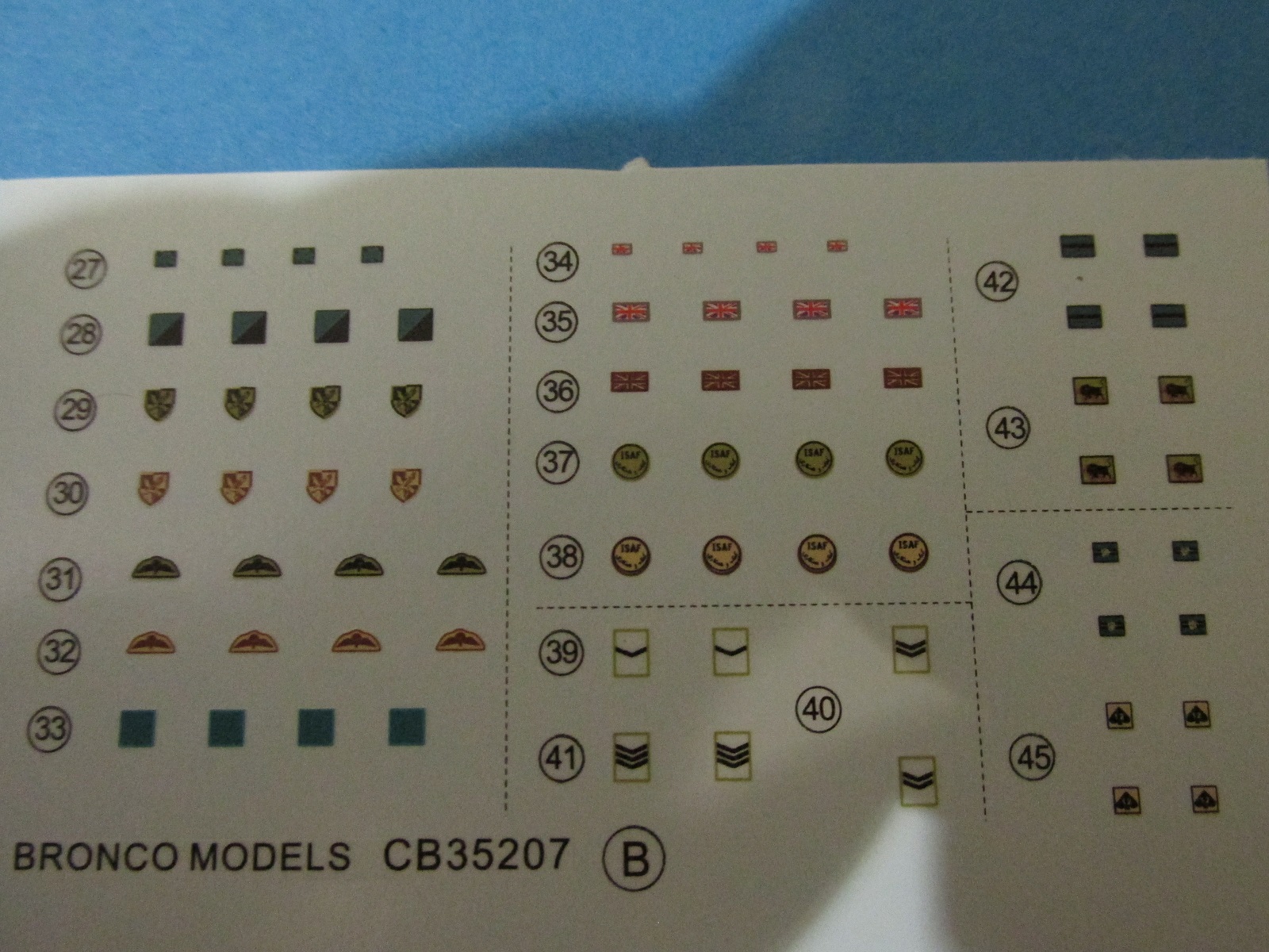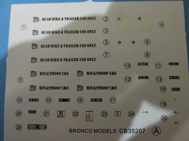 Два набора декалей. На одном шевроны британской армии, на втором технические надписи на квадрик и трейлер. Весьма хорошего качества.