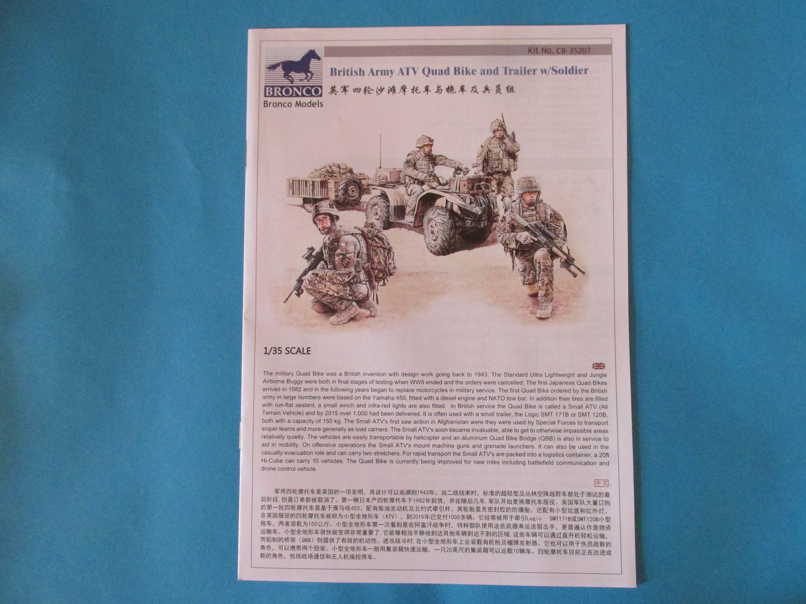 Производитель не указал модель квадра, скорее всего чтоб не обвинили в нарушении авторских прав. Скорее всего Grizzli 500. В инструкции по покраске фигур указано Афганистан 2010, а также 2011-2012 гг., но судя по форме и и броникам конец нулевых по настоящее время.