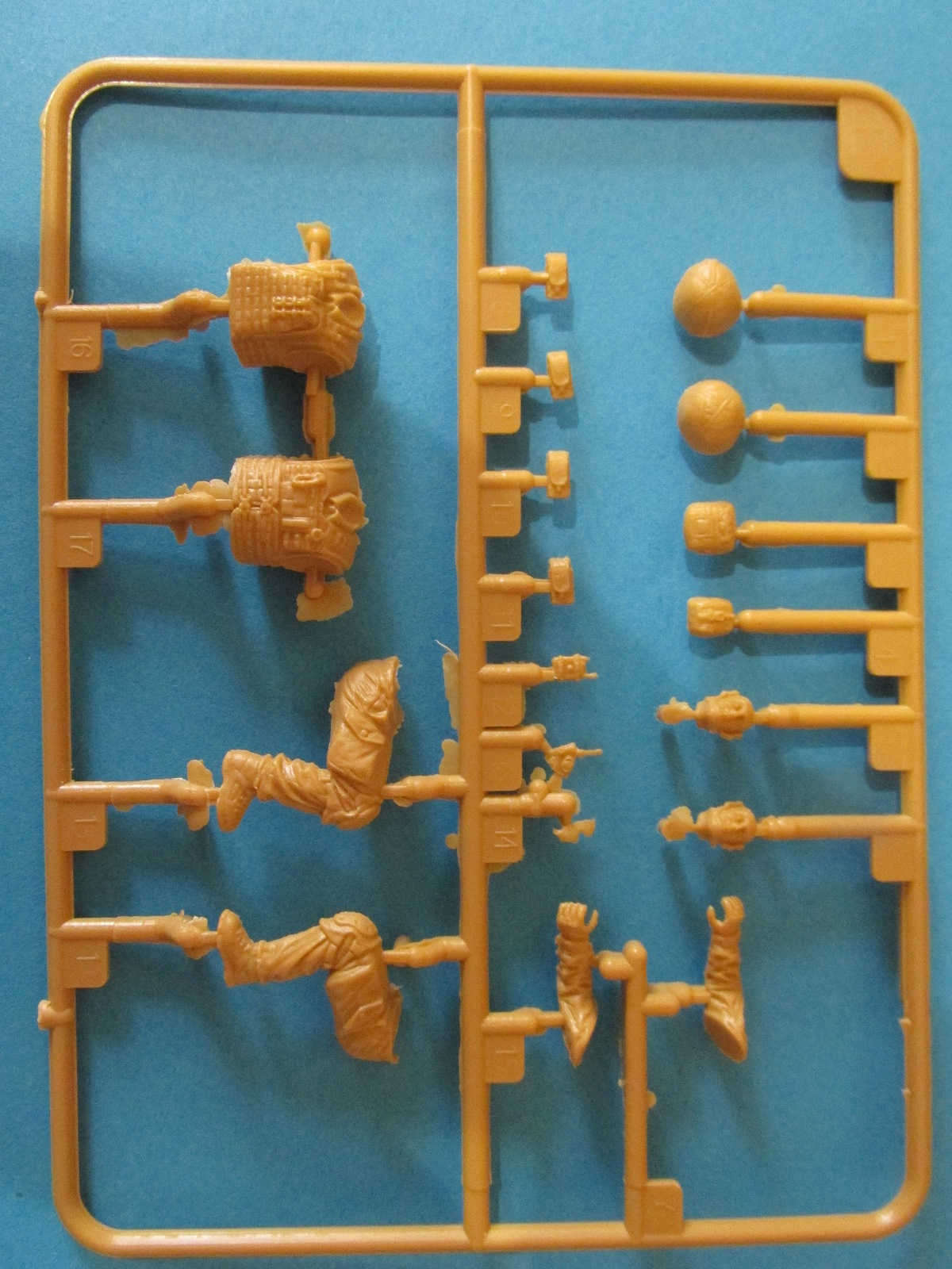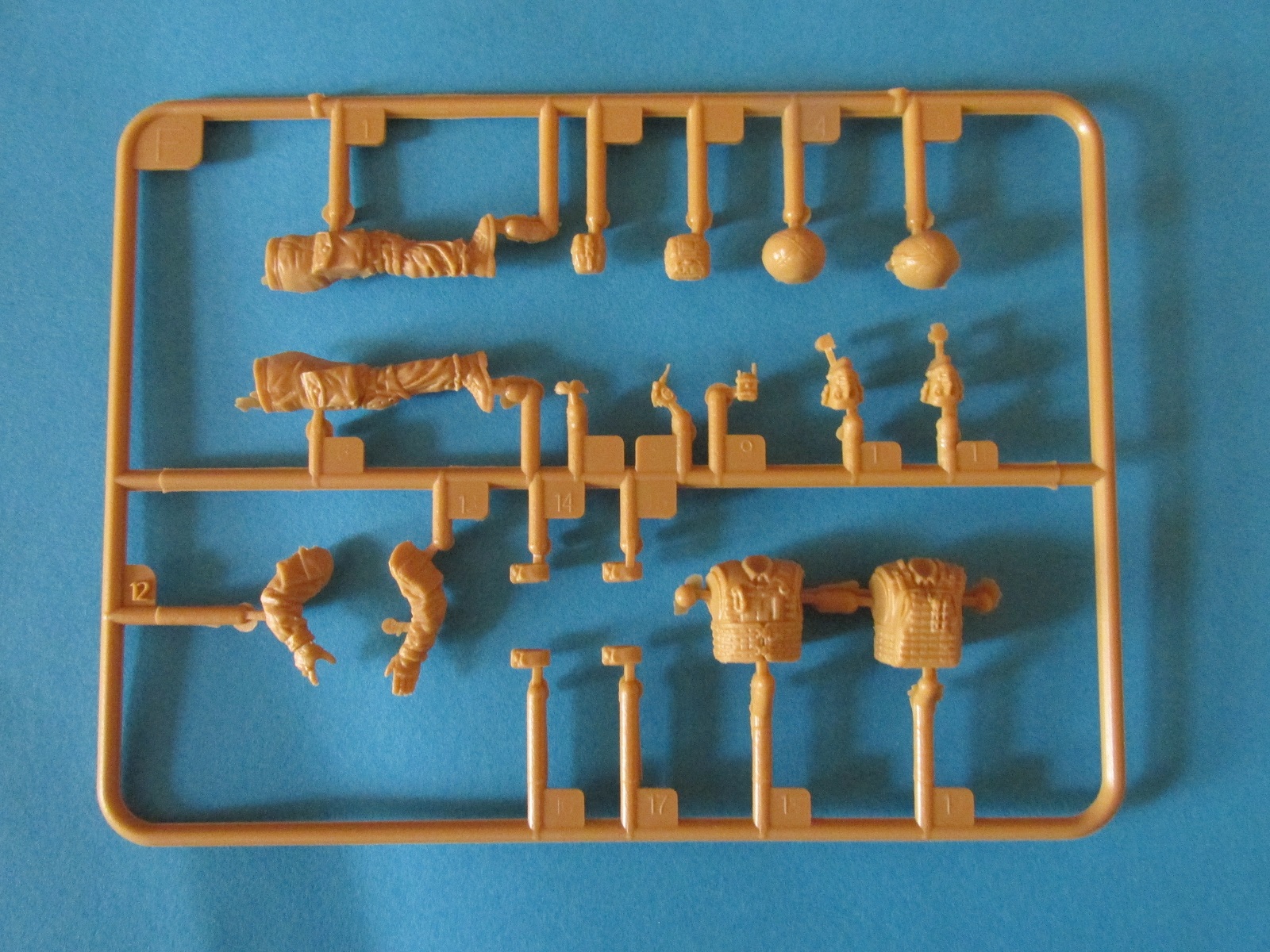 Каждый литник в отдельный пакете (кроме солдат, их литники в одном пакете) и всё упаковано в один общий пакет.