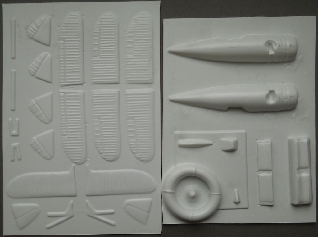 Вакуумформованная модель от фирмы CAN VAC Models (арт. 001) упакована в полиэтиленовый пакет. Масштаб 1/72. Большой лист инструкции, два листа пластика с отформованными деталями и ваку-фонарь. Проработка модели довольно упрощённая. Все детали выглядят «замыленными». Декали нет. Фонарь выполнен неплохо. Инструкция достаточно информативная.
