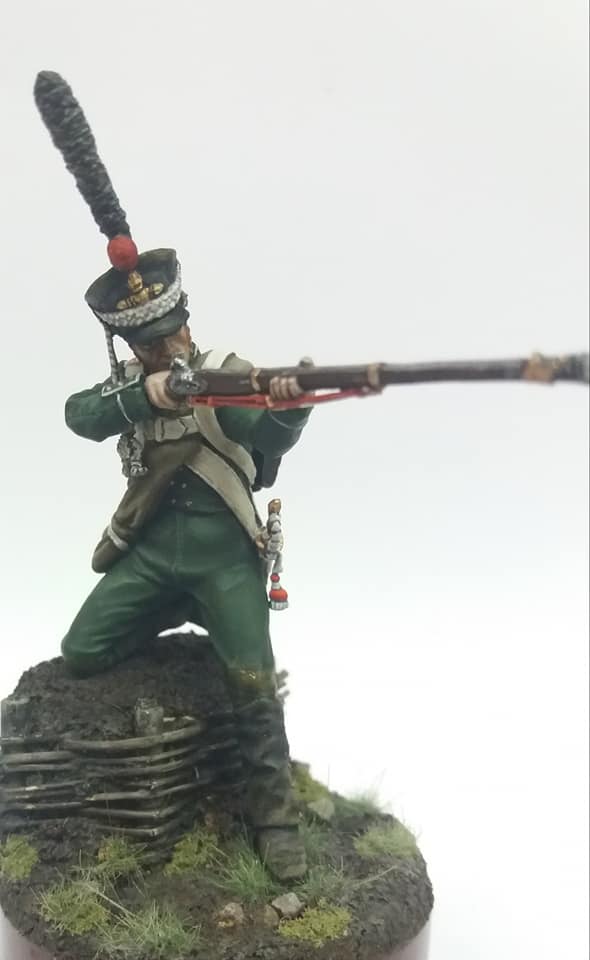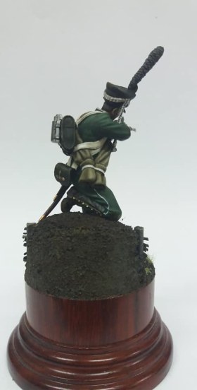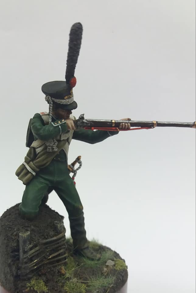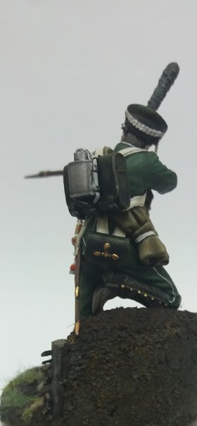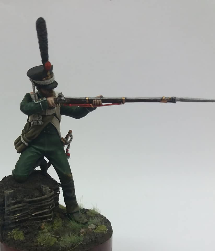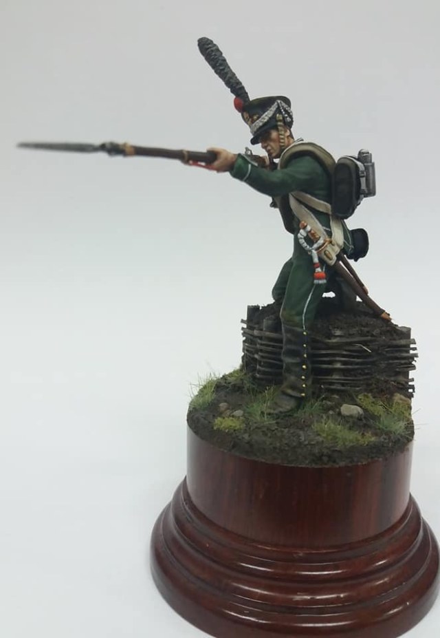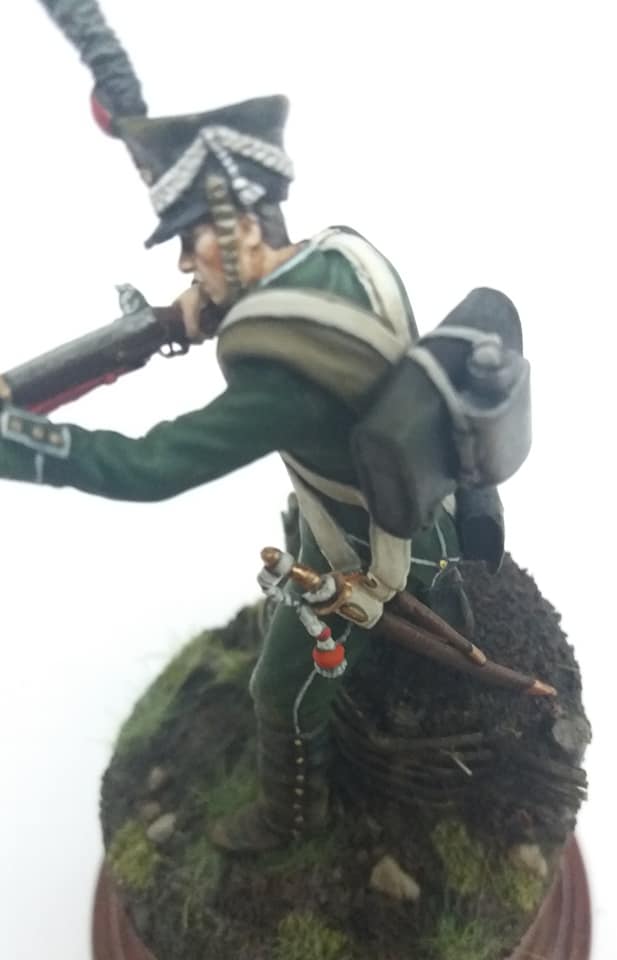 Рядовой гренадерской роты 2-го Морского полка. 1812 год, Россия. Олово, 54 мм. Роспись: акрил, темпера, масло. Основание самодельное из различных материалов.