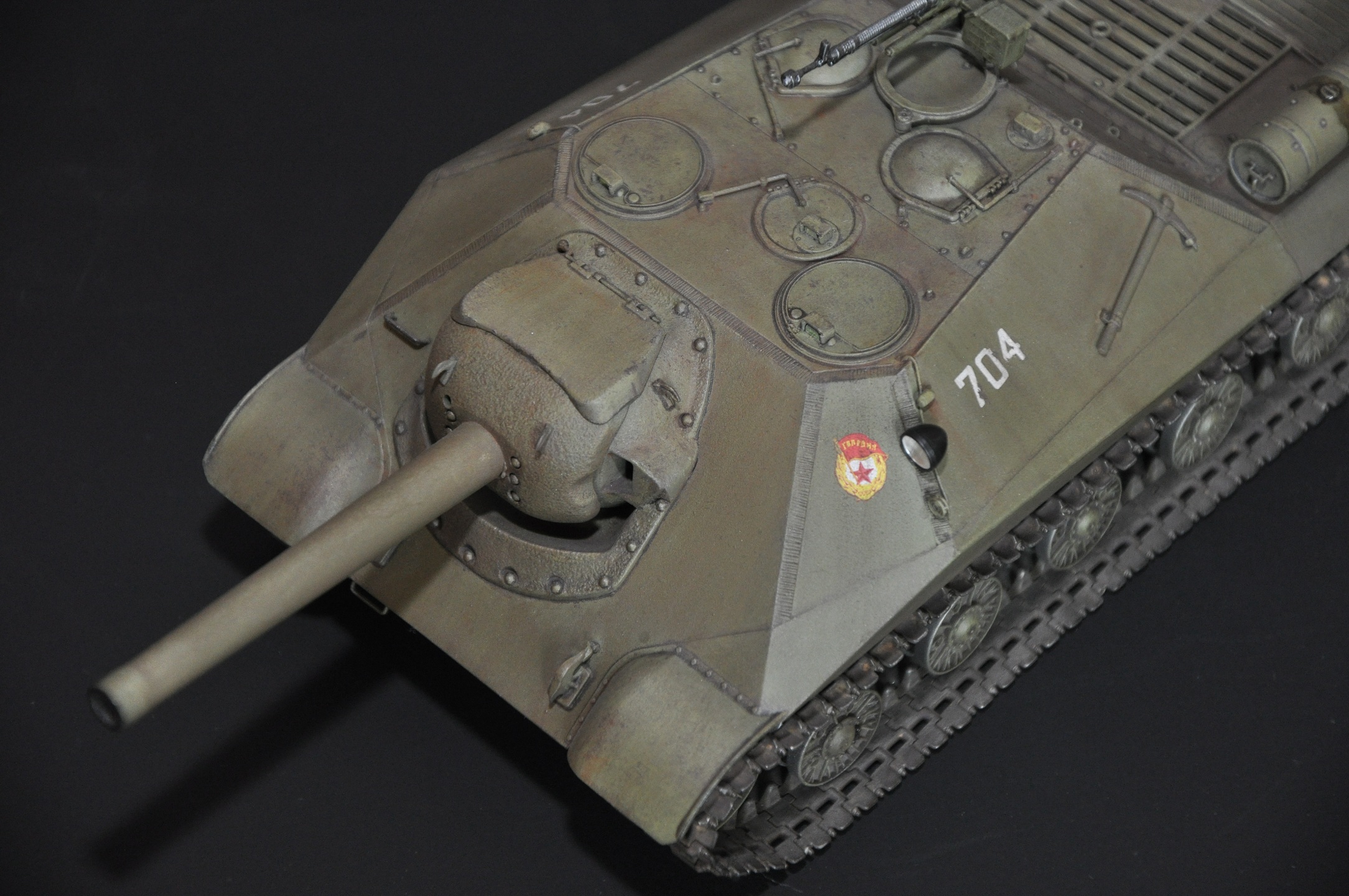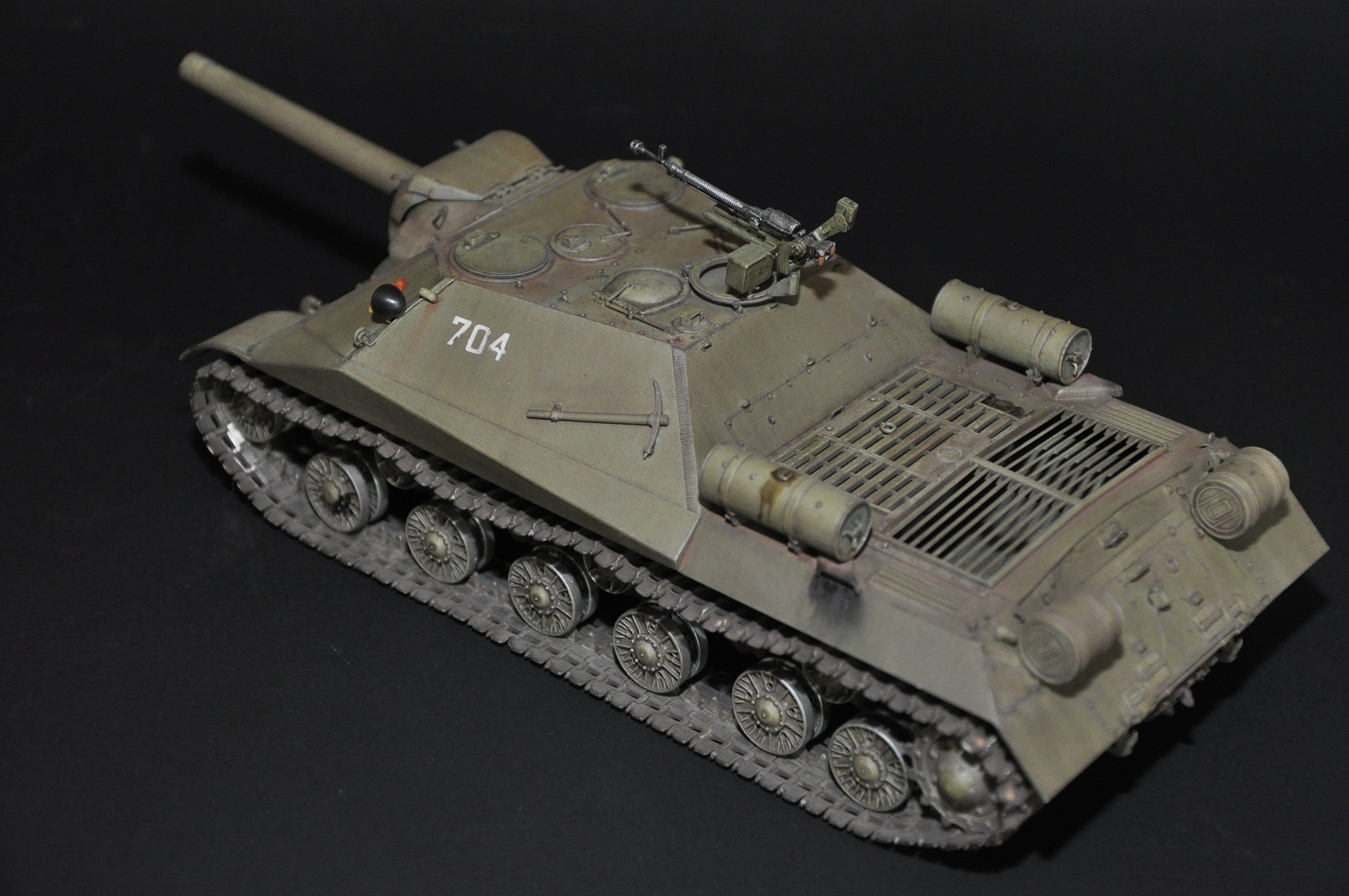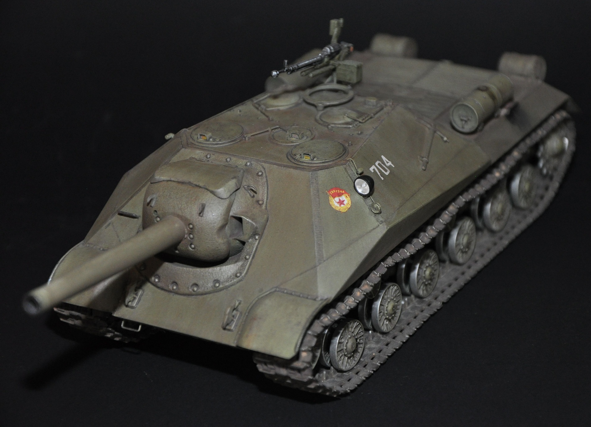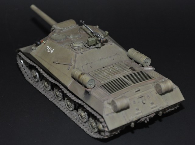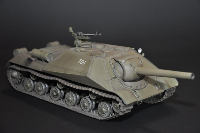 Немного о прототипе - ИСУ-152 образца 1945 года (Объект 704, Кировец-2) - опытная советская тяжёлая противотанковая самоходно-артиллерийская установка (САУ) периода Великой Отечественной войны. В названии машины аббревиатура ИСУ означает «самоходная установка на базе танка ИС» или «ИС-установка», а индекс 152 — калибр основного вооружения машины. Уточнение «образца 1945 года» потребовалось для отличия опытной САУ от серийных ИСУ-152.
