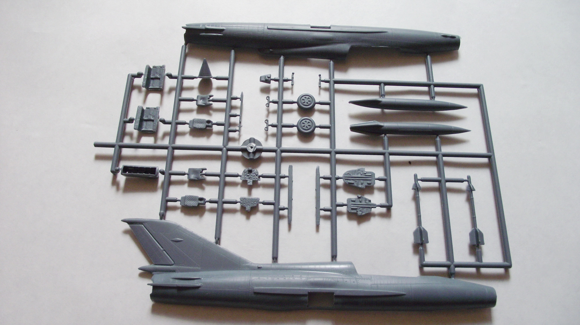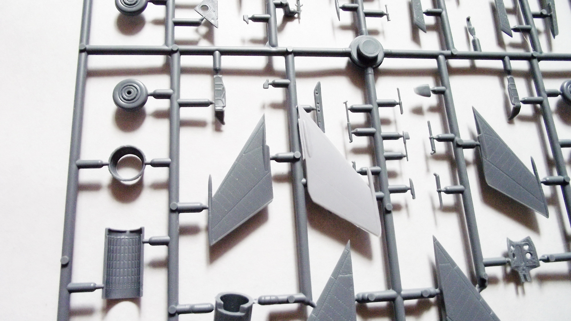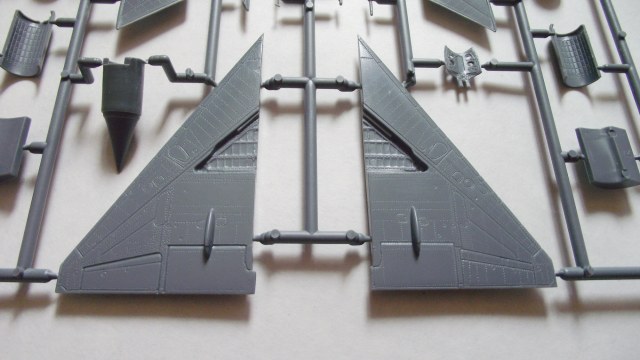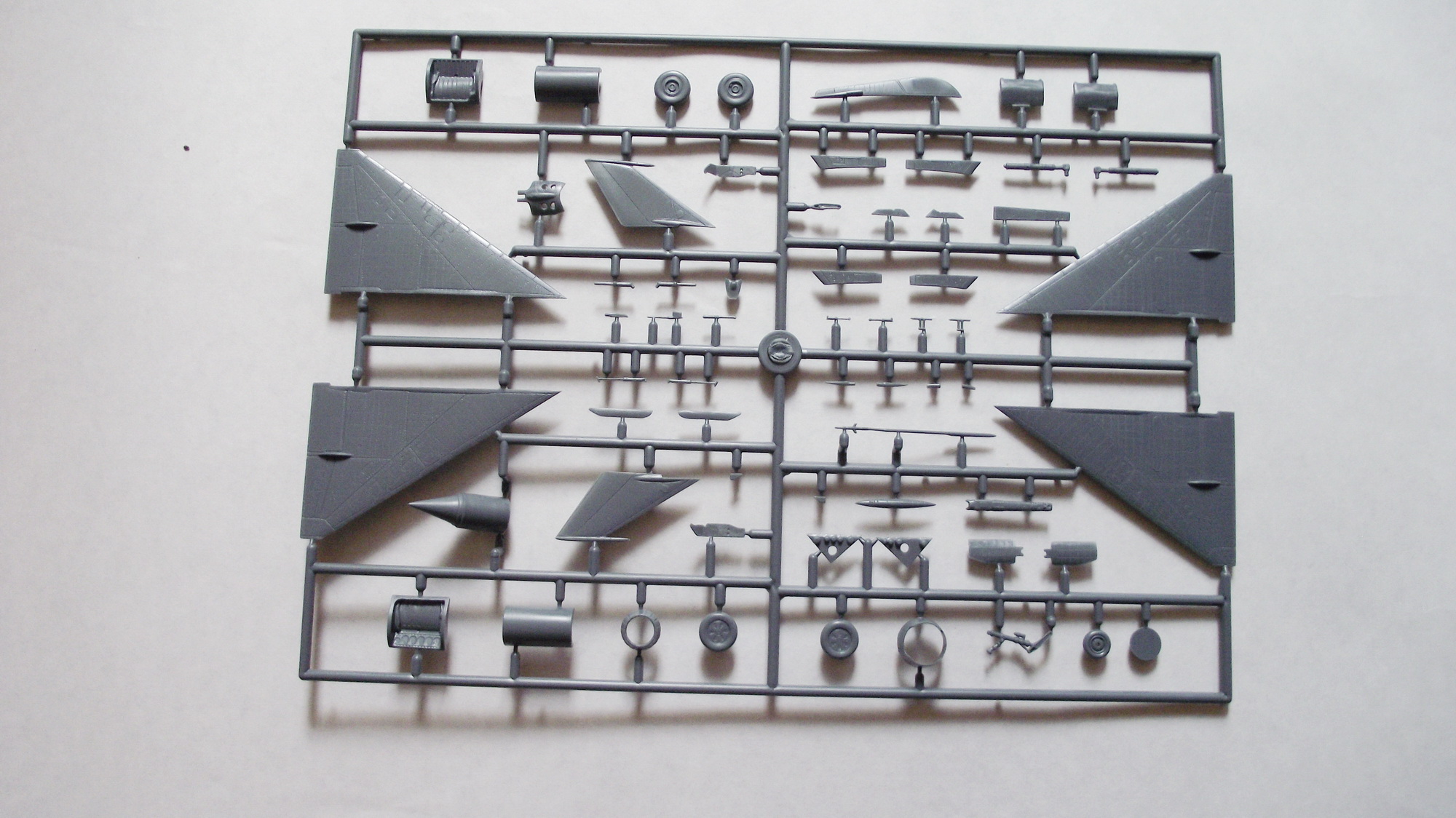 Модель даётся с клёпкой, что хорошо для варианта в серебристом окрасе, где её хорошо видно. В кабине неплохо сделаны боковые панели, да и «ванночки», приборные доски, и задние стенки выглядят довольно неплохо. Кресла можно доработать, но лучше применить смоляные от «Неомеги» например. Даются 2 варианта крыла с большим поперечным лючком и без него. Ниши основных стоек неплохо проработаны. Аэродинамические гребни предлагается изготовить самому (в инструкции даются размеры и толщина). Ещё один недостаток крыла это отсутствие соединения с фюзеляжем по принципу «папа – мама», придётся вставлять штифты.