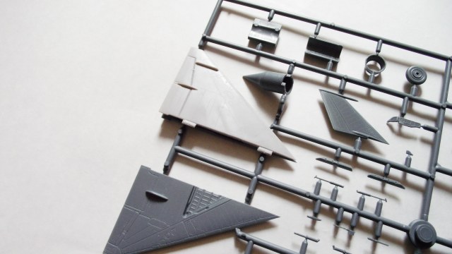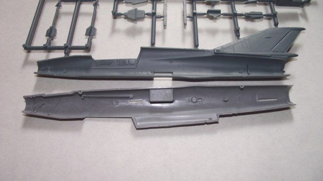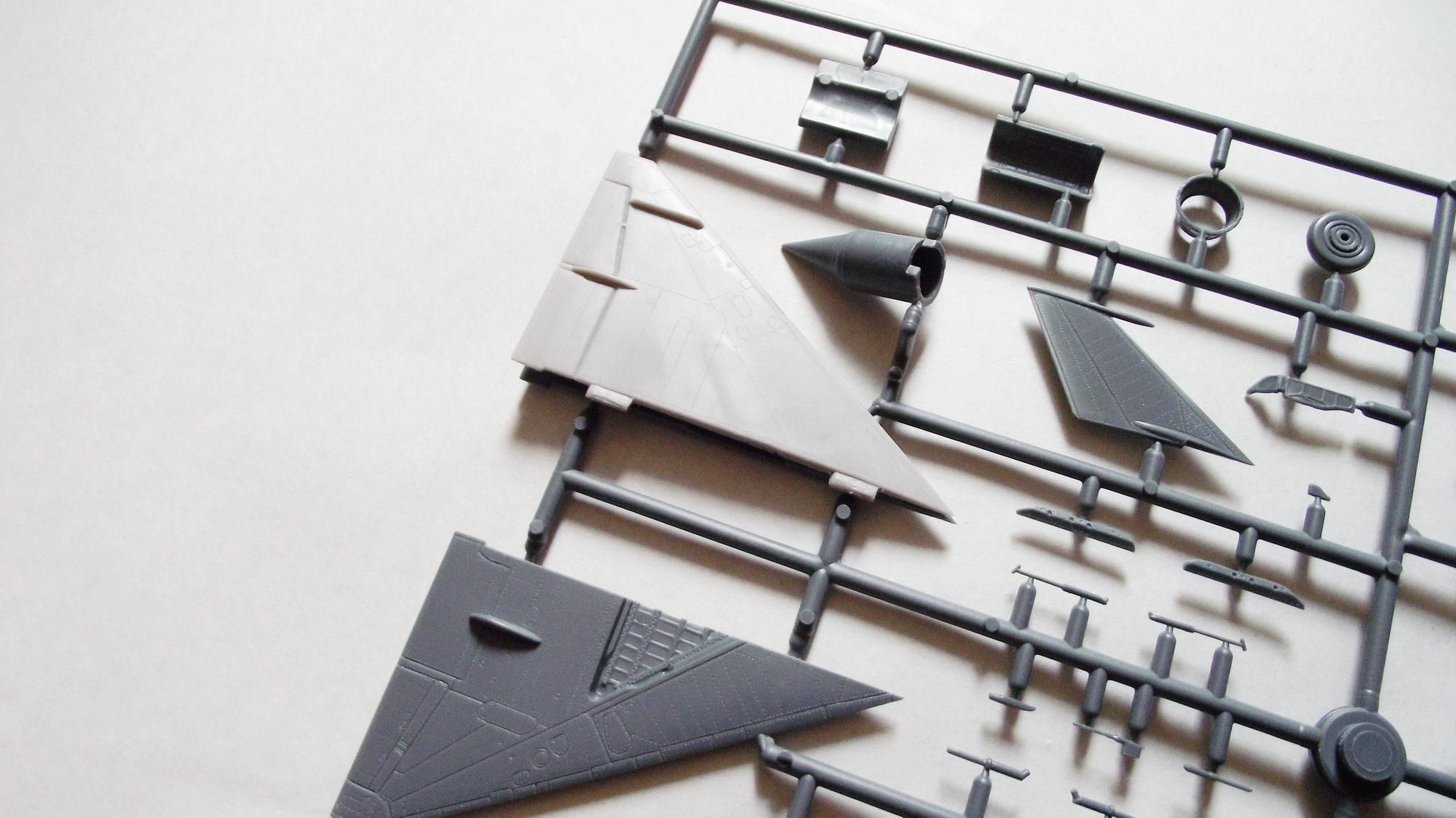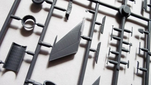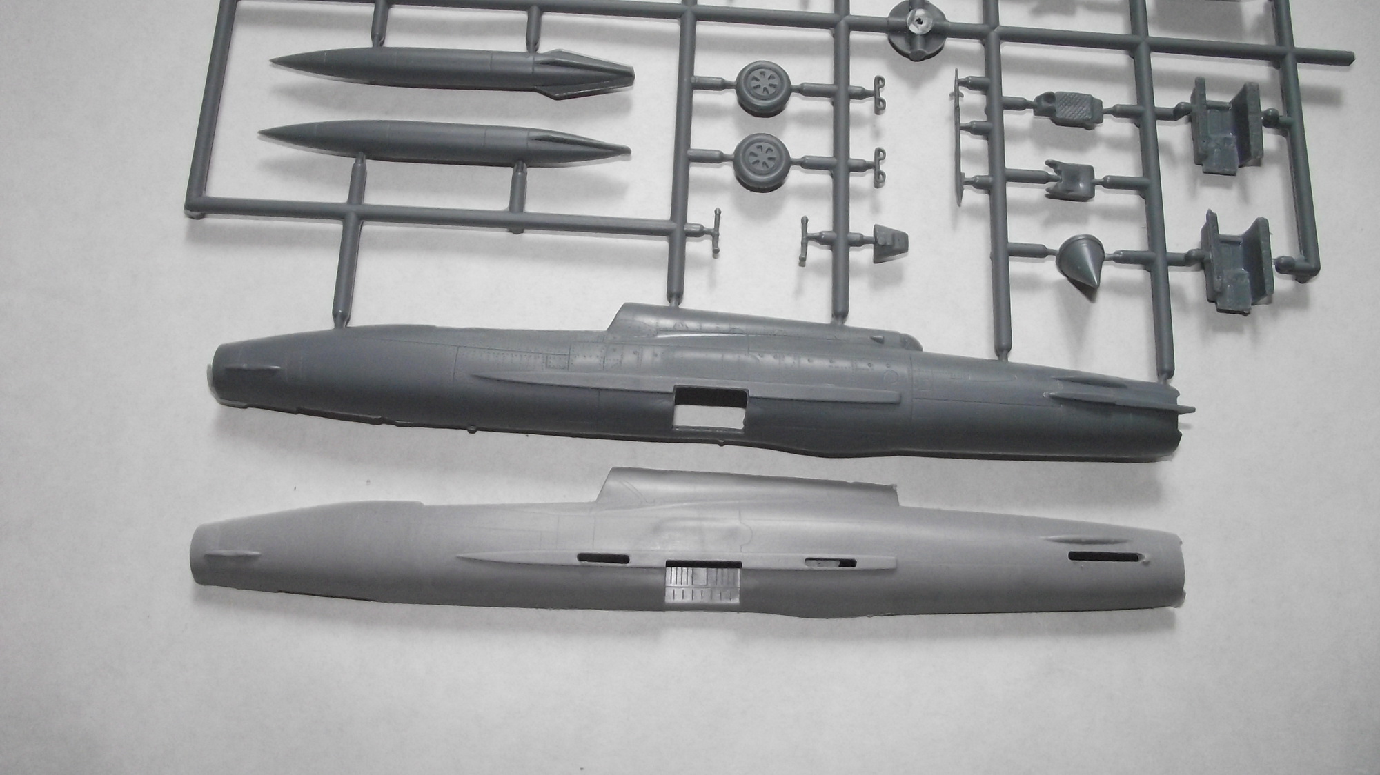 Модель даётся с клёпкой, что хорошо для варианта в серебристом окрасе, где её хорошо видно. В кабине неплохо сделаны боковые панели, да и «ванночки», приборные доски, и задние стенки выглядят довольно неплохо. Кресла можно доработать, но лучше применить смоляные от «Неомеги» например. Даются 2 варианта крыла с большим поперечным лючком и без него. Ниши основных стоек неплохо проработаны. Аэродинамические гребни предлагается изготовить самому (в инструкции даются размеры и толщина). Ещё один недостаток крыла это отсутствие соединения с фюзеляжем по принципу «папа – мама», придётся вставлять штифты.